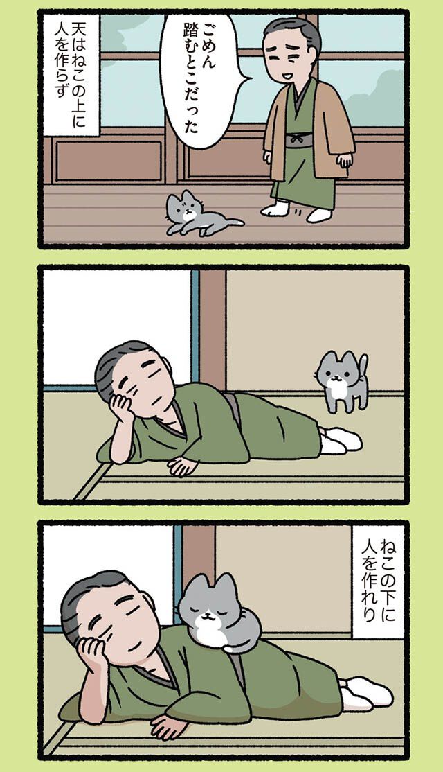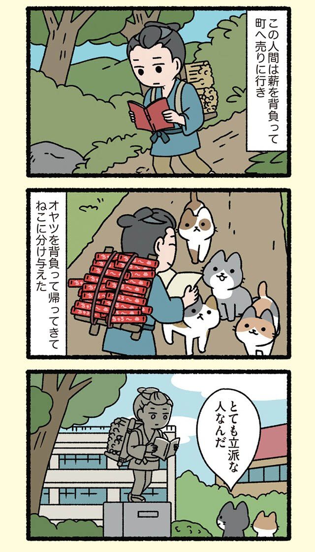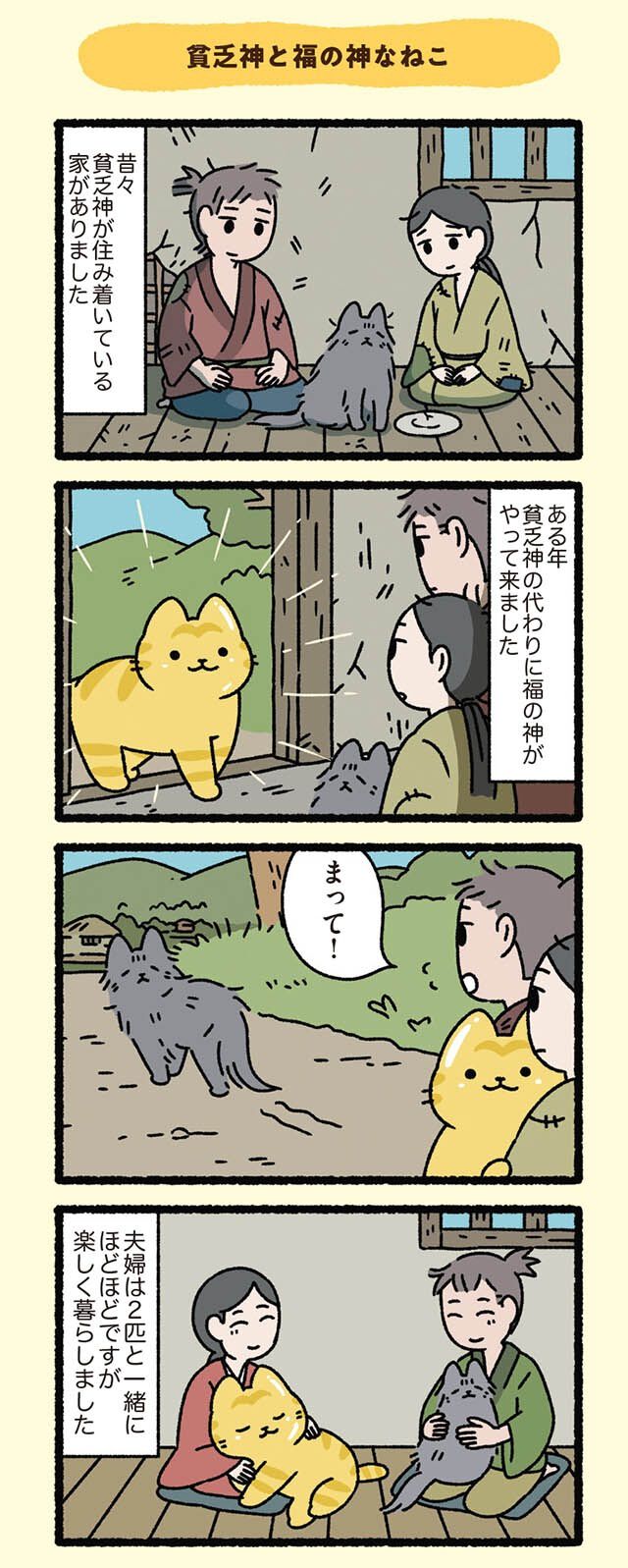 誰もが知る昔話や逸話を、ふてぶてしくも愛らしい猫たちでゆる〜く再構築! クスッと笑えて癒やされる、猫好き必見の4コマパロディ【書評】 91枚目/全222枚