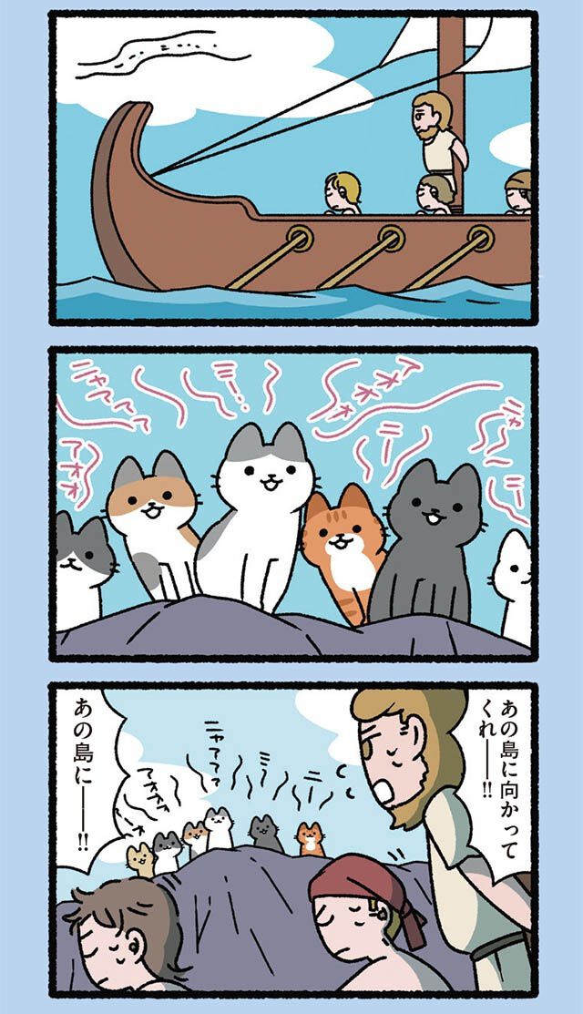 誰もが知る昔話や逸話を、ふてぶてしくも愛らしい猫たちでゆる〜く再構築! クスッと笑えて癒やされる、猫好き必見の4コマパロディ【書評】 110枚目/全222枚