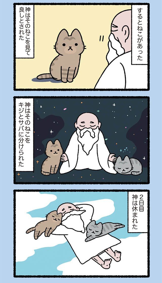 誰もが知る昔話や逸話を、ふてぶてしくも愛らしい猫たちでゆる〜く再構築! クスッと笑えて癒やされる、猫好き必見の4コマパロディ【書評】 120枚目/全222枚
