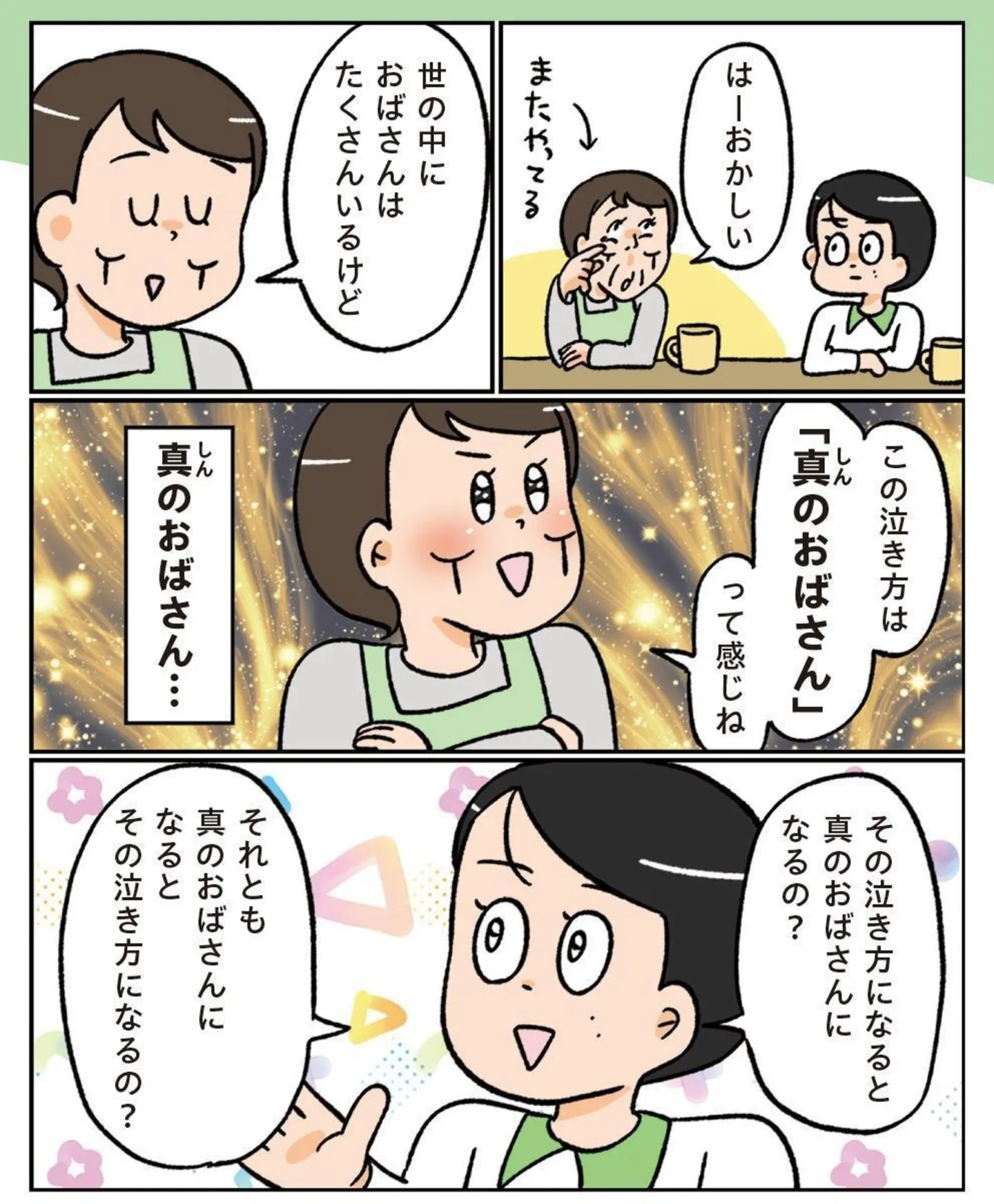 本作の後半に描かれた潤奈さんの初恋エピソードには、潤奈さんが、過去に傷ついた自分を自分で抱きしめる場面があります。その姿に透けて見えるのは、これから何があっても大丈夫だろうと思える一本の強い軸でした。これを自己肯定感というのでしょうか。漫画に描かれている通り、お姉さんをはじめとする温かい家族に見守られ、教訓を得ながら成長してきた潤奈さん。家族っていつまでも一緒にいられるものではないと思いますが、盤石な家族の愛が潤奈さんを包み込んでいることが伝わりました。