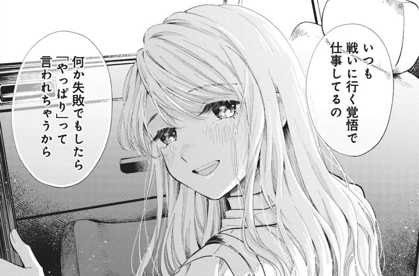 ――華は低身長ゆえに、仕事をしていく上で不利になってしまうことがしばしば描かれています。そんな華の「戦いに行く覚悟で仕事している」というセリフと、そのあと岩見が「無理やり戦場に立たされている」と返すシーンが印象的でした。セットで思いついたセリフですか?