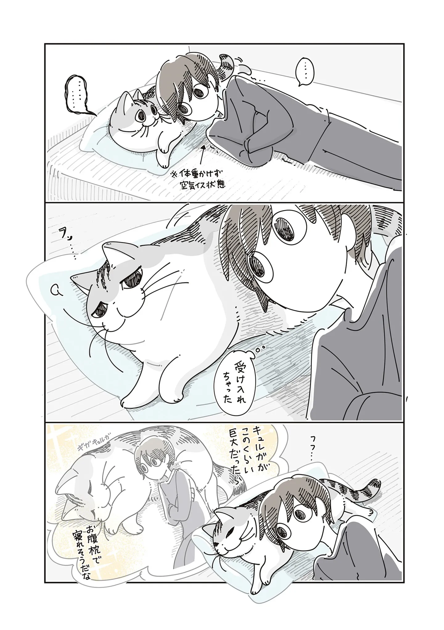 猫を枕にしたら気持ちよさそう…。頭を近づける飼い主、やっぱり「寝れないかも」/夜は猫といっしょ8 マンガ 公開日:2025/12/25 この連載を最初から読む→ <第9回に続く> 本作品をAmazon(電子)で読む > 本作品をRenta!で読む > 本作品をebookjapanで読む > 本作品をBOOK☆WALKERで読む > « 1 2 あわせて読みたい 【漫画】『夜は猫といっしょ8』を第1回から読む 【漫画】『ブラック企業の社員が猫になって人生が変わった話』を読む 【漫画】『勤労ロードショー 今日も財布がさみしくて』を読む 【漫画】『猫のようなナニカ』を読む 【漫画】『くろもとぽんず~うちの猫がかわいすぎる!~』を読む 最新マンガと話題の書籍を無料で試し読み! 前の回 一覧 人気の連載 次の回 夜は猫といっしょ 8 (コミックエッセイ) 試し読み *電子書籍ストアBOOK☆WALKERへ移動します 夜は猫といっしょ 1 (コミックエッセイ) 試し読み *電子書籍ストアBOOK☆WALKERへ移動します