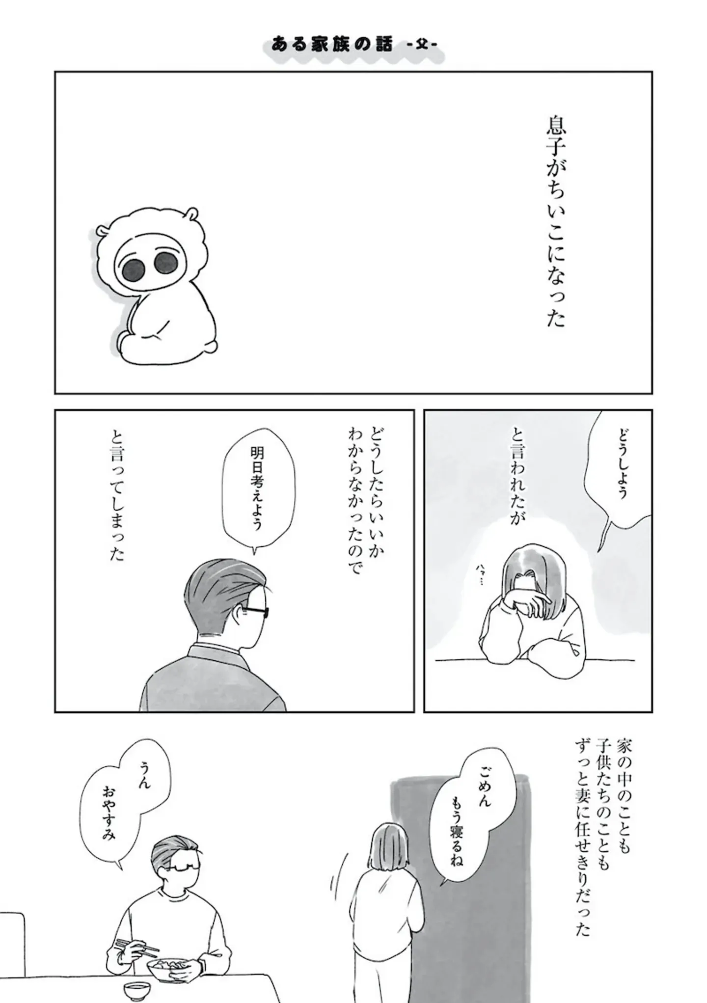 謎の生き物を息子とは思えない。育児を妻に任せてきた夫が気づいた、妻との違い/人類の半数がちいこになった1⑧