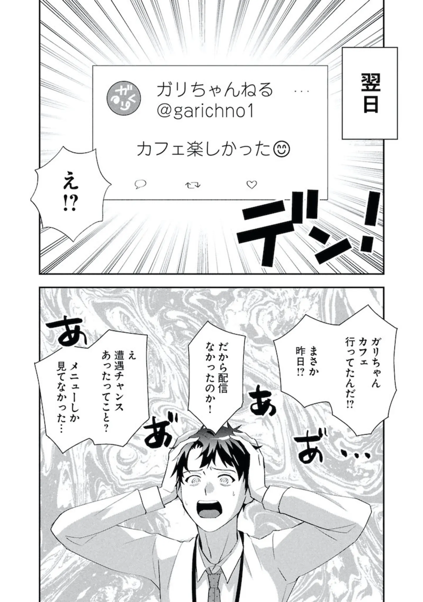 コラボカフェにいたことがバレた!? 密かにゲーム配信する会社員が勘の鋭い同僚にドキッ/となりの席の同僚が俺のリスナーだった件。1⑥ マンガ 公開日:2025/12/22 この連載を最初から読む→ 本作品をAmazon(電子)で読む > 本作品をRenta!で読む > >> 次のページに続く « 1 2 3 > あわせて読みたい 【漫画】『となりの席の同僚が俺のリスナーだった件。(1~2巻)』を第1回から読む 【漫画】『ひとりぐらしこそ我が人生』を読む 【漫画】『グランプリは私ですけど何か?~自己肯定モンスターのミスコン無双~』を読む 最新マンガと話題の書籍を無料で試し読み! 前の回 一覧 人気の連載 次の回 となりの席の同僚が俺のリスナーだった件。 1 (MFコミックス フラッパーシリーズ) 試し読み *電子書籍ストアBOOK☆WALKERへ移動します となりの席の同僚が俺のリスナーだった件。 2 (MFコミックス フラッパーシリーズ) 試し読み *電子書籍ストアBOOK☆WALKERへ移動します