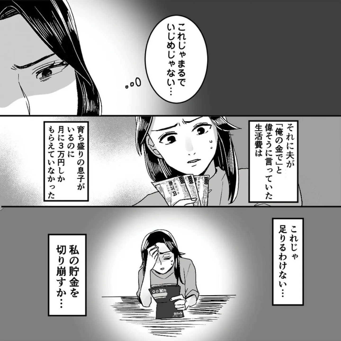 生活費は月3万なのにキャバクラで豪遊!? 食事が少ないとキレる夫に疑問/モラハラ夫から助けてくれたのは反抗期の息子でした③