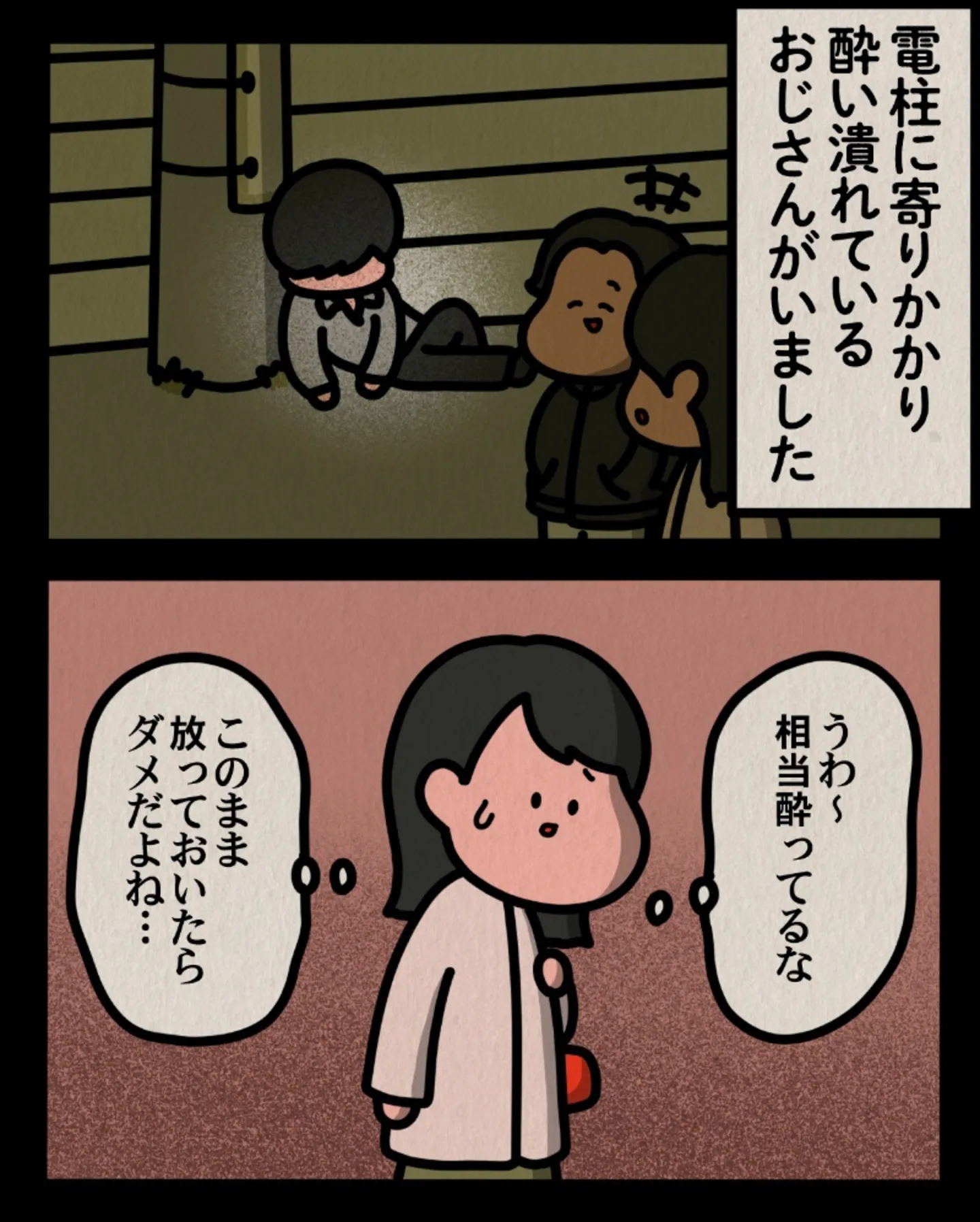 「このまま放ってほいたらダメだよね?」親切心で酔っ払いを介抱しようとしたら…/身の毛がよだつゾッとした話 マンガ 公開日:2025/12/22 この連載を最初から読む→ 本作品をAmazon(電子)で読む > 本作品をDMMブックスで読む > >> 次のページに続く « 1 2 3 > あわせて読みたい 【漫画】『身の毛がよだつゾッとした話』を読む あっ…あの男だ! 1年前に会った不審者に遭遇してしまった/身の毛がよだつゾッとした話 【漫画】『見える子ちゃん』を読む 【漫画】『ゴールデン街の悪夢~とあるBARに訪れる奇妙な客たち~』を読む 【漫画】『意味がわかると怖い4コマ』を読む 『夏にひんやり 怪談・ホラー特集』を読む! 前の回 一覧 人気の連載 次の回 身の毛がよだつゾッとした話 (コミックエッセイ) 試し読み *電子書籍ストアBOOK☆WALKERへ移動します