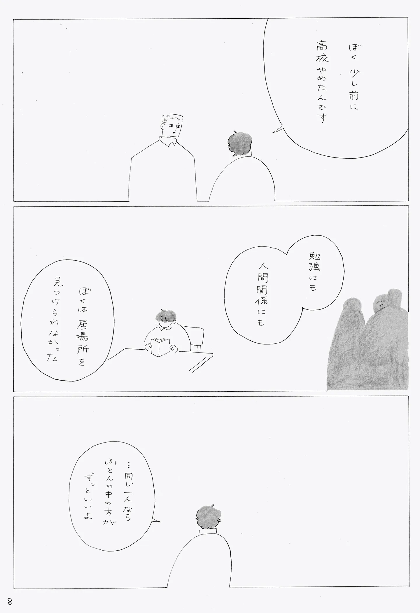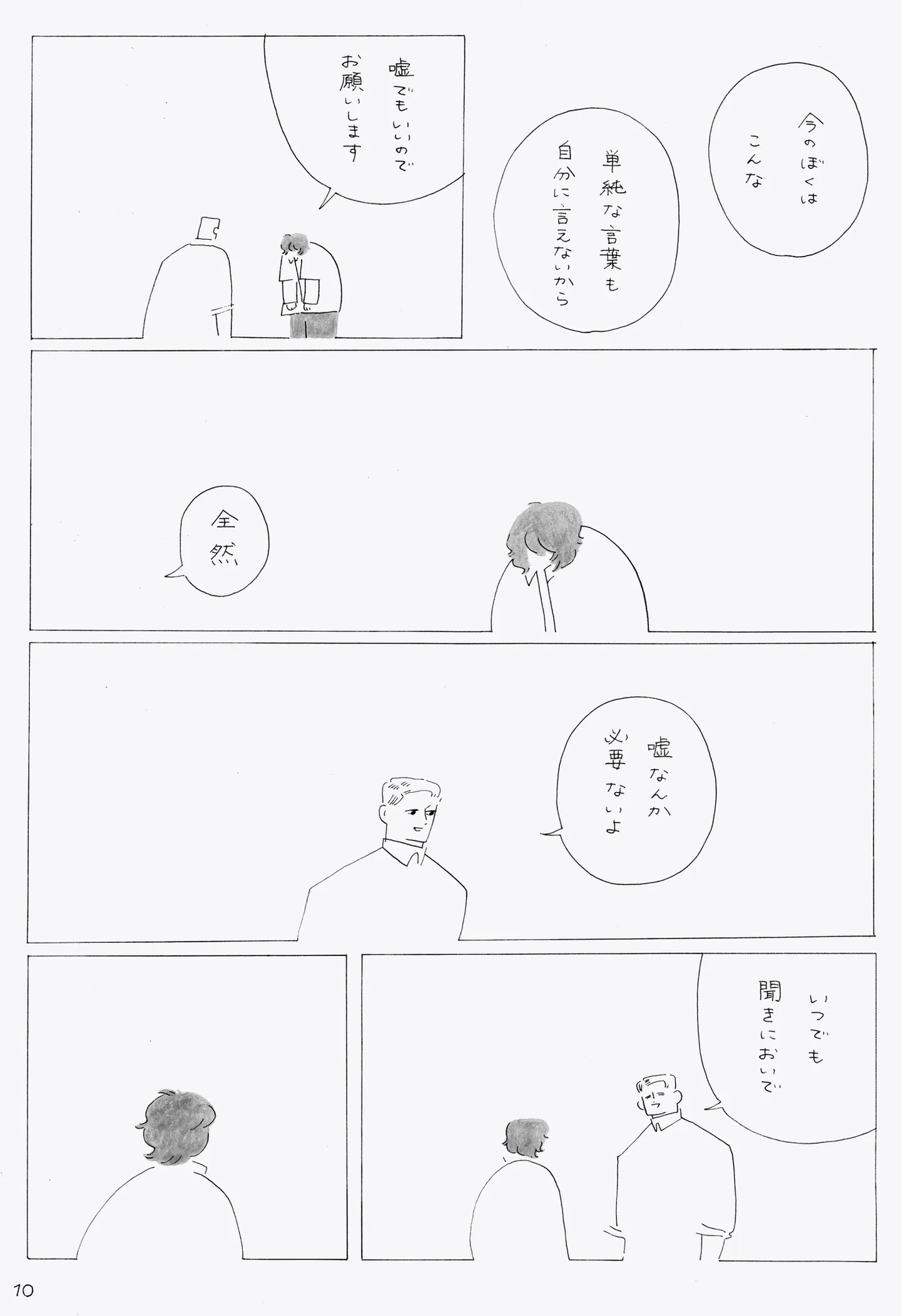 「人に嫌われている気がする」不器用な会社員と引きこもりの少年の出会い/夜の告解① マンガ 更新日:2026/2/13 <第2回に続く> « 1 2 3 4 5 あわせて読みたい 【漫画】『夜の告解』を読む 鶏が飼いたい高校生のぬら次郎、小屋を勝手に庭に建造。親が気づく前に2日間で!/嗚呼! 生き物はおもしろい! ① 【漫画】『放置子の面倒を見るのは誰ですか?』を読む 【漫画】『べつに友達じゃないけど』を読む 最新マンガと話題の書籍を無料で試し読み! 前の回 一覧 人気の連載 次の回 スミアヤカ/何気ない日常や感情を切り取って描く、シンプルで温かみのあるイラストやエッセイ漫画、創作漫画をSNSやnote、pixivで配信。 X: @aysmi_