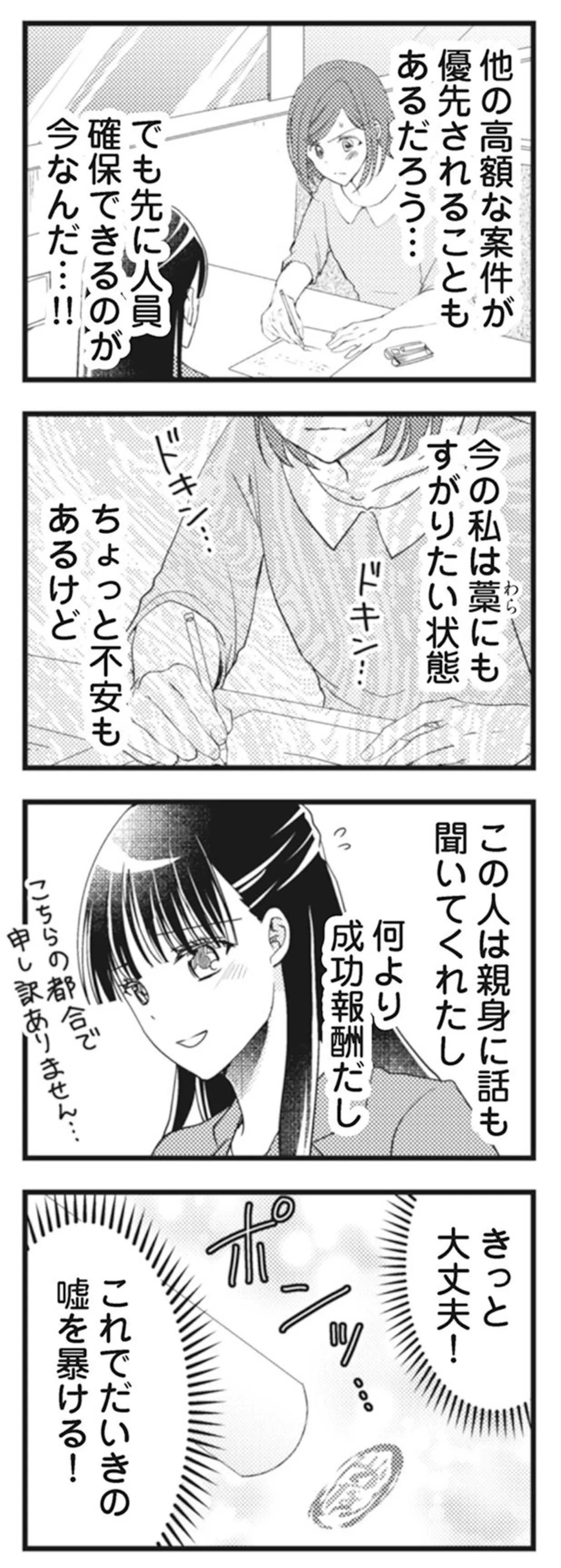 成功報酬を謳う探偵に夫の不倫疑惑を相談。焦って即座に契約するが…/サレ妻になり今は浮気探偵やってます クズ夫が実家に女を連れ込んでいました⑤ マンガ 公開日:2026/1/3 この連載を最初から読む→ <第6回に続く> 本作品をAmazon(電子)で読む > 本作品をDMMブックスで読む > 本作品をBOOK☆WALKERで読む > « 1 2 3 あわせて読みたい 【漫画】『サレ妻になり今は浮気探偵やってます クズ夫が実家に女を連れ込んでいました』を第1回から読む 【漫画】『ちっちゃくてかわいいワタシ 痛すぎる勘違い女の正体』を読む 【漫画】『成敗! パパ活野郎』を読む 最新マンガと話題の書籍を無料で試し読み! 前の回 一覧 人気の連載 次の回 【合本版】サレ妻になり今は浮気探偵やってます クズ夫が実家に女を連れ込んでいました (LScomic) 【合本版】サレ妻になり今は浮気探偵やってます ママに内緒だよ (LScomic) サレ妻になり今は浮気探偵やってます (LScomic)