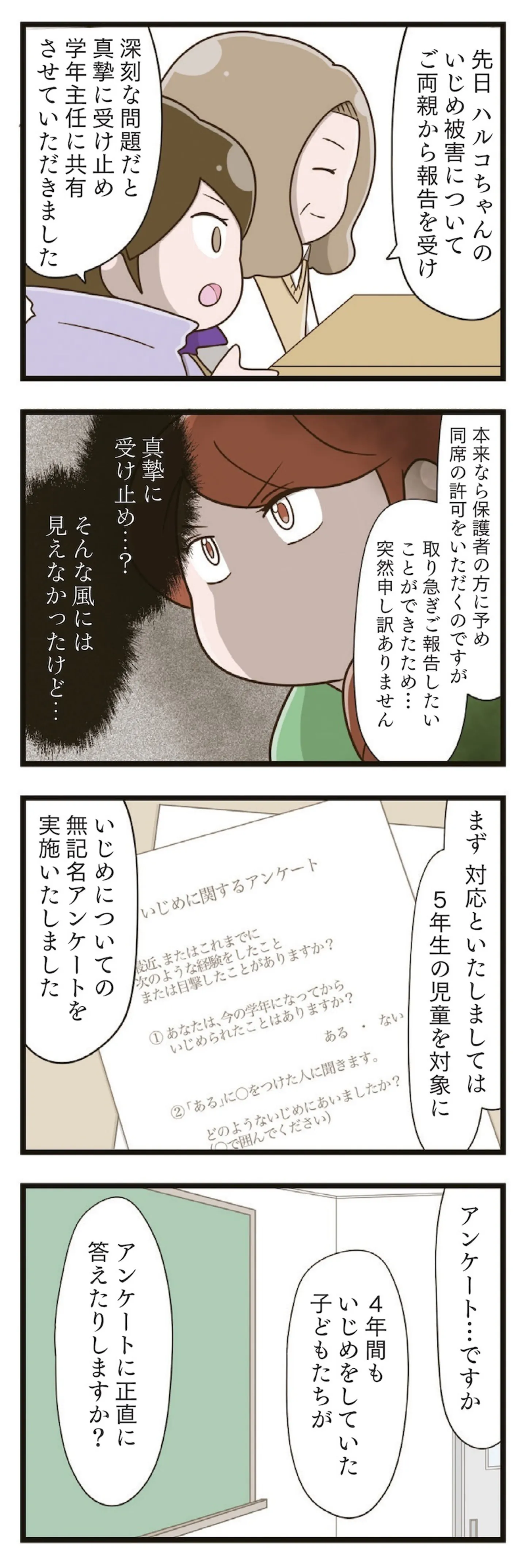 娘のいじめ問題に学校が動いた? 児童にいじめのアンケートを実施したというが…/家族全員でいじめと戦うということ。(40)