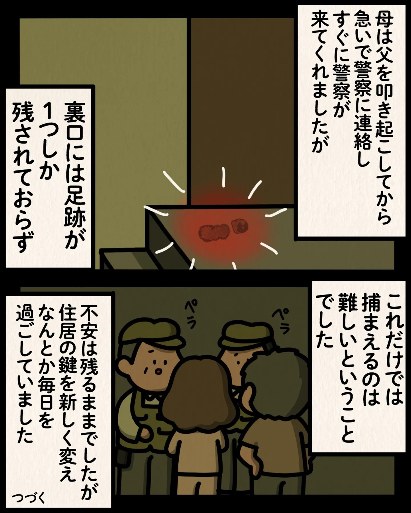 お店のお客さんの邪魔にならないよう、家族が使っていた裏口。ある日、閉めたはずの鍵が開いていて?/身の毛がよだつゾッとした話 マンガ 公開日:2026/1/2 この連載を最初から読む→ 【漫画】本編を読む <第188回に続く> 本作品をAmazon(電子)で読む > 本作品をDMMブックスで読む > 本作品をBOOK☆WALKERで読む > « 1 2 3 あわせて読みたい 【漫画】『身の毛がよだつゾッとした話』を読む 亡くなった患者の部屋からのナースコール。念のため、誰もいないことを確かめに病室へ向かった/身の毛がよだつゾッとした話 【漫画】『その物件、告知事項アリ』を読む 【漫画】『死役所』を読む 【漫画】『東京怪奇酒』を読む 『夏にひんやり 怪談・ホラー特集』を読む! 前の回 一覧 人気の連載 次の回 身の毛がよだつゾッとした話 (コミックエッセイ) 試し読み *電子書籍ストアBOOK☆WALKERへ移動します