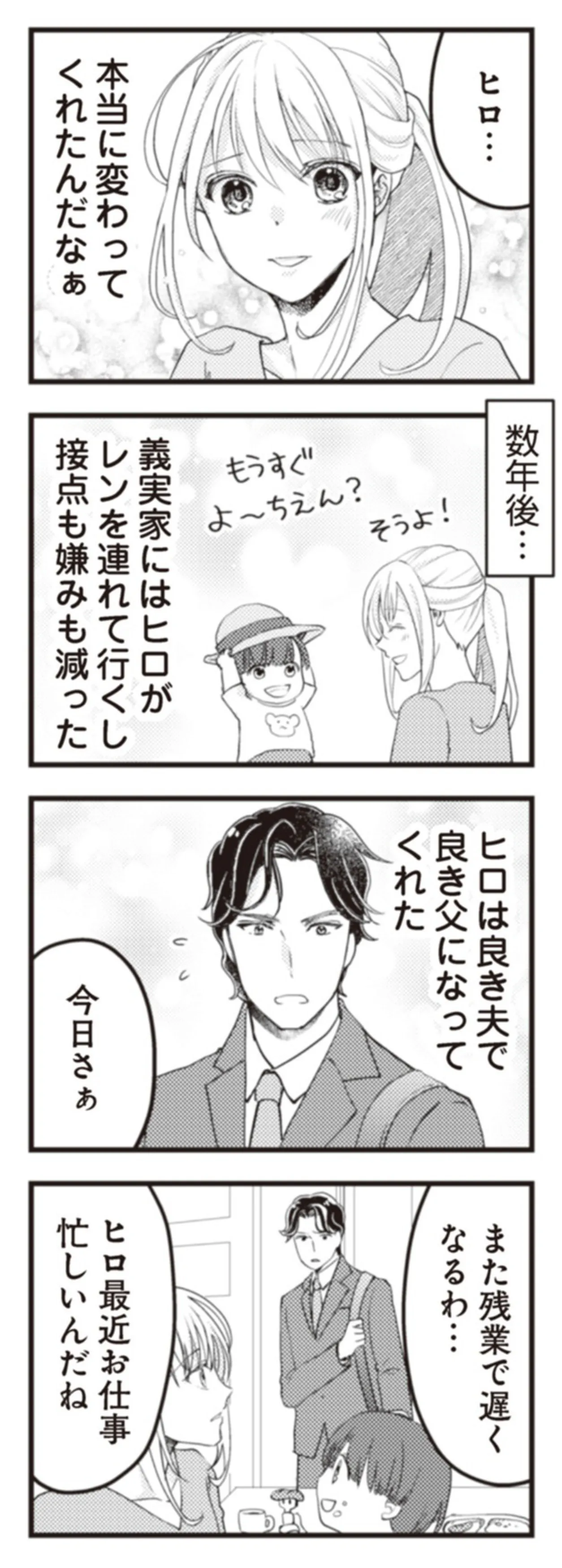 ダメ夫に妻の父が家事を伝授! 子どもが生まれる前に改心して、良き夫に/サレ妻になり今は浮気探偵やってます ママに内緒だよ② マンガ 公開日:2025/12/21 この連載を最初から読む→ <第3回に続く> 本作品をAmazon(電子)で読む > 本作品をRenta!で読む > 本作品をebookjapanで読む > 本作品をBOOK☆WALKERで読む > « 1 2 3 あわせて読みたい 【漫画】『サレ妻になり今は浮気探偵やってます ママに内緒だよ』を第1回から読む 【漫画】『痔だと思ったら大腸がんステージ4でした 標準治療を旅と漫画で乗り越えてなんとか経過観察になるまで』を読む 【漫画】『今日、私は夫と浮気する』を読む 最新マンガと話題の書籍を無料で試し読み! 前の回 一覧 人気の連載 次の回 【合本版】サレ妻になり今は浮気探偵やってます ママに内緒だよ (LScomic) 【合本版】サレ妻になり今は浮気探偵やってます クズ夫が実家に女を連れ込んでいました (LScomic) サレ妻になり今は浮気探偵やってます (LScomic)