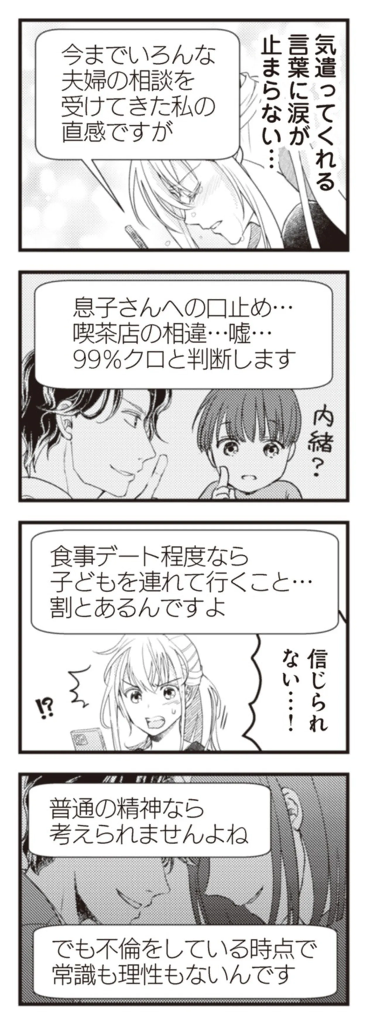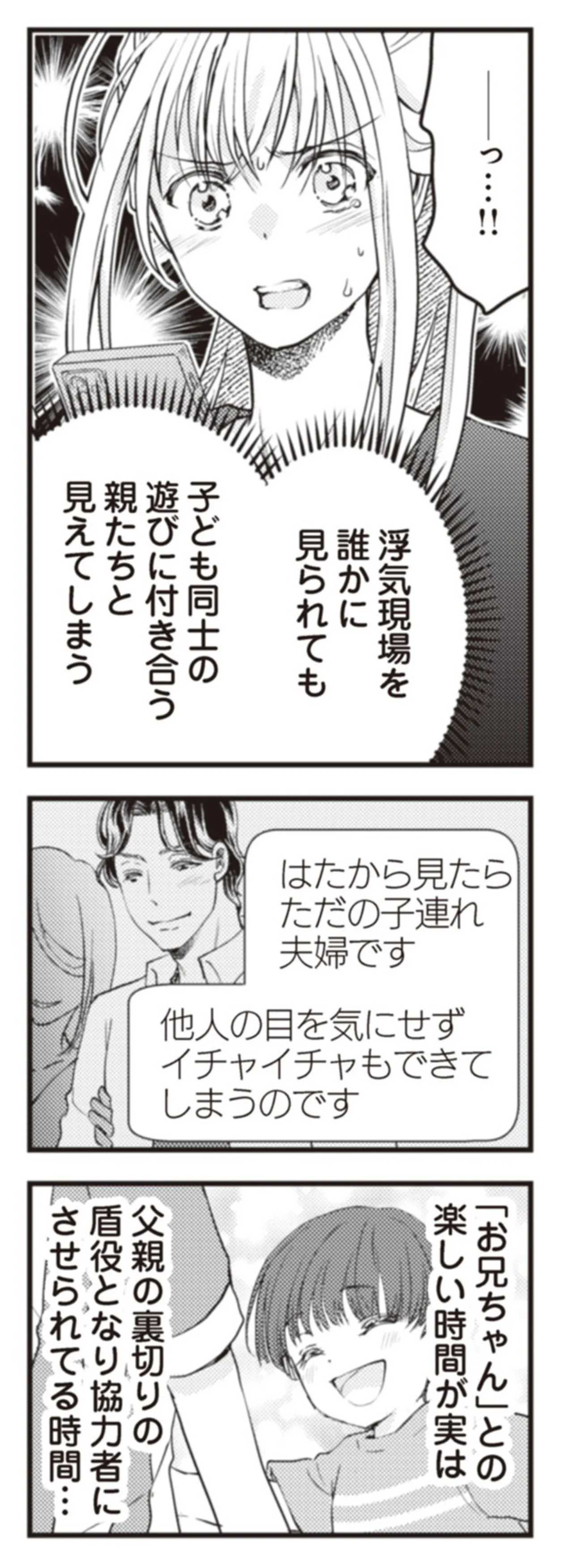 子連れなら不倫カップルも夫婦に見える!? 幼い息子を巻き込む夫が許せない/サレ妻になり今は浮気探偵やってます ママに内緒だよ⑦ マンガ 公開日:2025/12/26 この連載を最初から読む→ 本作品をAmazon(電子)で読む > 本作品をRenta!で読む > >> 次のページに続く « 1 2 3 > あわせて読みたい 【漫画】『サレ妻になり今は浮気探偵やってます ママに内緒だよ』を第1回から読む 【漫画】『娘をグルーミングする先生』を読む 【漫画】『旦那の浮気相手とLINE友達になってみた』を読む 最新マンガと話題の書籍を無料で試し読み! 前の回 一覧 人気の連載 次の回 【合本版】サレ妻になり今は浮気探偵やってます ママに内緒だよ (LScomic) 【合本版】サレ妻になり今は浮気探偵やってます クズ夫が実家に女を連れ込んでいました (LScomic) サレ妻になり今は浮気探偵やってます (LScomic)