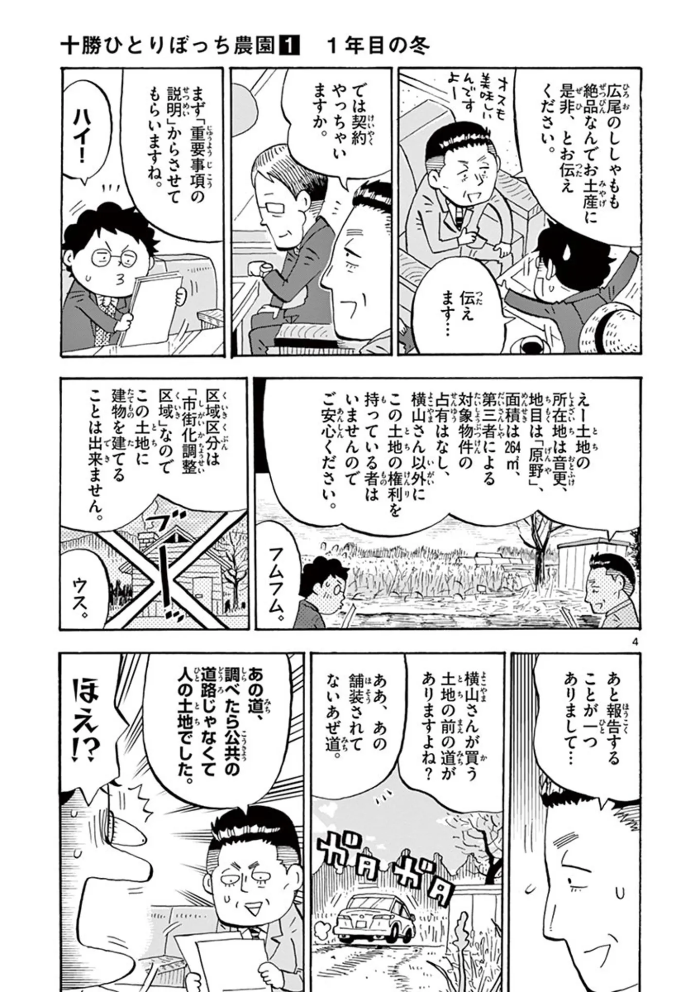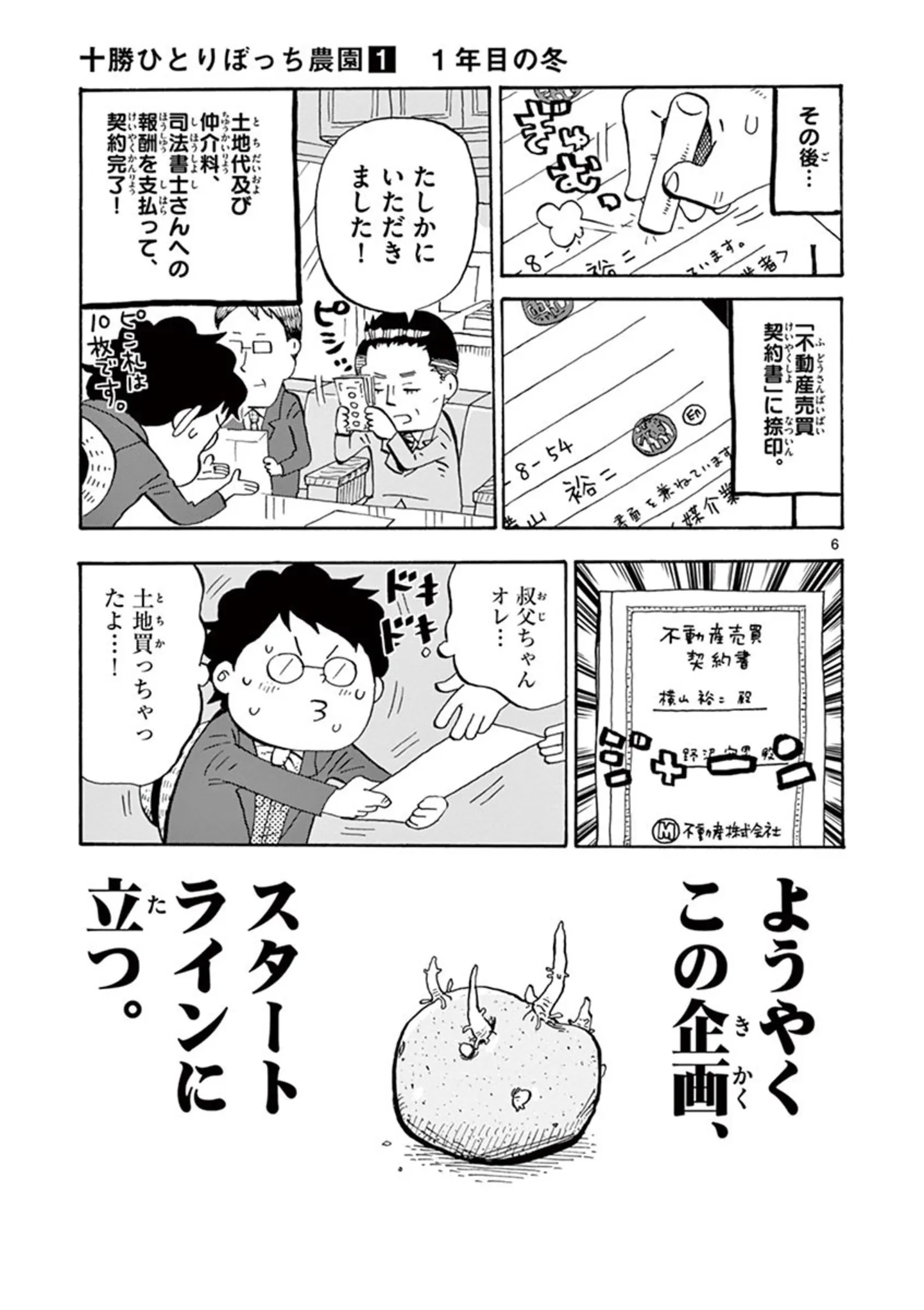 いよいよ人生初の土地契約が完了! ついに正真正銘の自分の場所を手に入れた瞬間/十勝ひとりぼっち農園⑩ マンガ 公開日:2026/1/4 この連載を最初から読む→ <第11回に続く> 本作品をAmazon(電子)で読む > 本作品をRenta!で読む > 本作品をebookjapanで読む > 本作品をBOOK☆WALKERで読む > « 1 2 3 あわせて読みたい 【漫画】『十勝ひとりぼっち農園』を第1回から読む 【漫画】『きょうだい、だけどいや ケアをさせられたきょうだい児だった、けど』を読む 【漫画】『工務店の日報』を読む 最新マンガと話題の書籍を無料で試し読み! 前の回 一覧 人気の連載 次の回 十勝ひとりぼっち農園(1) (少年サンデーコミックススペシャル) 試し読み *電子書籍ストアBOOK☆WALKERへ移動します 十勝ひとりぼっち農園(18) (少年サンデーコミックススペシャル) 試し読み *電子書籍ストアBOOK☆WALKERへ移動します