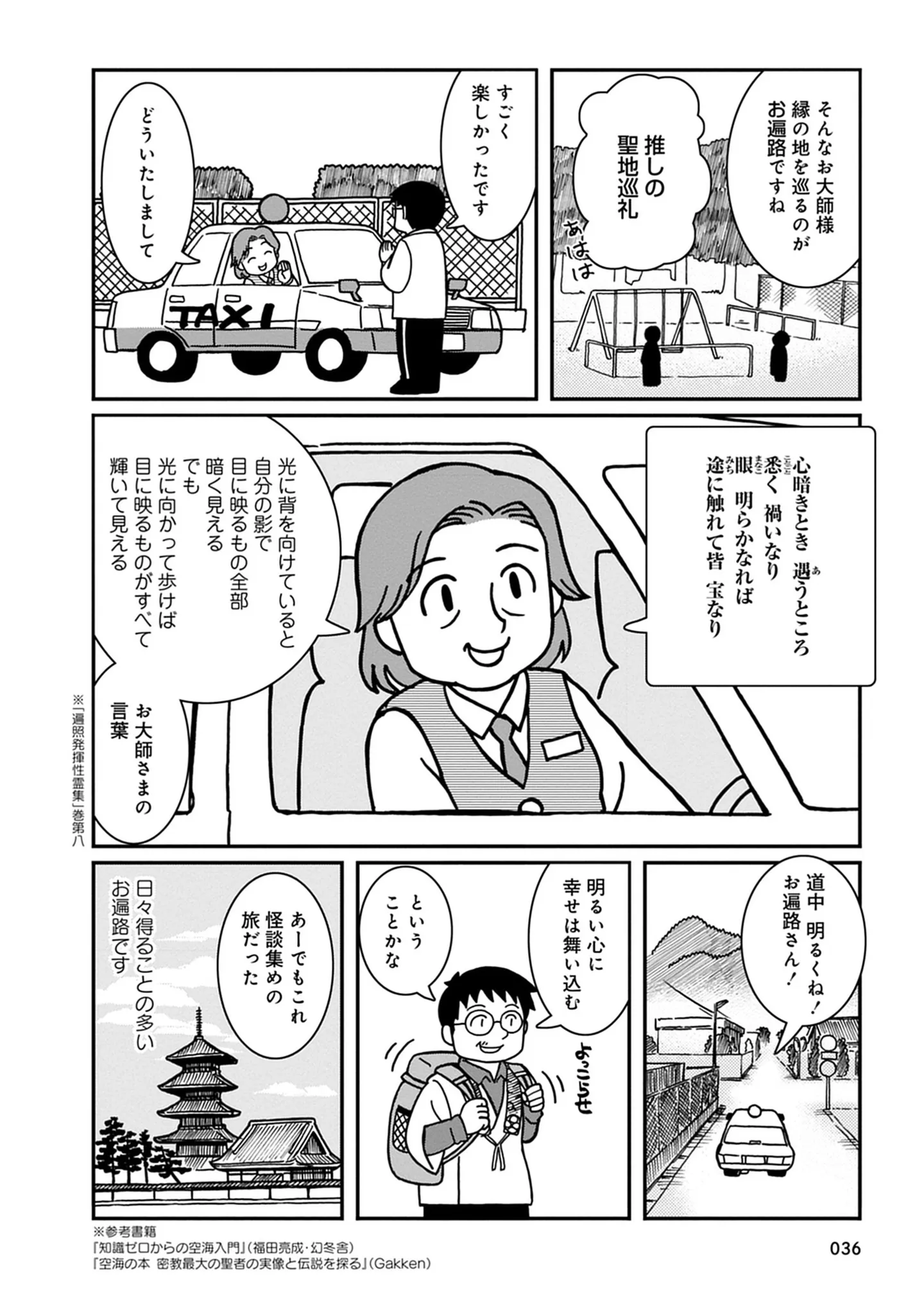 日本史の中で「もっとも多才な天才」。タクシー運転手が語る弘法大師・空海の魅力/四国お遍路まんきつすれちがい旅⑥ マンガ 公開日:2026/1/1 この連載を最初から読む→ <第7回に続く> 本作品をAmazon(電子)で読む > 本作品をRenta!で読む > 本作品をブックライブで読む > 本作品をBOOK☆WALKERで読む > « 1 2 あわせて読みたい 【漫画】『四国お遍路まんきつすれちがい旅』を第1回から読む 【漫画】『怪談奇談まみれの四国お遍路』を読む 【漫画】『グランプリは私ですけど何か?~自己肯定モンスターのミスコン無双~』を読む 【漫画】『マウンティングママ友が、全てを失った話』を読む 最新マンガと話題の書籍を無料で試し読み! 前の回 一覧 人気の連載 次の回 四国お遍路まんきつすれちがい旅 (バンブーコミックス エッセイセレクション) 試し読み *電子書籍ストアBOOK☆WALKERへ移動します