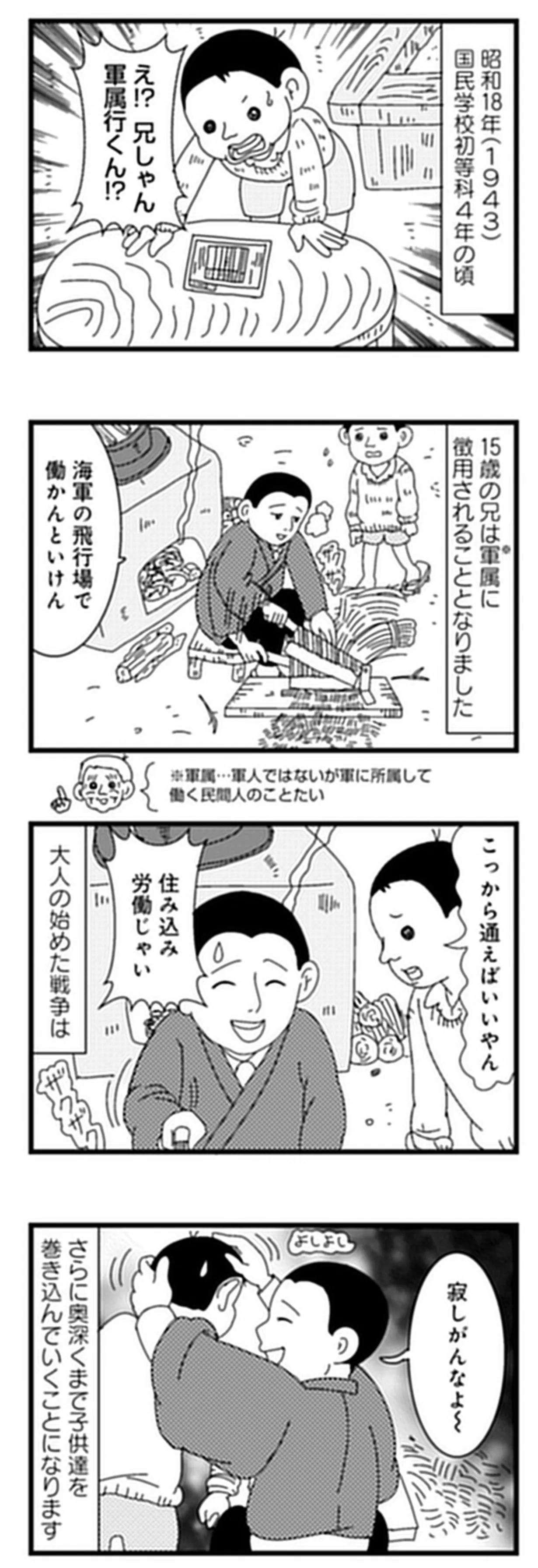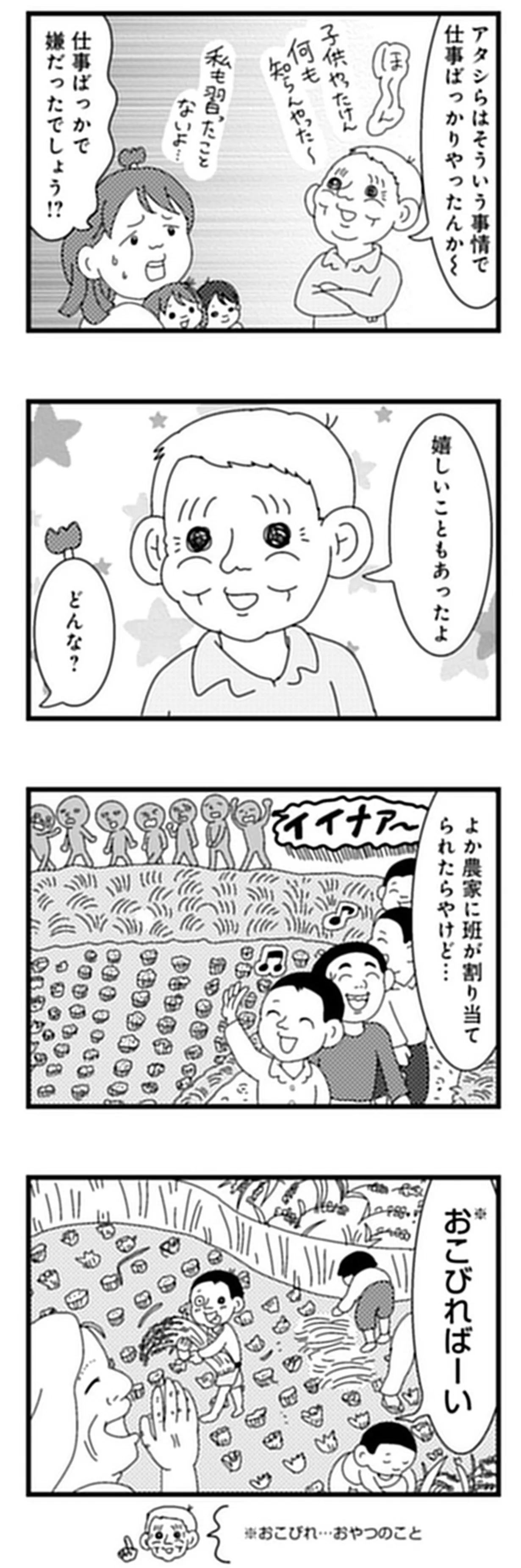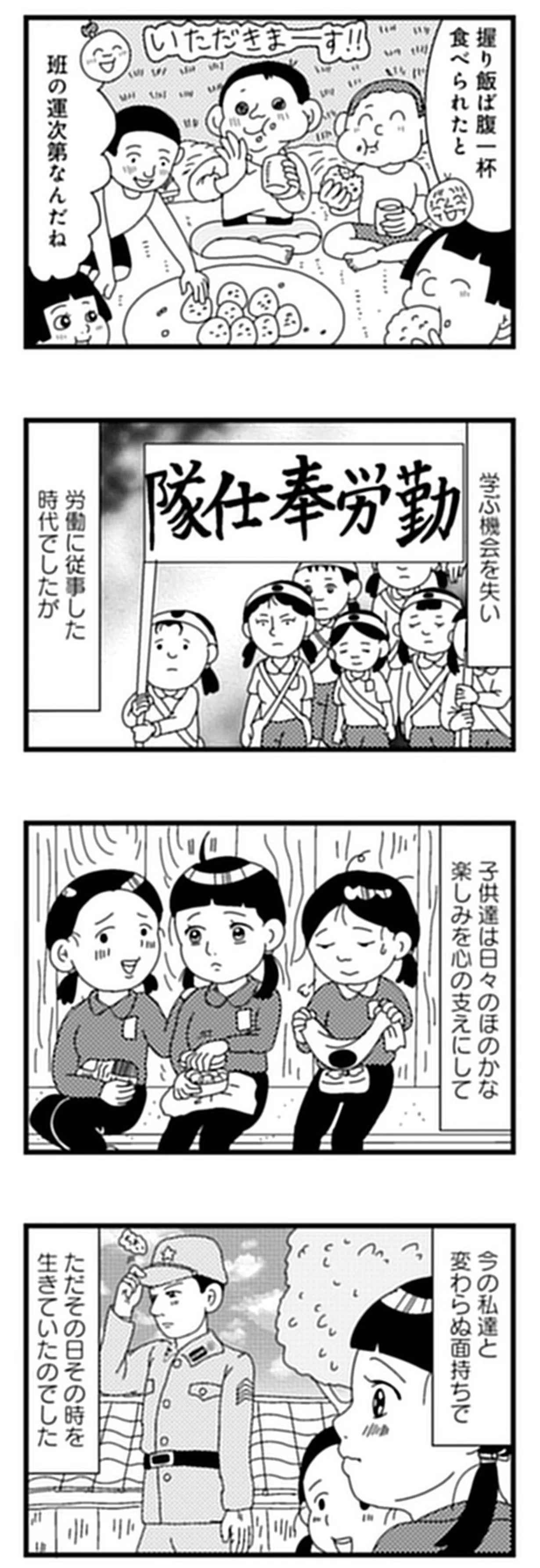 戦況悪化で小学生も労働力となった時代。幼かった義父のささやかな楽しみとは/お義父さん、戦争ってどげんやった?⑪ マンガ 公開日:2026/1/2 この連載を最初から読む→ <第12回に続く> 本作品をAmazon(電子)で読む > 本作品をRenta!で読む > 本作品をebookjapanで読む > 本作品をBOOK☆WALKERで読む > « 1 2 3 あわせて読みたい 【漫画】『お義父さん、戦争ってどげんやった?年の差婚した私が聞いた「あの日」の記憶』を第1回から読む 【漫画】『人見知りの自分を許せたら生きるのがラクになりました』を読む 【漫画】『離婚リセット 妻から別れを切り出された夫』を読む 最新マンガと話題の書籍を無料で試し読み! 前の回 一覧 人気の連載 次の回 お義父さん、戦争ってどげんやった?年の差婚した私が聞いた「あの日」の記憶 (バンブーコミックス エッセイセレクション) 試し読み *電子書籍ストアBOOK☆WALKERへ移動します