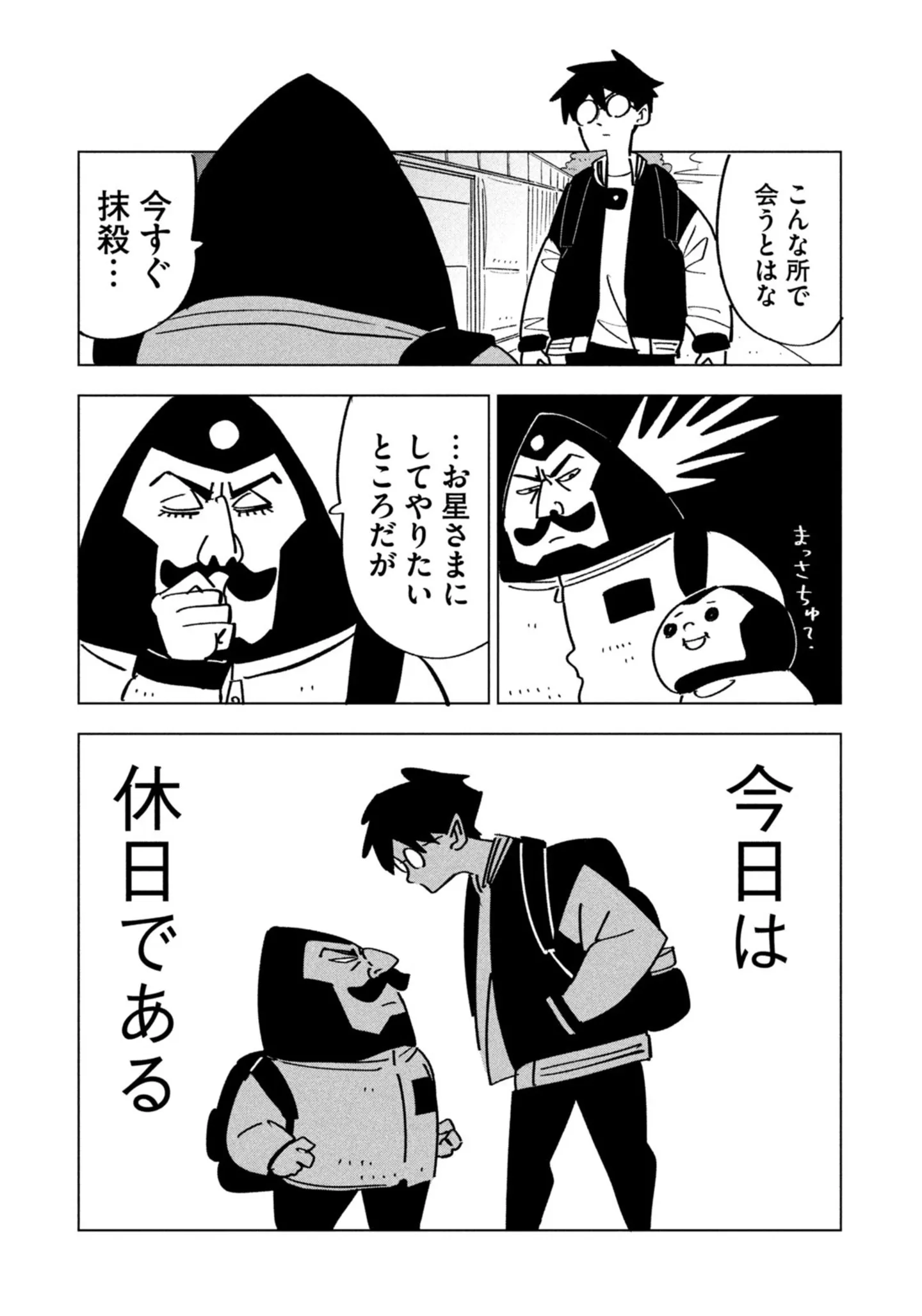 そんなある日、ミネタのもとに敵対する「ブラックデビル」が“完全週休2日制”を導入したという情報が届く。なんと、それに伴ってヒーロー側も完全週休2日へ移行することになる。ミネタは、突如手に入った「空白の2日間」に戸惑う。休みなく戦い続けてきた彼は、休日に何をすればいいのか分からなかったからだ。