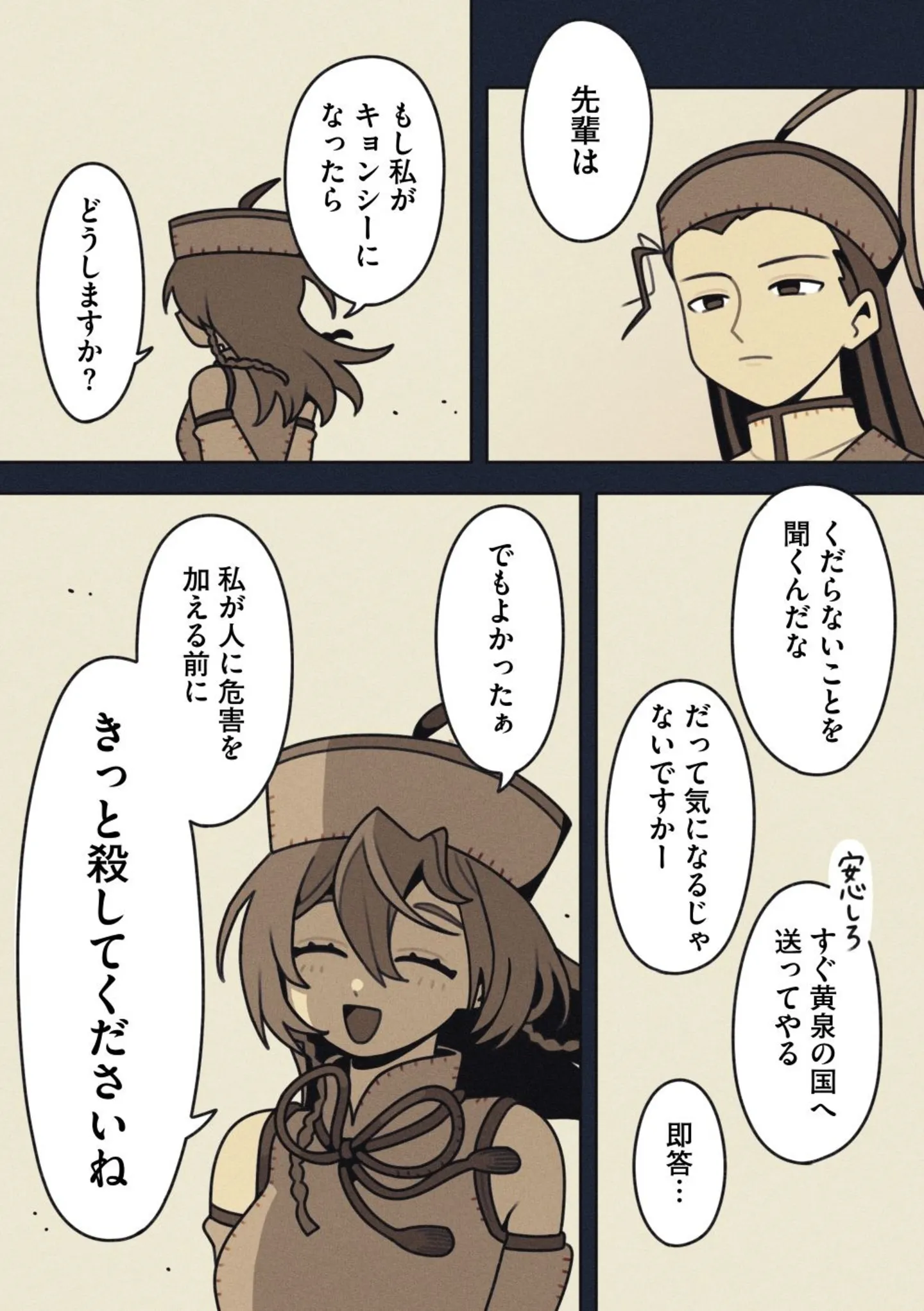 もしキョンシーになったら、きっと殺してくださいね。キョンシー退治をする後輩道士の願い/キョンシーになった後輩⑥ マンガ 公開日:2026/1/6 この連載を最初から読む→ <第7回に続く> 本作品をAmazon(電子)で読む > 本作品をRenta!で読む > 本作品をブックライブで読む > 本作品をBOOK☆WALKERで読む > « 1 2 3 あわせて読みたい 【漫画】『キョンシーになった後輩』を第1回から読む 【漫画】『グランプリは私ですけど何か?~自己肯定モンスターのミスコン無双~』を読む 【漫画】『マウンティングママ友が、全てを失った話』を読む 最新マンガと話題の書籍を無料で試し読み! 前の回 一覧 人気の連載 次の回 キョンシーになった後輩 (コミックエッセイ) 試し読み *電子書籍ストアBOOK☆WALKERへ移動します