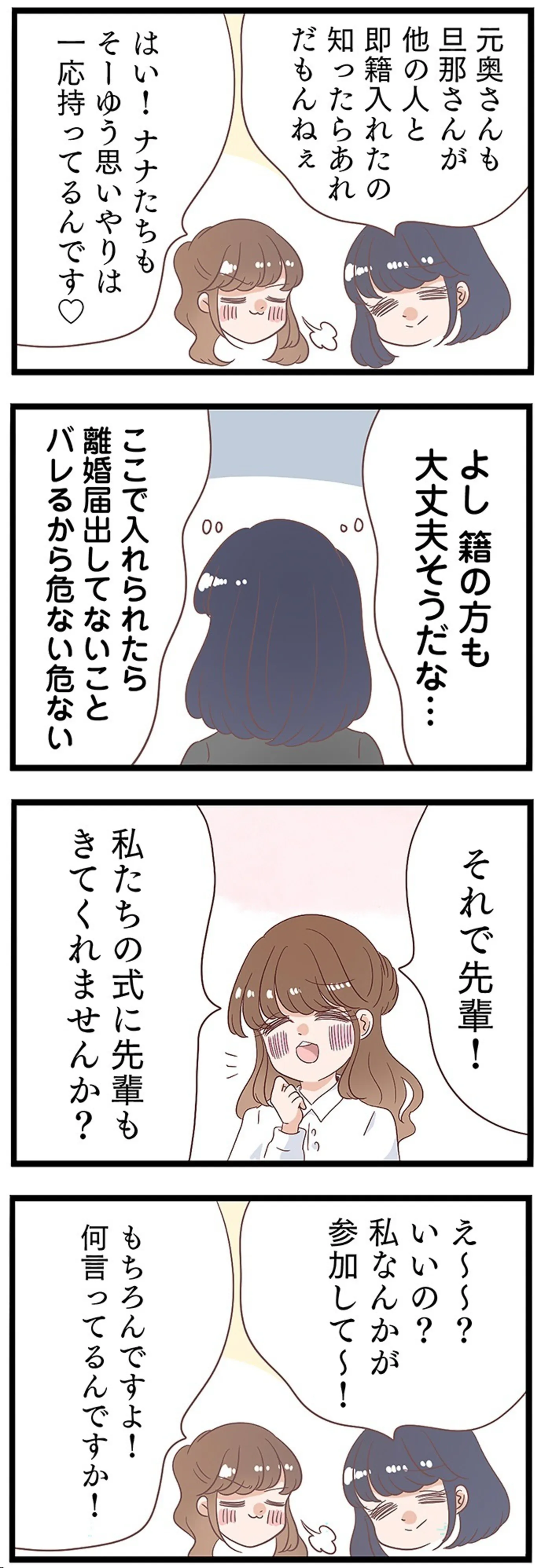 夫と不倫相手が結婚式!? 何も知らない不倫相手は妻を招待/同僚が私の夫と結婚するらしいので、最高の仕返しを贈ります1⑱ マンガ 公開日:2026/1/13 この連載を最初から読む→ 本作品をAmazon(電子)で読む > 本作品をRenta!で読む > >> 次のページに続く « 1 2 3 4 > あわせて読みたい 【漫画】『同僚が私の夫と結婚するらしいので、最高の仕返しを贈ります』を第1回から読む 【漫画】『成敗! パパ活野郎』を読む 【漫画】『ややこしい蜜柑たち』を読む 最新マンガと話題の書籍を無料で試し読み! 前の回 一覧 人気の連載 次の回 同僚が私の夫と結婚するらしいので、最高の仕返しを贈ります (LScomic) 同僚が私の夫と結婚するらしいので、最高の仕返しを贈ります 2 (LScomic) 同僚が私の夫と結婚するらしいので、最高の仕返しを贈ります 3 (LScomic) 同僚が私の夫と結婚するらしいので、最高の仕返しを贈ります 4 (LScomic)