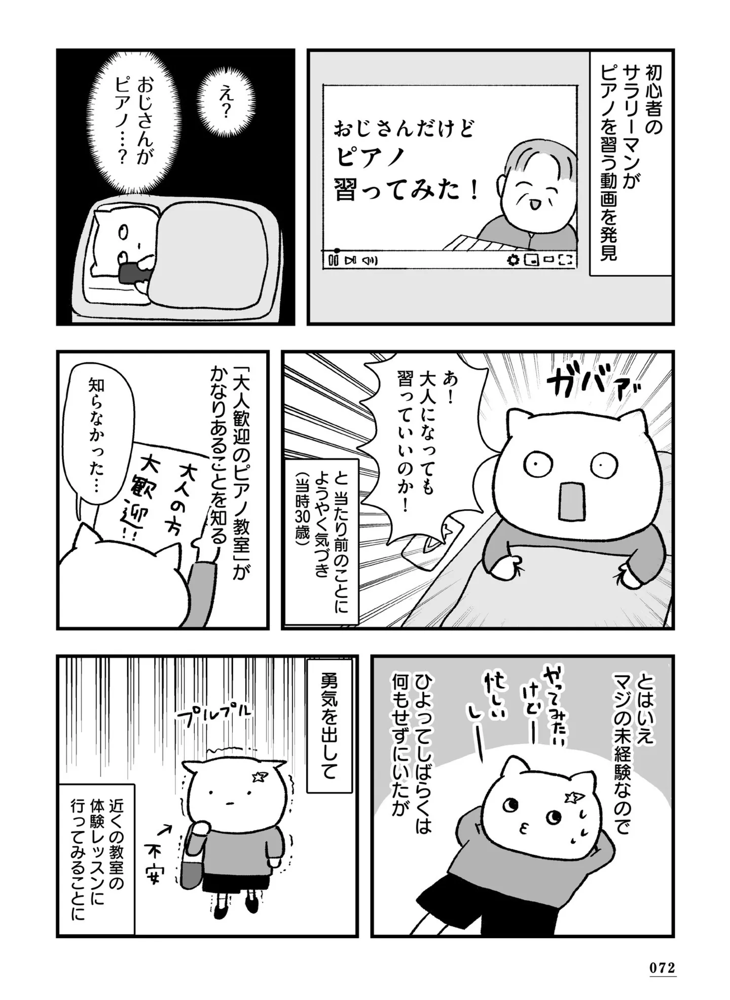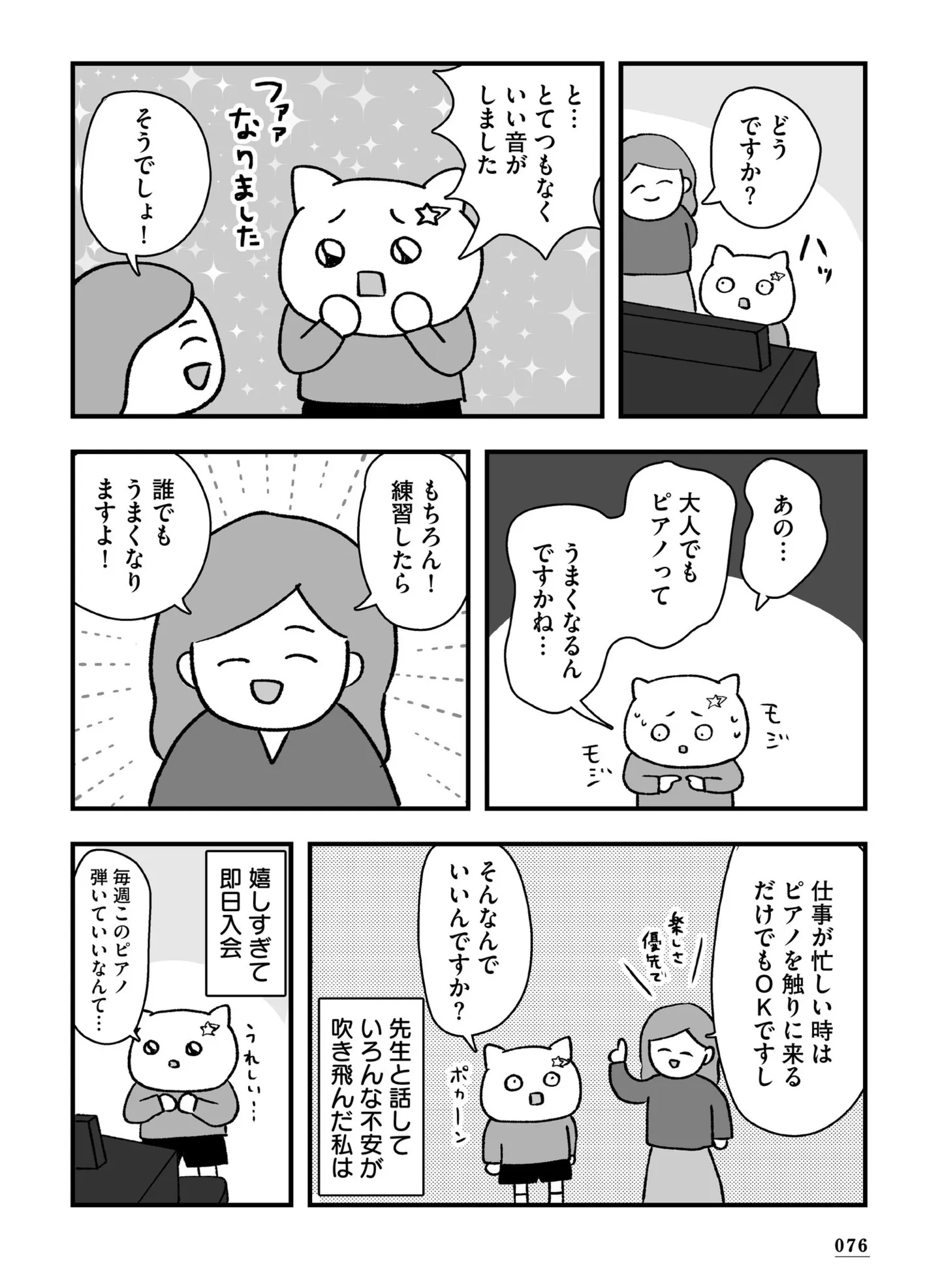 夢のピアノに30歳で初挑戦。年齢で気後れしてたけど、2年でクラシックが弾けるように!/仕事とスマホで終わる日々が「習いごと」で変わった話 マンガ 公開日:2026/1/10 この連載を最初から読む→ 本作品をAmazon(電子)で読む > 本作品をRenta!で読む > >> 次のページに続く « 1 2 3 4 > あわせて読みたい 【漫画】『仕事とスマホで終わる日々が「習いごと」で変わった話』を第1回から読む 【漫画】『グランプリは私ですけど何か?~自己肯定モンスターのミスコン無双~』を読む 【漫画】『スーパーの野菜売り場でパートやってます。』を読む 【漫画】『出ていくか、払うか 家賃保証会社の憂鬱』を読む 【漫画】『コウノトリのお手伝い』を読む 最新マンガと話題の書籍を無料で試し読み! 前の回 一覧 人気の連載 次の回 仕事とスマホで終わる日々が「習いごと」で変わった話 (コミックエッセイ) 試し読み *電子書籍ストアBOOK☆WALKERへ移動します