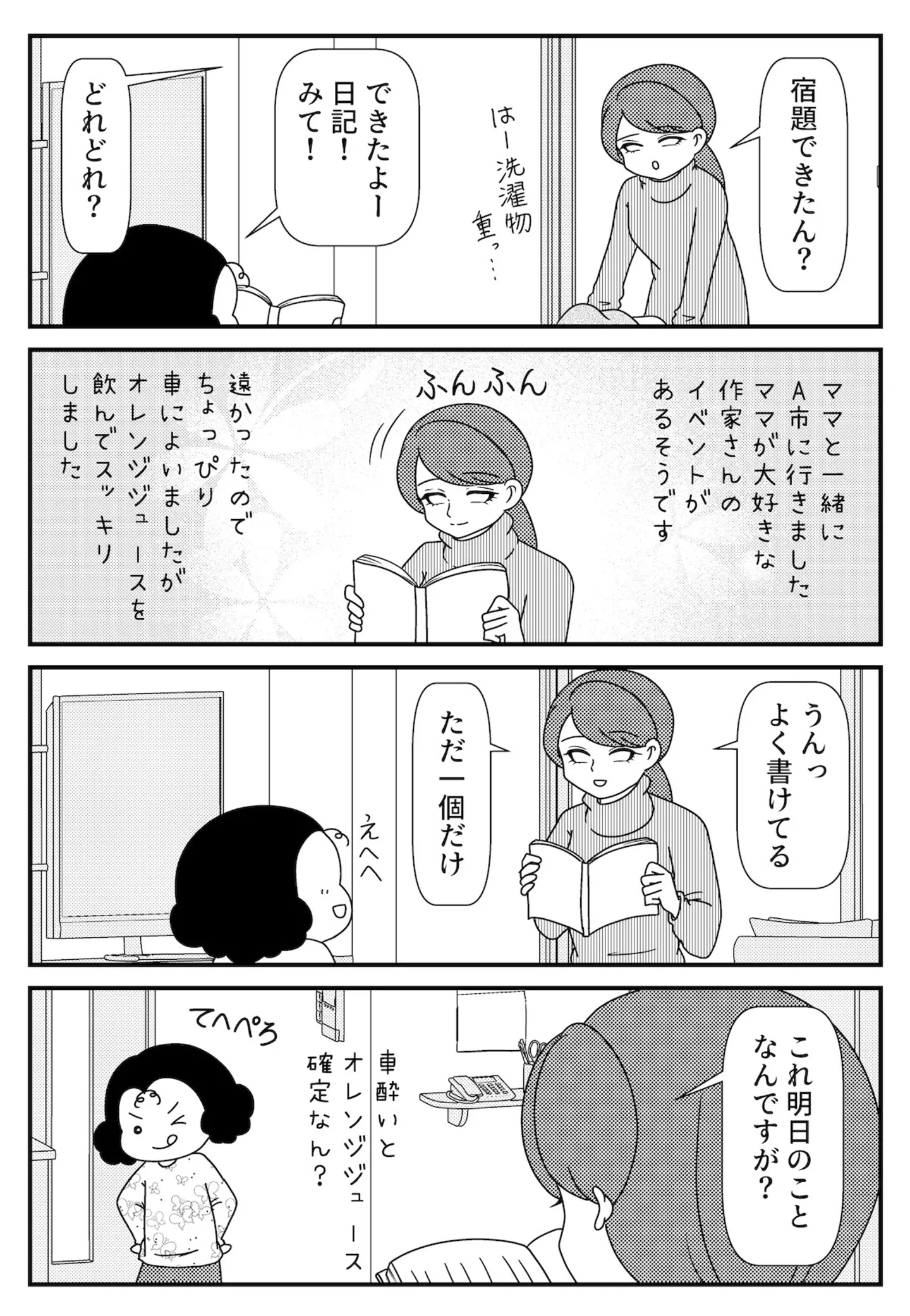 「宿題の日記、よく書けてるけど…」未来日記(精度高め)を書く娘【白目家の日常】/子育てしたら白目になりました