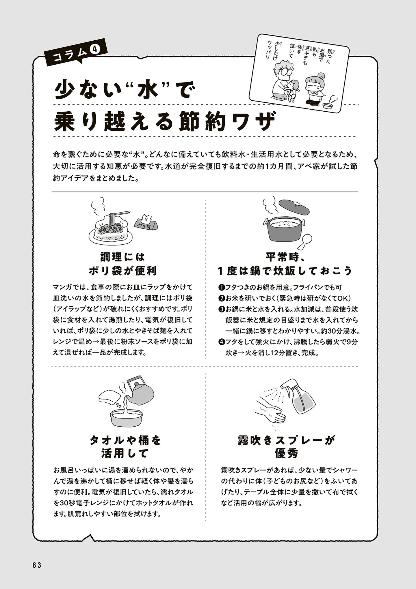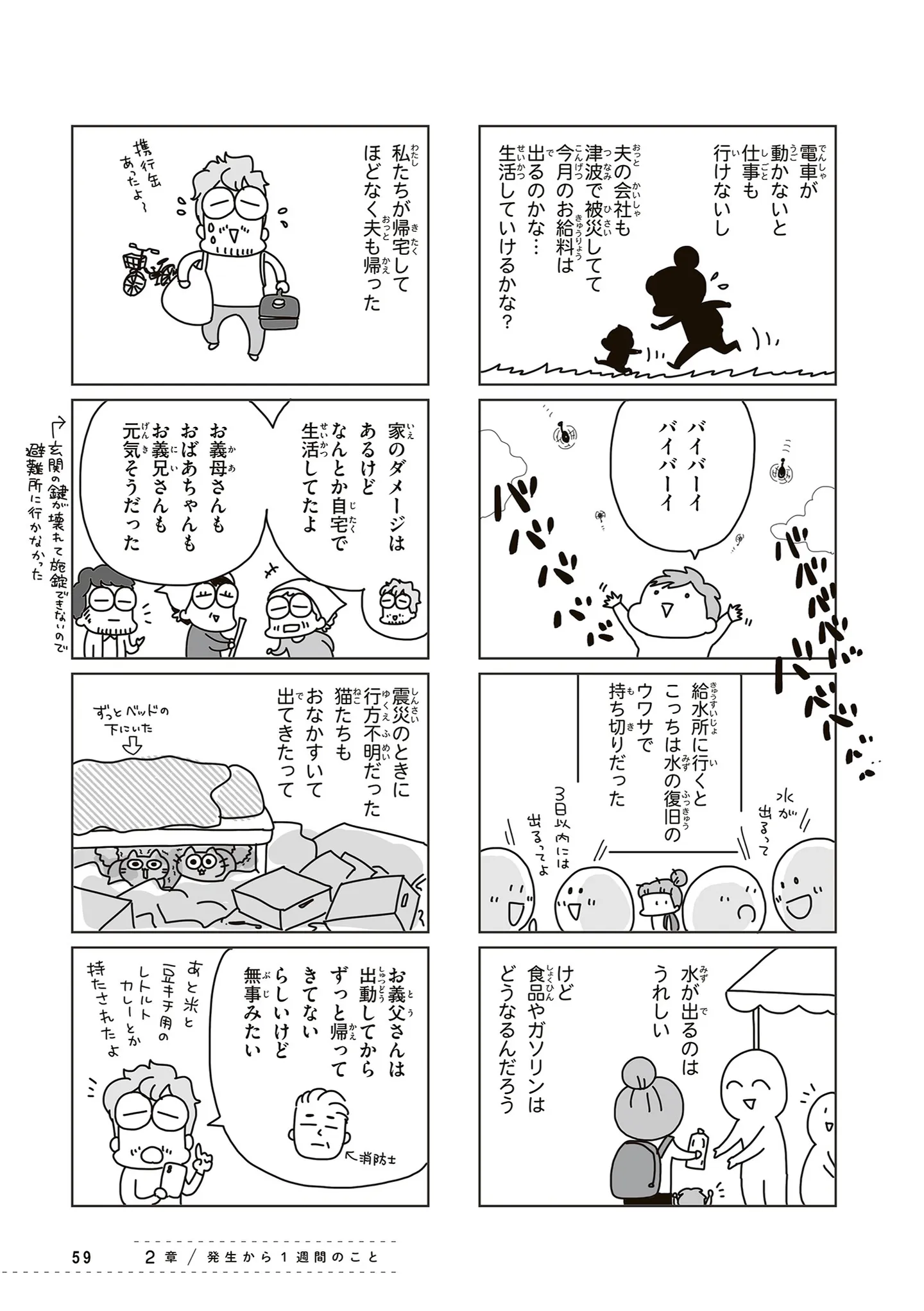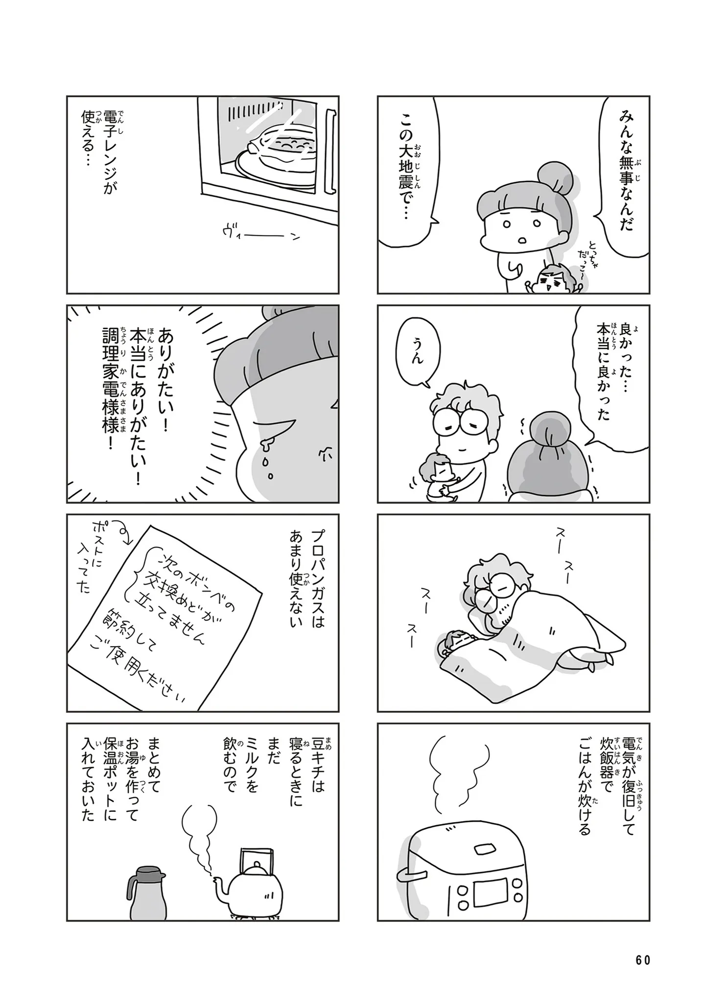 震災から4日目、電気が復旧! でも今月の給料は? 食品は? 被災生活の出口が見えない/今日、地震がおきたら⑤ マンガ 公開日:2026/1/19 この連載を最初から読む→ <第6回に続く> 本作品をAmazon(電子)で読む > 本作品をRenta!で読む > 本作品をebookjapanで読む > 本作品をBOOK☆WALKERで読む > « 1 2 3 あわせて読みたい 【漫画】『今日、地震がおきたら』を第1回から読む 【漫画】『健康以下、介護未満 親のトリセツ』を読む 【漫画】『ちっちゃくてかわいいワタシ 痛すぎる勘違い女の正体』を読む 最新マンガと話題の書籍を無料で試し読み! 前の回 一覧 人気の連載 次の回 今日、地震がおきたら (コミックエッセイ) 試し読み *電子書籍ストアBOOK☆WALKERへ移動します