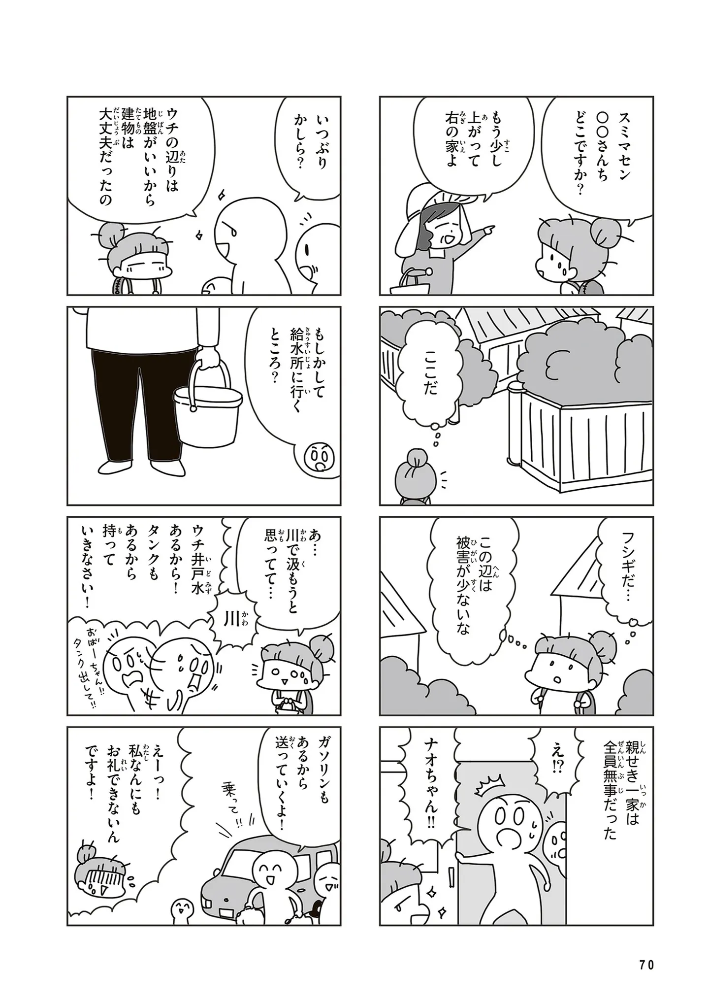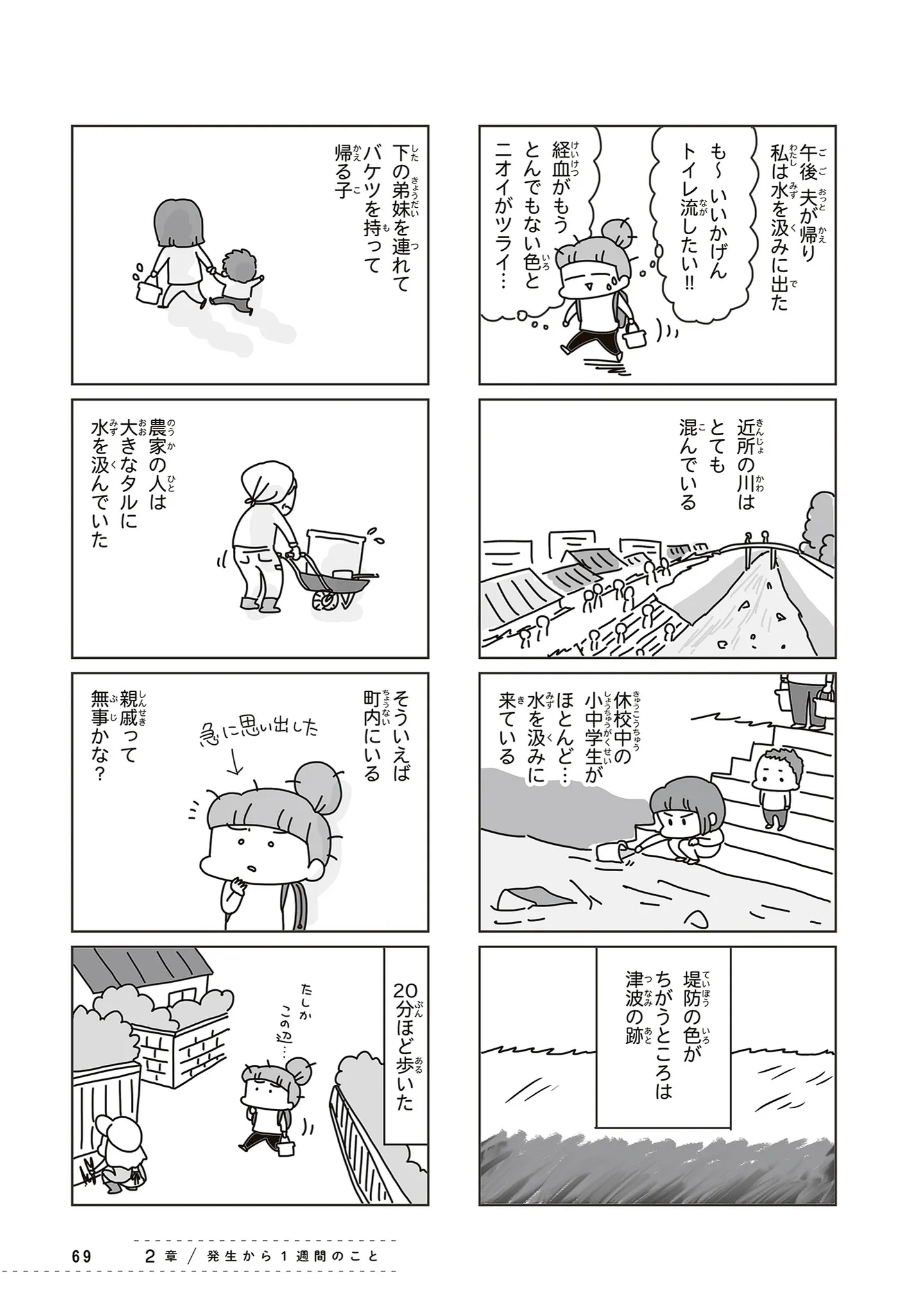 被災して直面する水問題。生活用水は川で汲んだ水、お米を研ぐ水はどうする?/今日、地震がおきたら⑥ マンガ 公開日:2026/1/20 この連載を最初から読む→ <第7回に続く> 本作品をAmazon(電子)で読む > 本作品をRenta!で読む > 本作品をebookjapanで読む > 本作品をBOOK☆WALKERで読む > « 1 2 3 あわせて読みたい 【漫画】『今日、地震がおきたら』を第1回から読む 【漫画】『プリンセスお母さん』を読む 【漫画】『グランプリは私ですけど何か?~自己肯定モンスターのミスコン無双~』を読む 最新マンガと話題の書籍を無料で試し読み! 前の回 一覧 人気の連載 次の回 今日、地震がおきたら (コミックエッセイ) 試し読み *電子書籍ストアBOOK☆WALKERへ移動します