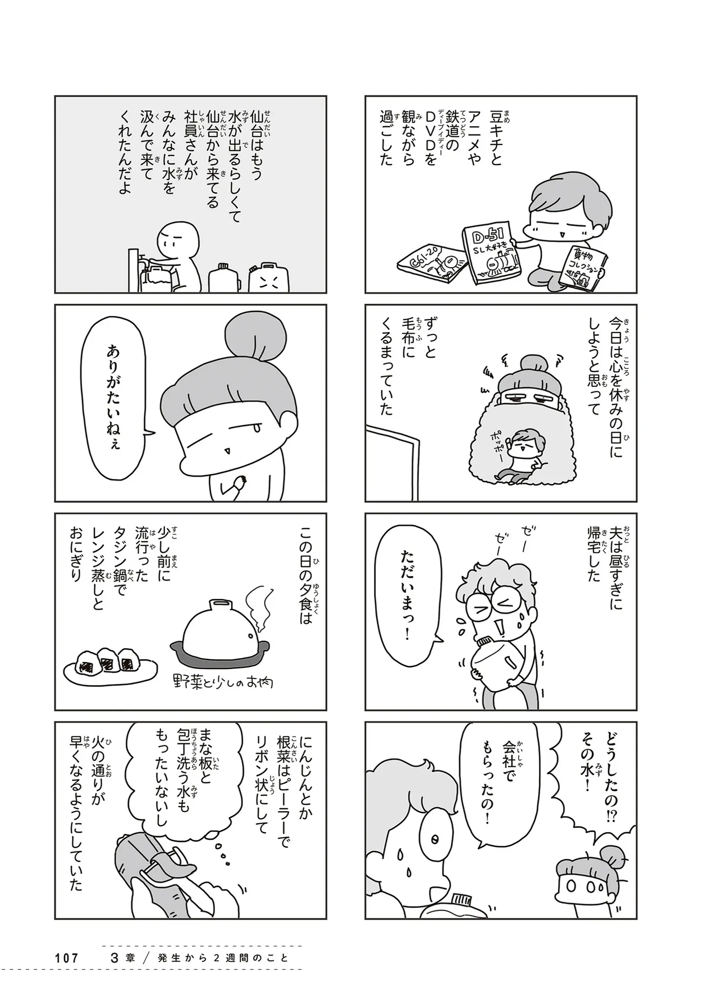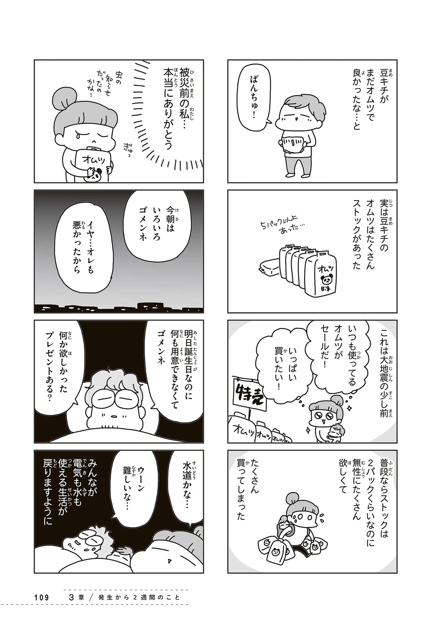 自宅避難で幼い息子と家にこもる毎日。当たり前のように出勤する夫に、妻の我慢は限界/今日、地震がおきたら⑩ マンガ 公開日:2026/1/24 この連載を最初から読む→ <第11回に続く> 本作品をAmazon(電子)で読む > 本作品をRenta!で読む > 本作品をebookjapanで読む > 本作品をBOOK☆WALKERで読む > « 1 2 3 あわせて読みたい 【漫画】『今日、地震がおきたら』を第1回から読む 【漫画】『なんでも横取りする妹が嫌い』を読む 【漫画】『きょうだい、だけどいや ケアをさせられたきょうだい児だった、けど』を読む 最新マンガと話題の書籍を無料で試し読み! 前の回 一覧 人気の連載 次の回 今日、地震がおきたら (コミックエッセイ) 試し読み *電子書籍ストアBOOK☆WALKERへ移動します