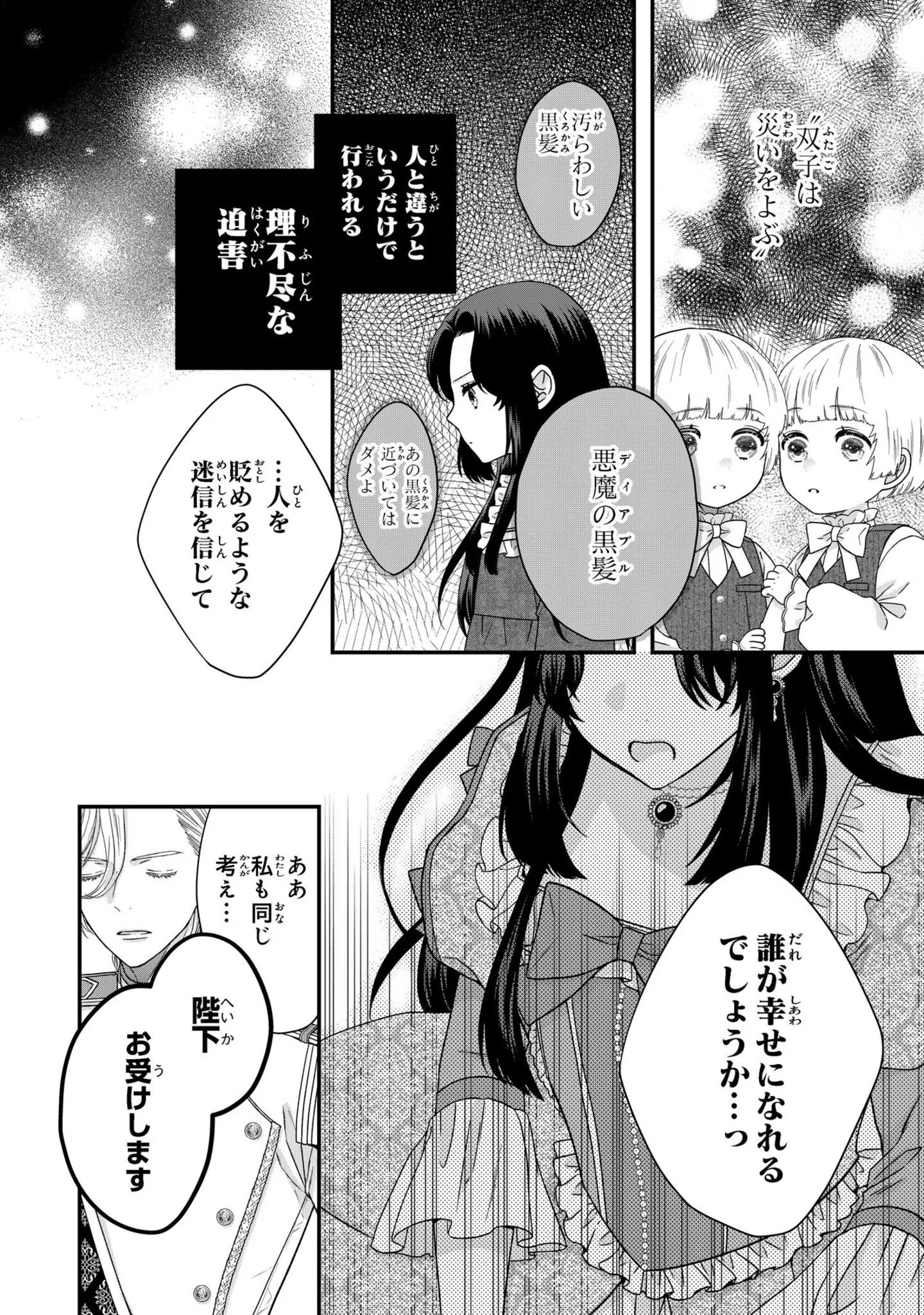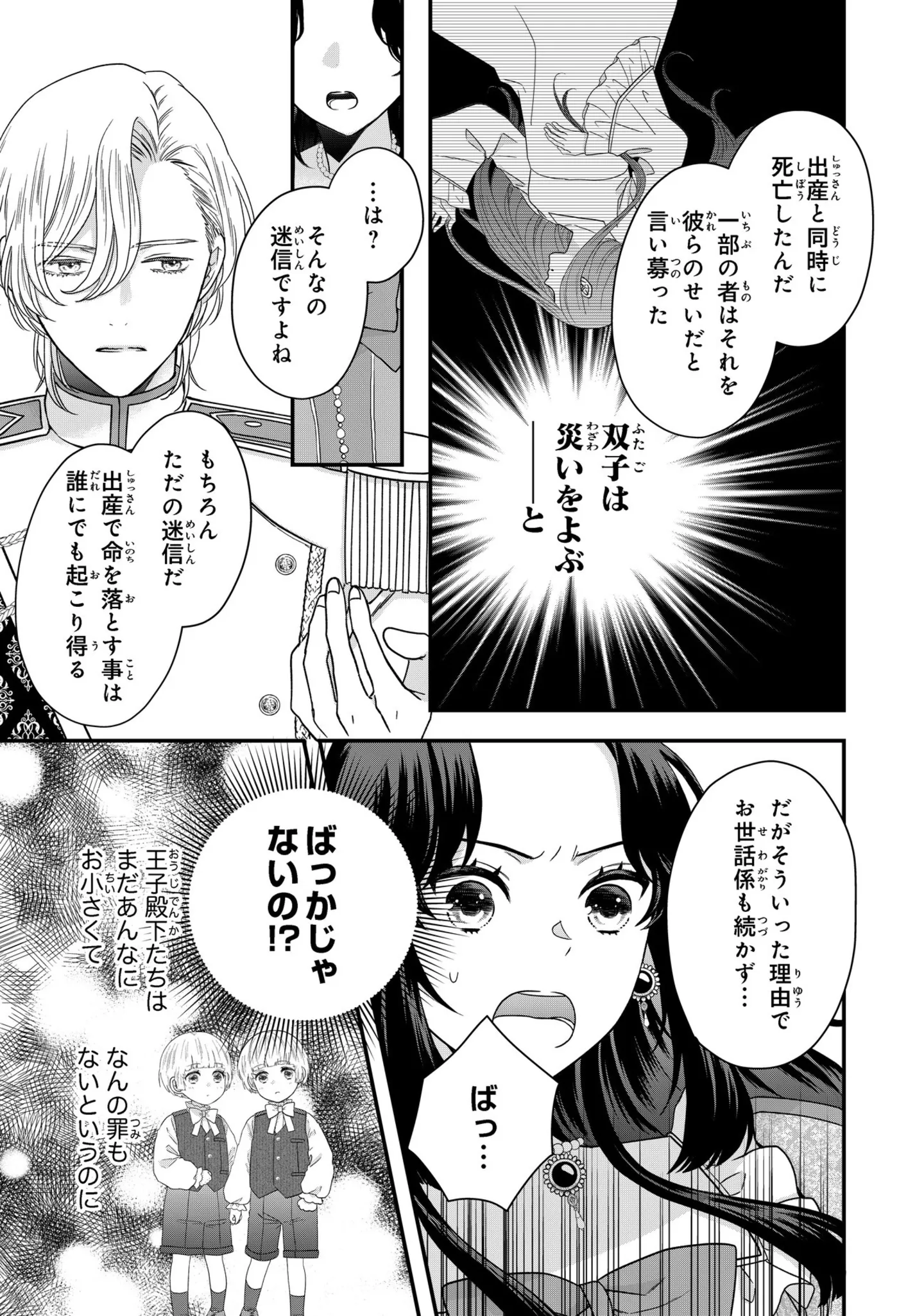 自分のような苦しみを双子に感じてほしくない! 嫌われ令嬢の想いと国王の思惑/双子王子の継母になりまして⑧ マンガ 公開日:2026/1/27 この連載を最初から読む→ 本作品をAmazon(電子)で読む > 本作品をRenta!で読む > >> 次のページに続く « 1 2 3 > あわせて読みたい 【漫画】『双子王子の継母になりまして~嫌われ悪女ですが、そんなことより義息子たちが可愛すぎて困ります~』を第1回から読む “悪魔”と迫害されてきた令嬢が、王子と結婚して双子の継母に!? 可愛さと優しさにほっこり心温まる、異世界子育てファンタジー! 【漫画】『推しがとなりで寝てまして』を第1回から読む 【漫画】『勤労ロードショー 今日も財布がさみしくて』を読む 【漫画】『わたし、迷子のお母さん ある日突然、母親するのが苦しくなった』を読む 最新マンガと話題の書籍を無料で試し読み! 前の回 一覧 人気の連載 次の回 双子王子の継母になりまして~嫌われ悪女ですが、そんなことより義息子たちが可愛すぎて困ります~1巻 (Berry's COMICS) 双子王子の継母になりまして~嫌われ悪女ですが、そんなことより義息子たちが可愛すぎて困ります~2巻 (Berry's COMICS)