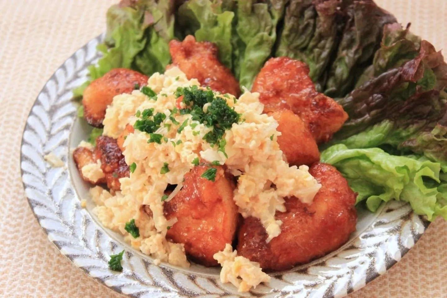 「甘辛チキン 豆腐タルタル添え」