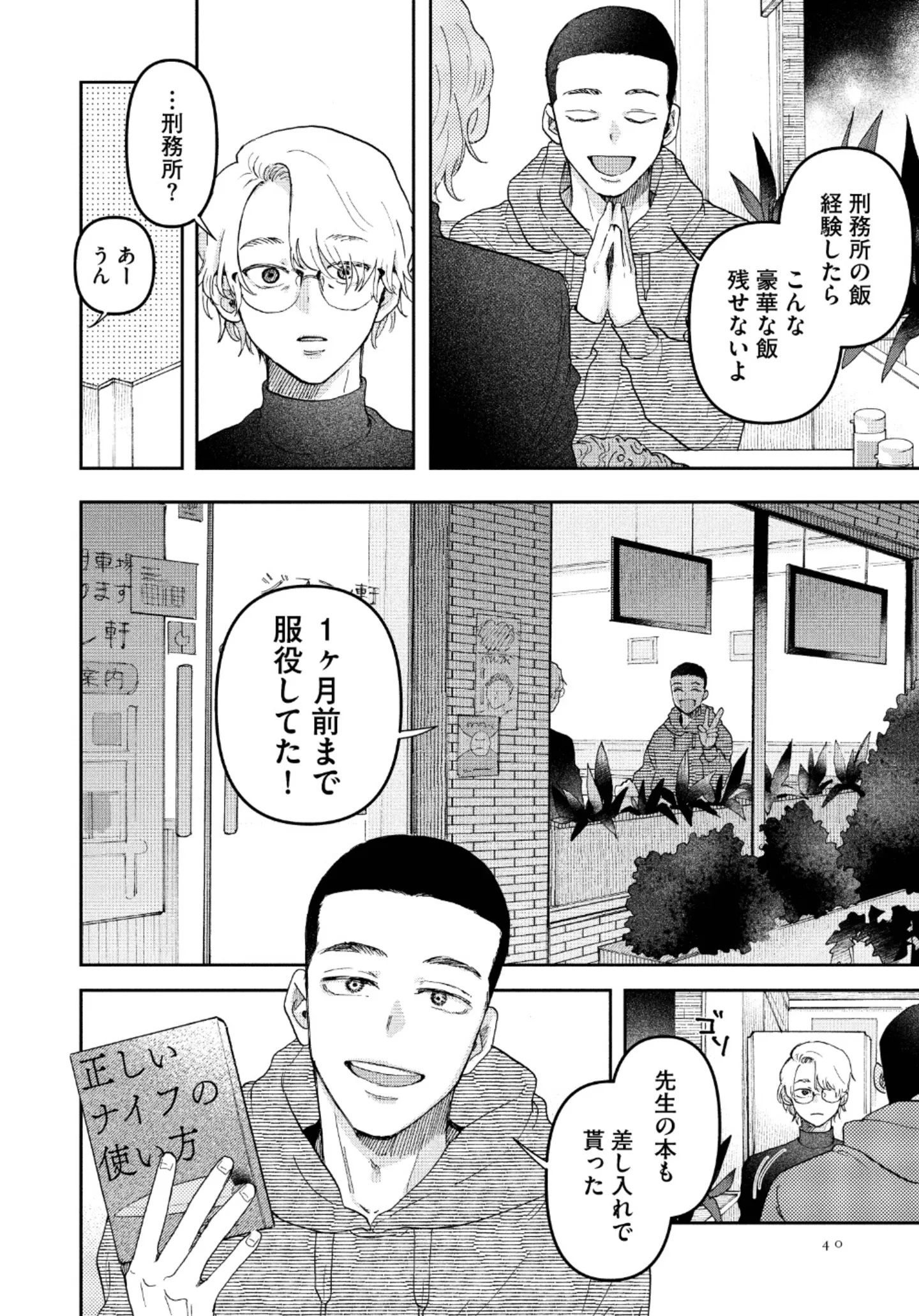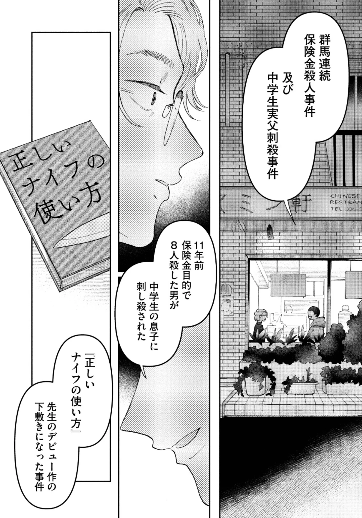 なぜか小説家に付きまとう風変わりな男。服役していたと語る男の罪状は…/正しいナイフの使い方⑤ マンガ 公開日:2026/1/13 この連載を最初から読む→ <第6回に続く> 本作品をAmazon(電子)で読む > 本作品をDMMブックスで読む > 本作品をBOOK☆WALKERで読む > « 1 2 3 あわせて読みたい 【漫画】『正しいナイフの使い方』を第1回から読む 【漫画】『ちっちゃくてかわいいワタシ 痛すぎる勘違い女の正体』を読む 【漫画】『消せない「私」~炎上しつづけるデジタルタトゥー~』を読む 最新マンガと話題の書籍を無料で試し読み! 前の回 一覧 人気の連載 次の回 正しいナイフの使い方 1 (ビームコミックス) 試し読み *電子書籍ストアBOOK☆WALKERへ移動します
