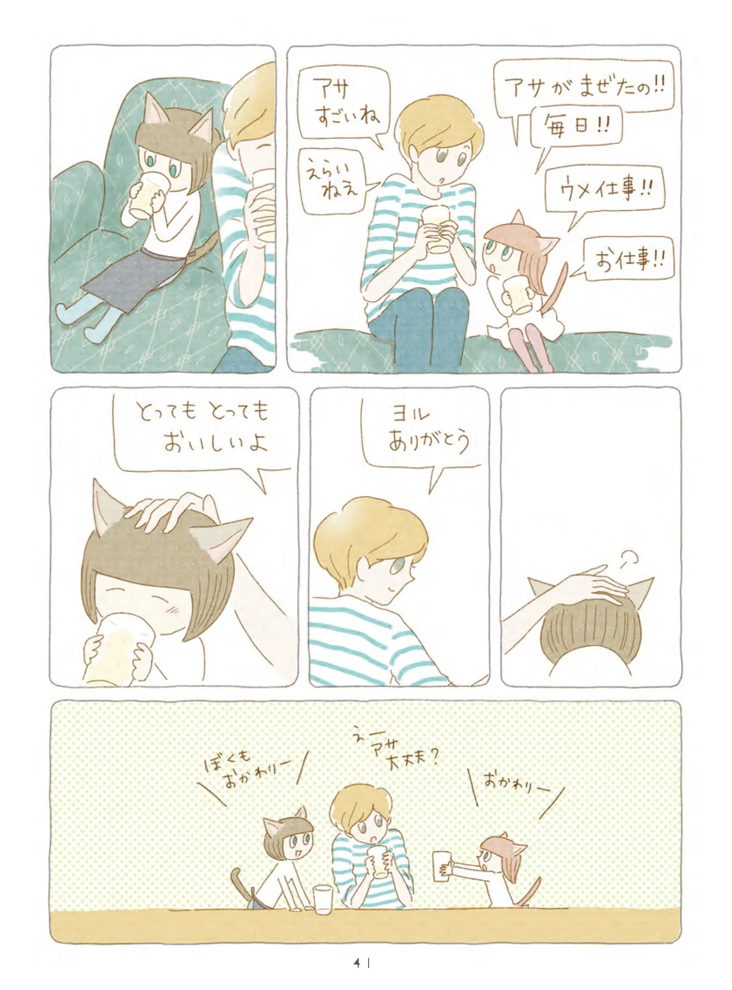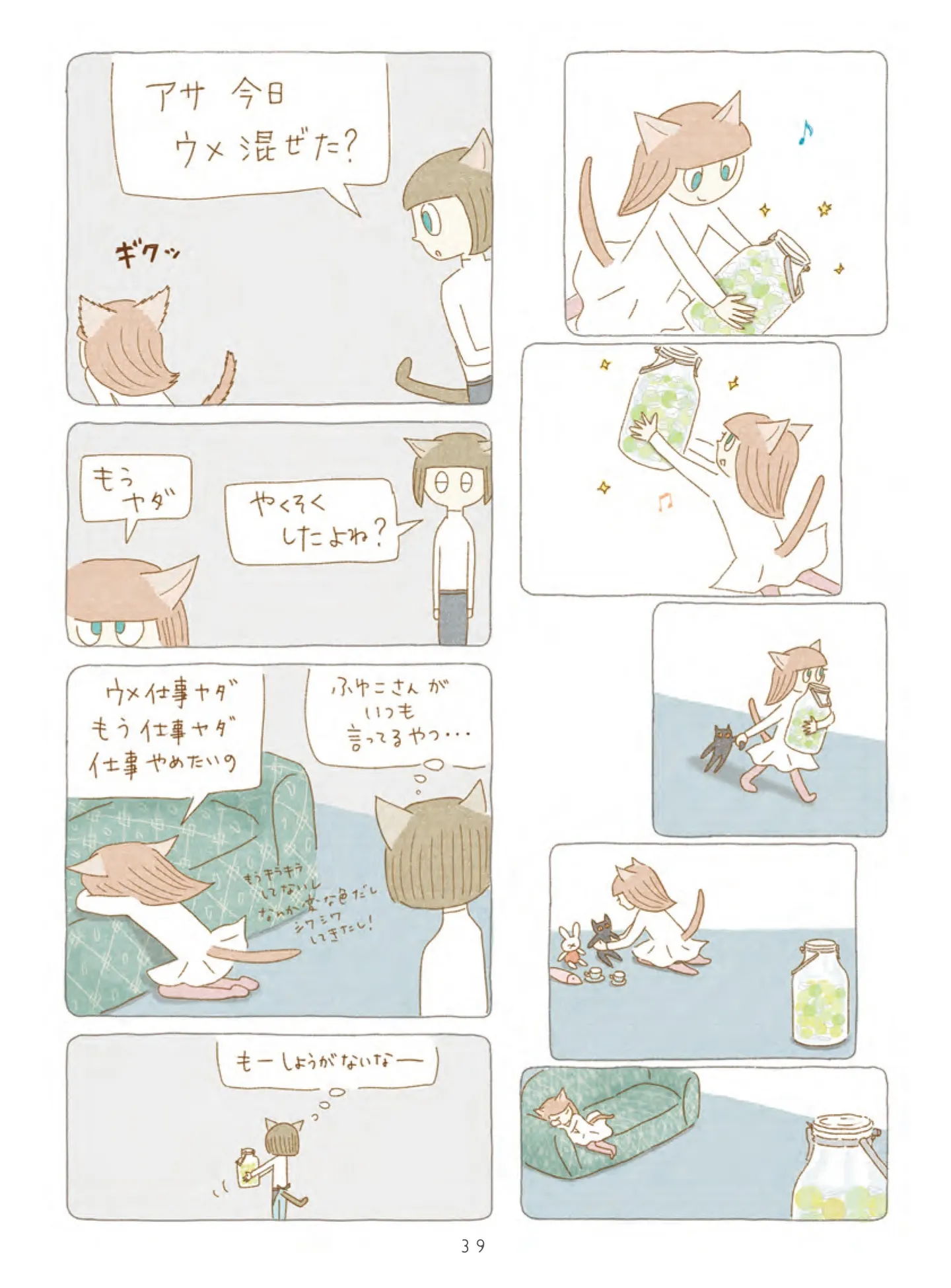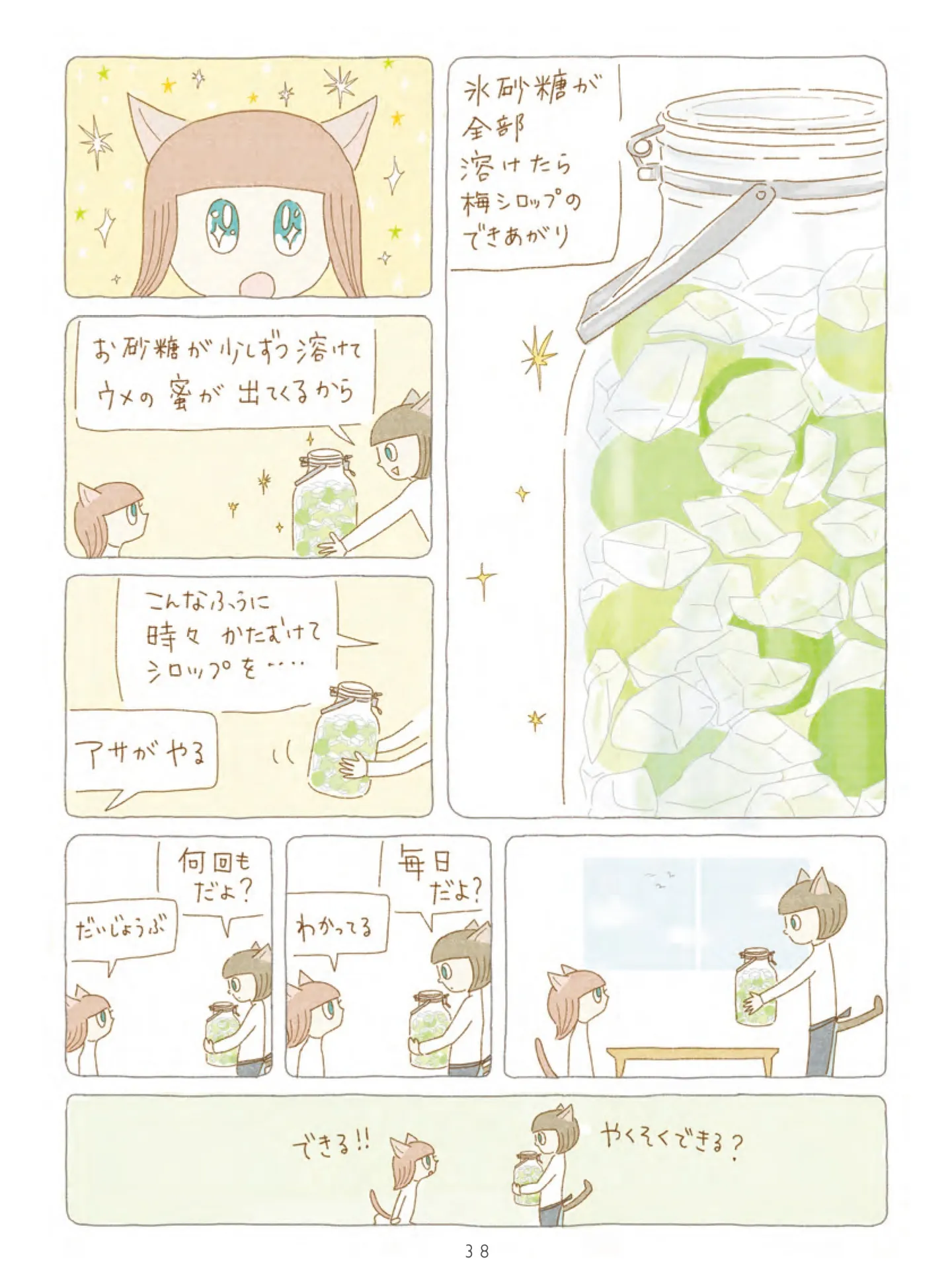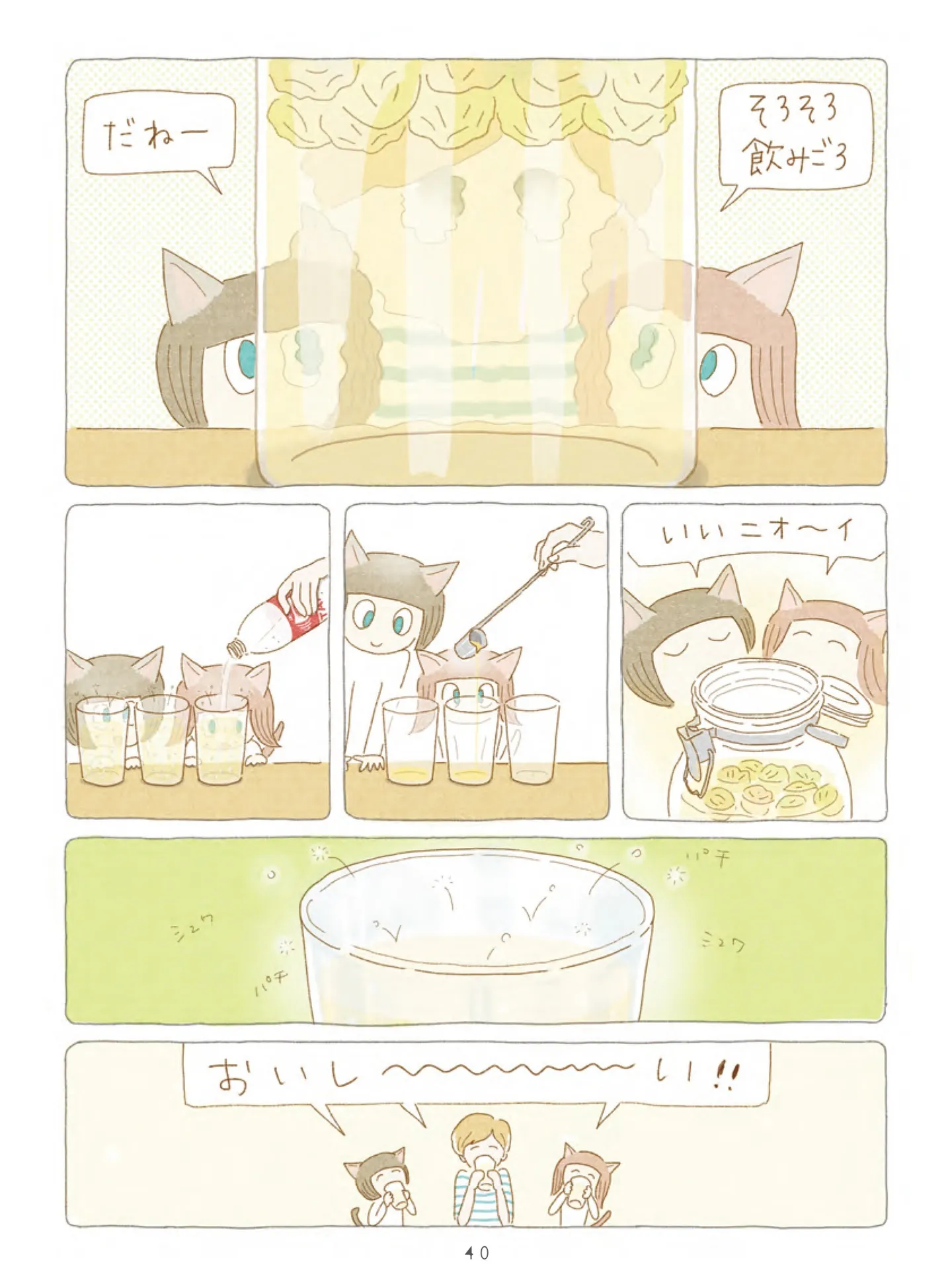 瓶をゆすって梅とシロップを混ぜ、毎日お世話をしたら… きれいな黄金色のシロップに【ヨルとアサの梅ジュース】/夜が明けるとき猫がそばにいれば マンガ 公開日:2026/1/20 この連載を最初から読む→ <続きは本書でお楽しみください> 本作品をAmazon(電子)で読む > 本作品をRenta!で読む > 本作品をBOOK☆WALKERで読む > « 1 2 あわせて読みたい 【漫画】『夜が明けるとき猫がそばにいれば』を第1回から読む 2匹の猫と過ごす、ちょっと不思議で愛おしい日々。季節の移ろいを感じる、癒やしの猫ファンタジー 【漫画】『鬼の花嫁』を第1回から読む 【漫画】『黒猫ろんと暮らしたら』を読む 【漫画】『夜は猫といっしょ』を読む 最新マンガと話題の書籍を無料で試し読み! 前の回 一覧 人気の連載 次の回 夜が明けるとき猫がそばにいれば (OZcomics) 試し読み *電子書籍ストアBOOK☆WALKERへ移動します