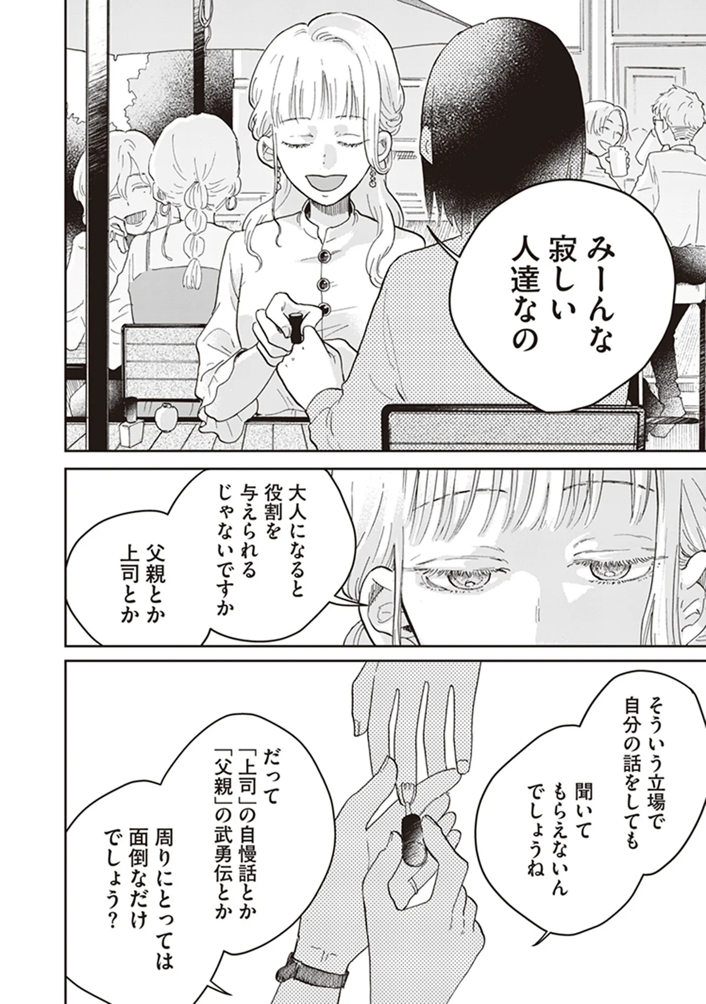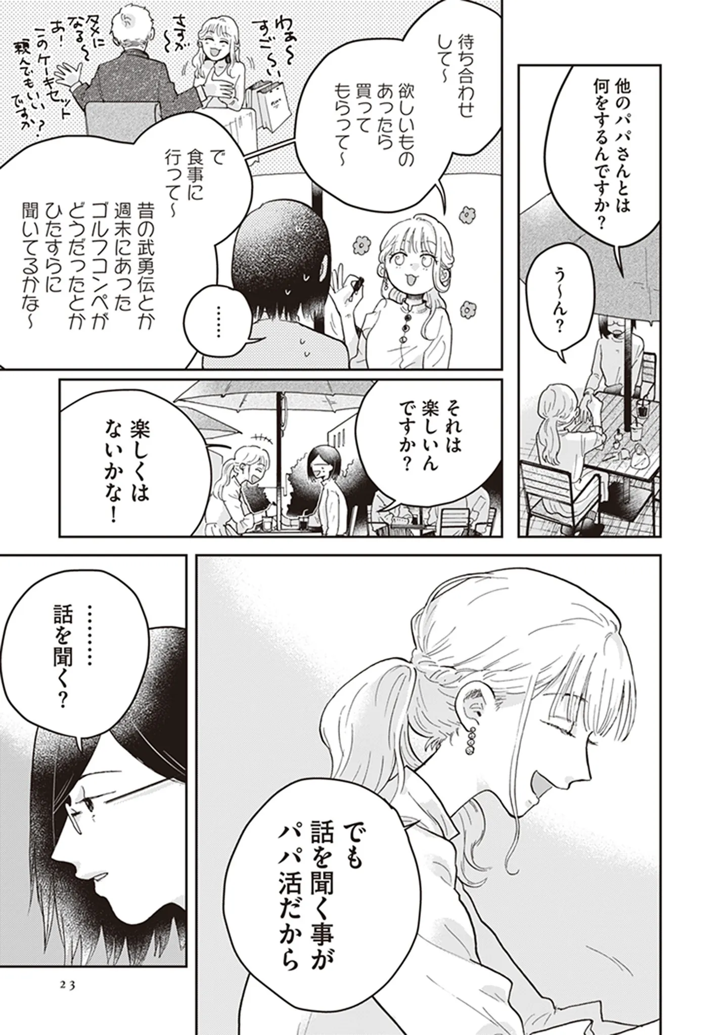 パパ活を利用するのは寂しいから? パパ活女子は“話を聞くこと”も大事な要素/マーブルビターチョコレート③ マンガ 公開日:2026/1/19 この連載を最初から読む→ <第4回に続く> 本作品をAmazon(電子)で読む > 本作品をRenta!で読む > 本作品をebookjapanで読む > 本作品をBOOK☆WALKERで読む > « 1 2 3 あわせて読みたい 【漫画】『マーブルビターチョコレート』を第1回から読む 【漫画】『妻が別れを告げる時』を読む 【漫画】『正しいナイフの使い方』を読む 【漫画】『クラスで2番目に可愛い女の子と友だちになった 』を読む 【漫画】『星屑家族』を読む 最新マンガと話題の書籍を無料で試し読み! 前の回 一覧 人気の連載 次の回 マーブルビターチョコレート (ビームコミックス) 試し読み *電子書籍ストアBOOK☆WALKERへ移動します