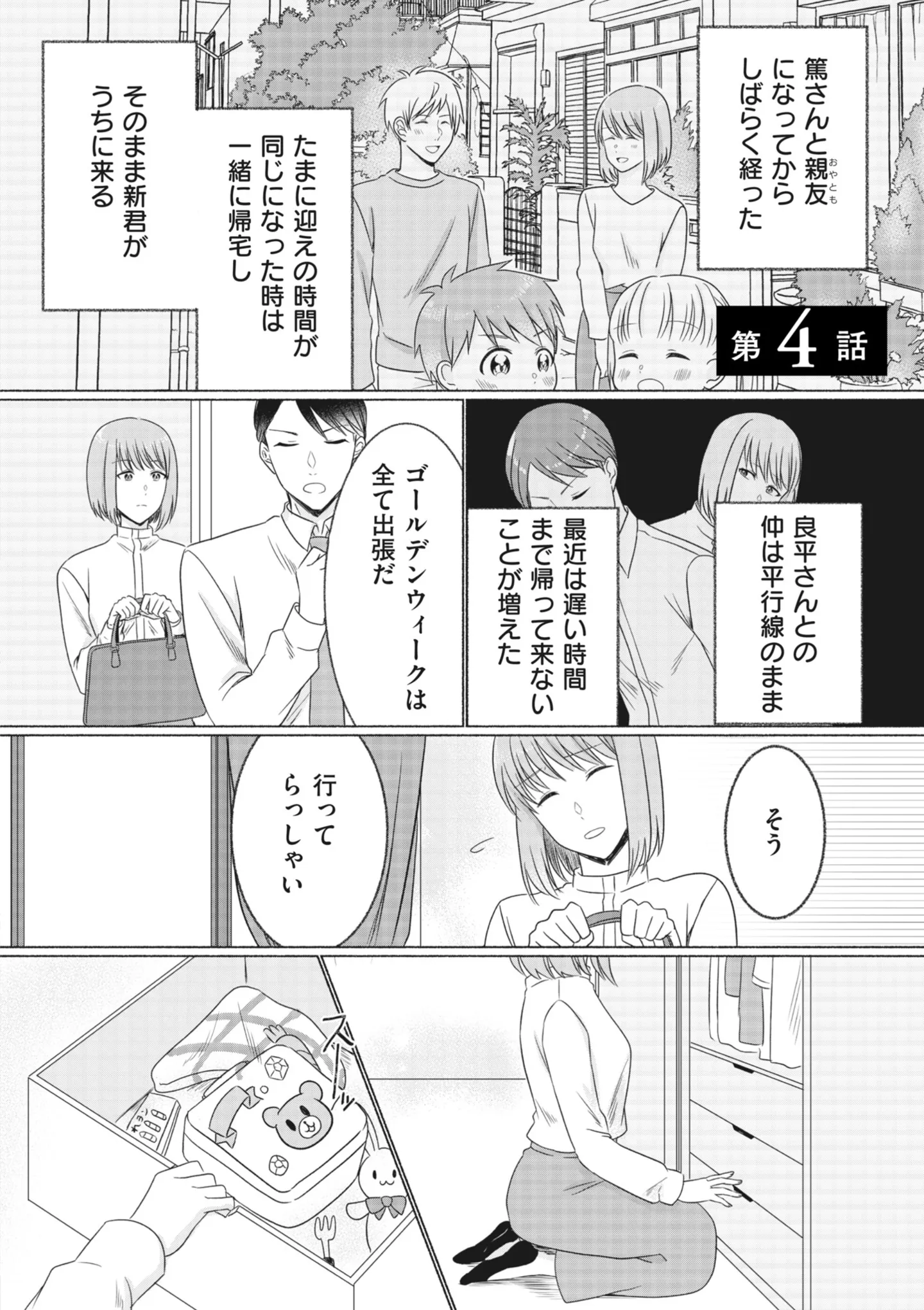 夫の不倫には気づかぬふりで夫婦仲は平行線。そんななか、お隣の子どもを預かることに/計画離婚⑤