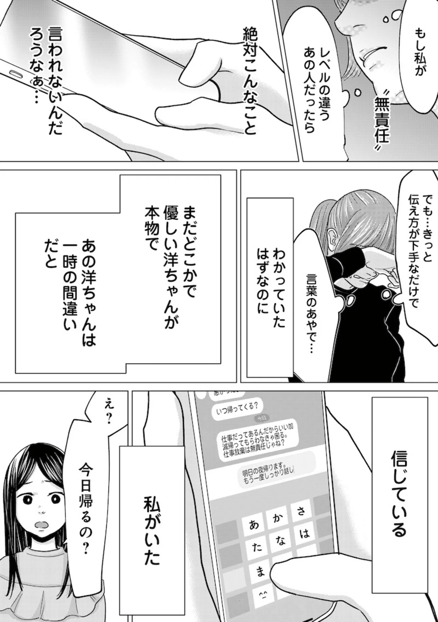 夫からの暴力未遂で娘と実家へ。夫の優しさを信じたい妻の葛藤/パパ、浮気してるよ?⑧ マンガ 公開日:2026/1/3 この連載を最初から読む→ <第9回に続く> 本作品をAmazon(電子)で読む > 本作品をRenta!で読む > 本作品をebookjapanで読む > 本作品をBOOK☆WALKERで読む > « 1 2 あわせて読みたい 【漫画】『パパ、浮気してるよ? 娘と二人でクズ夫を捨てます』を第1回から読む 【漫画】『旦那がマッチングアプリでやりとりしてる相手は嫁です』を読む 【漫画】『勤労ロードショー 今日も財布がさみしくて』を読む 最新マンガと話題の書籍を無料で試し読み! 前の回 一覧 人気の連載 次の回 パパ、浮気してるよ?娘と二人でクズ夫を捨てます (LScomic) パパ、浮気してるよ?娘と二人でクズ夫を捨てます21 (LScomic)