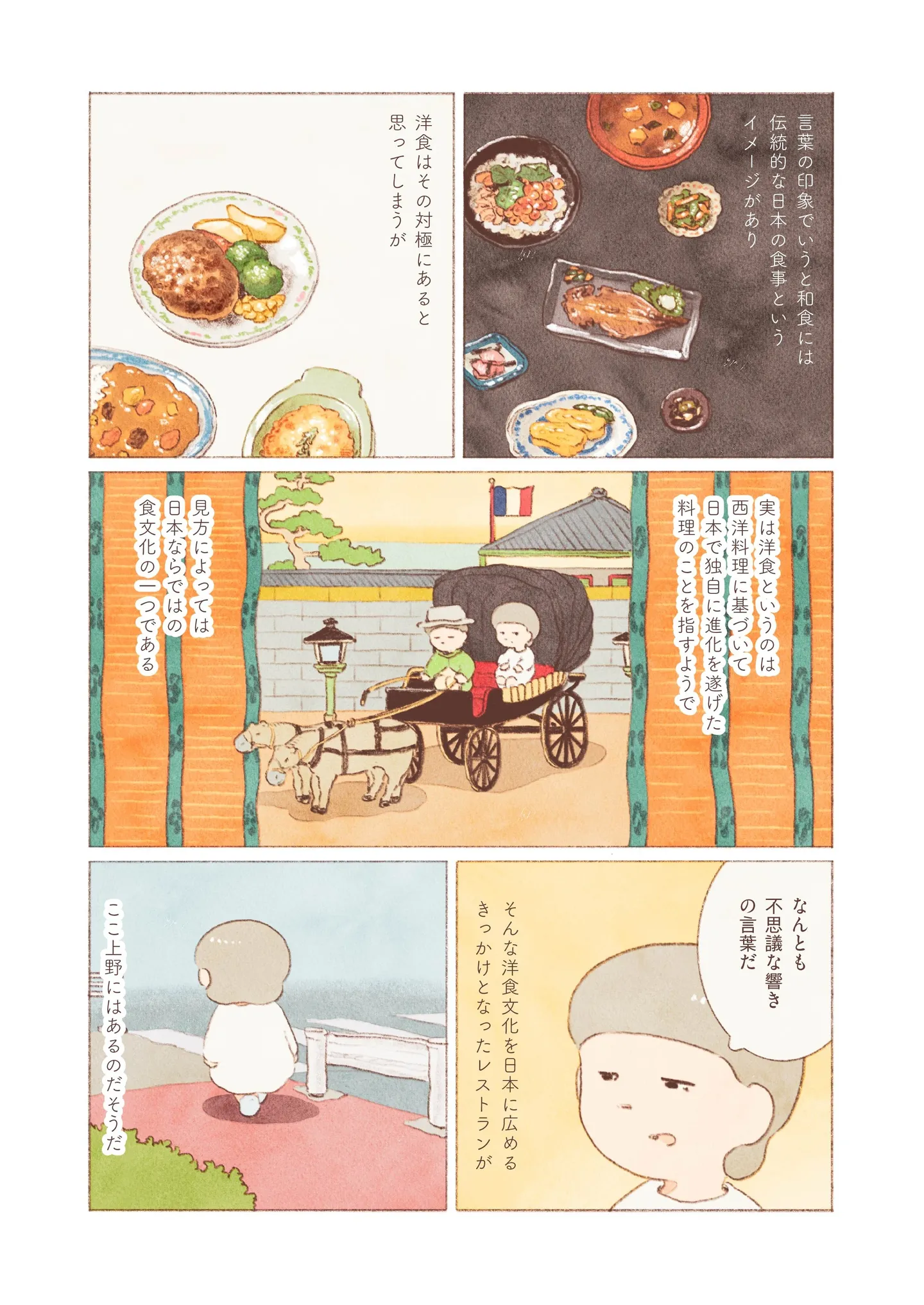 上野にある老舗西洋料理店。レストランで、オムハヤシとパンを味わう/ほっつき食べ通信~偶然入ったお店でひとり飯~⑧ マンガ 公開日:2026/1/8 この連載を最初から読む→ 『おばけのおいしいひと休み』の作者・のもとしゅうへい(@shuunomo)さんによるオリジナル連載。ほっつき歩いている内に偶然見つけたお店で食べた、心もお腹も温まるおいしいご飯を紹介します。 【30日間無料】Amazonの読み放題をチェック > >> 次のページに続く 1 2 3 > あわせて読みたい 東中野駅で出会った洋食屋で夜ご飯。見たことない名前の料理を頼んでみると/ほっつき食べ通信~偶然入ったお店でひとり飯~① 上野で見つけたあんみつ屋。涼しげな抹茶アイスのあんみつに、ツヤツヤ白玉をトッピング/ほっつき食べ通信~偶然入ったお店でひとり飯~⑤ 渋谷・宮益坂にある喫茶店でひと休み。美しい器で、珈琲とシフォンケーキを満喫/ほっつき食べ通信~偶然入ったお店でひとり飯~④ 馬車道通りで見つけた紅茶専門店。オムライスとミルクティーを味わう至福の時間/ほっつき食べ通信~偶然入ったお店でひとり飯~③ 江ノ電・長谷駅の喫茶店へ。挽き立てのインドネシア珈琲と自家製レモンケーキを堪能/ほっつき食べ通信~偶然入ったお店でひとり飯~② 最新マンガと話題の書籍を無料で試し読み! 前の回 一覧 人気の連載 次の回