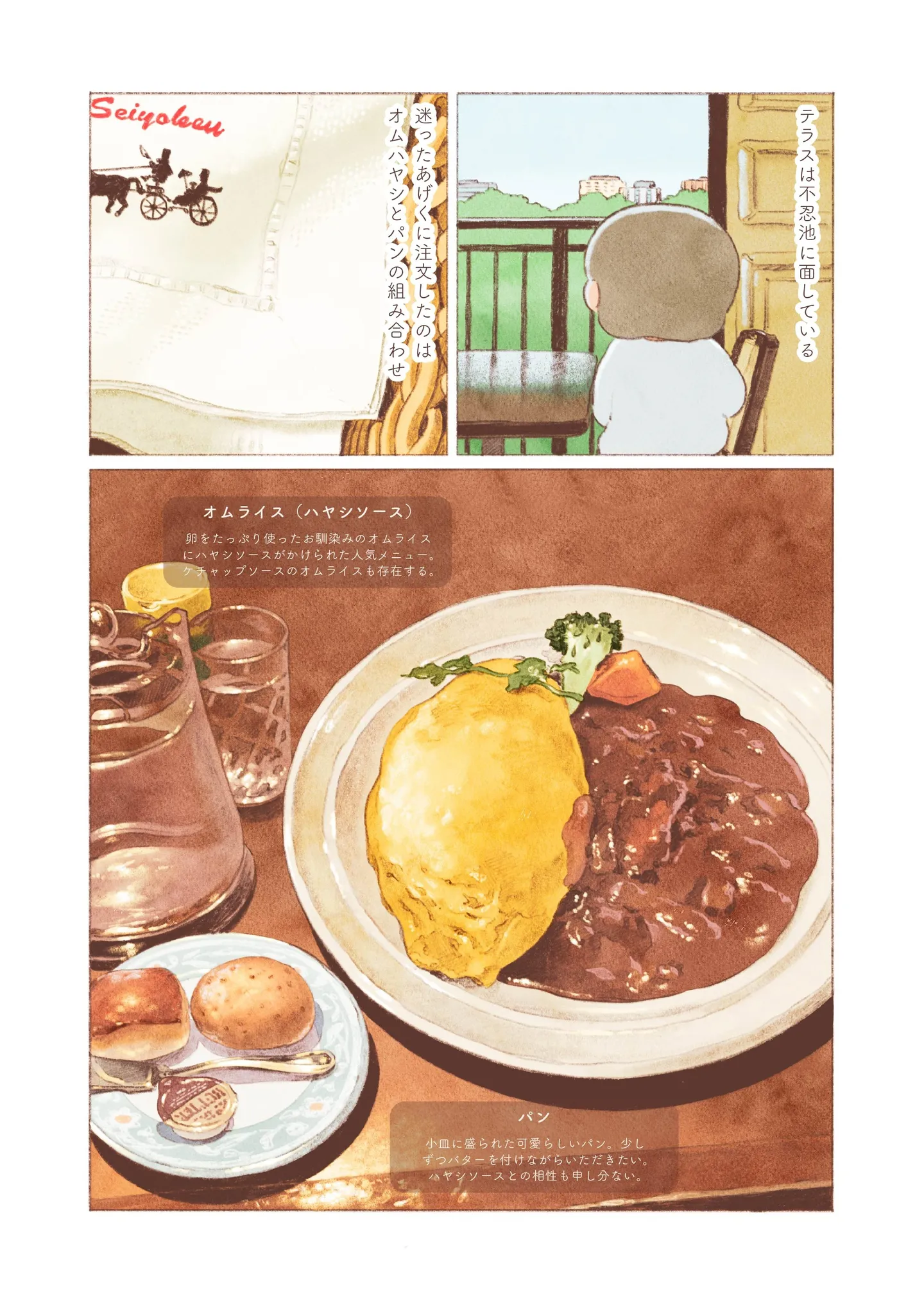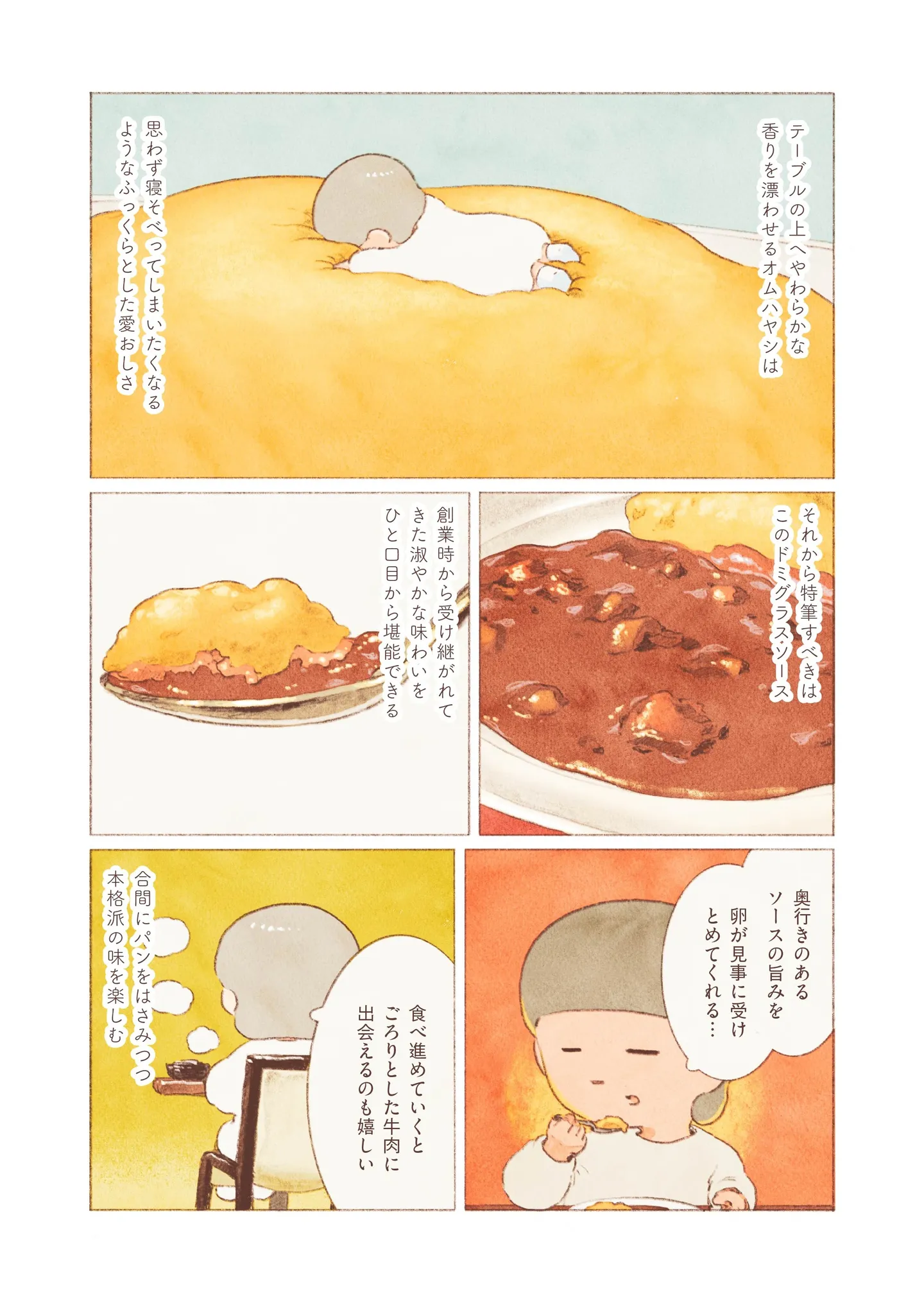 上野にある老舗西洋料理店。レストランで、オムハヤシとパンを味わう/ほっつき食べ通信~偶然入ったお店でひとり飯~⑧ マンガ 公開日:2026/1/8 この連載を最初から読む→ >> 次のページに続く « 1 2 3 > あわせて読みたい 東中野駅で出会った洋食屋で夜ご飯。見たことない名前の料理を頼んでみると/ほっつき食べ通信~偶然入ったお店でひとり飯~① 上野で見つけたあんみつ屋。涼しげな抹茶アイスのあんみつに、ツヤツヤ白玉をトッピング/ほっつき食べ通信~偶然入ったお店でひとり飯~⑤ 渋谷・宮益坂にある喫茶店でひと休み。美しい器で、珈琲とシフォンケーキを満喫/ほっつき食べ通信~偶然入ったお店でひとり飯~④ 馬車道通りで見つけた紅茶専門店。オムライスとミルクティーを味わう至福の時間/ほっつき食べ通信~偶然入ったお店でひとり飯~③ 江ノ電・長谷駅の喫茶店へ。挽き立てのインドネシア珈琲と自家製レモンケーキを堪能/ほっつき食べ通信~偶然入ったお店でひとり飯~② 最新マンガと話題の書籍を無料で試し読み! 前の回 一覧 人気の連載 次の回