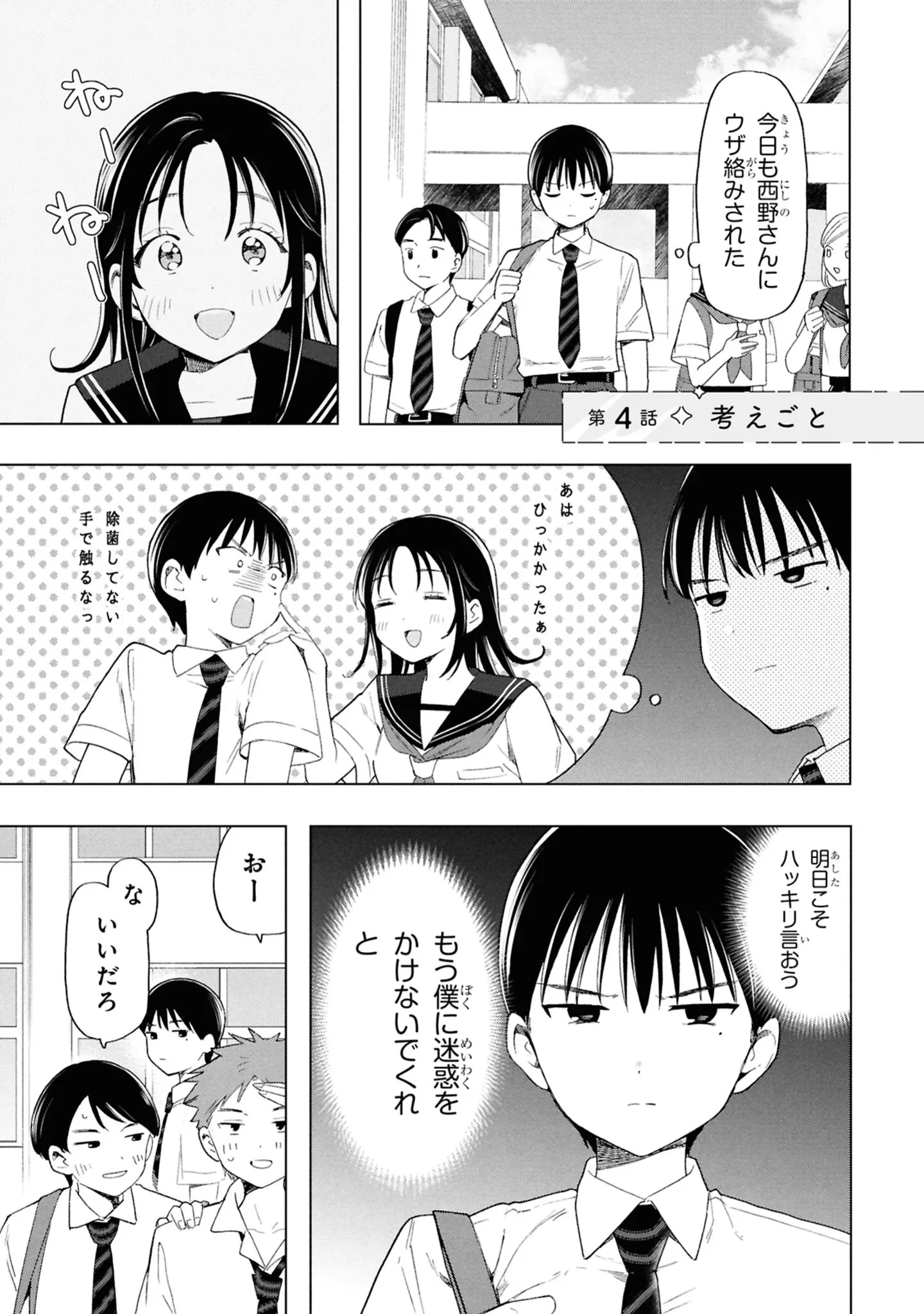 触れたくない。でも、君になら――。潔癖をこじらせた高校生・中山は、自分だけのキレイな世界を守るため、細心の注意を払いながら高校生活を過ごしていた。しかし、やたらと距離が近い隣の席の西野さんがお構いなしに絡んできて…? 煩わしいはずなのに、気づけば心がざわついてしまう――。潔癖こじらせ男子×天真爛漫女子の、胸いっぱいの青春ラブコメディ『落ちない汚れを僕は何と呼べばよかったのか』をお届けします。第6回~第11回は2月末までの特別限定公開! ぜひこの機会にお楽しみください!