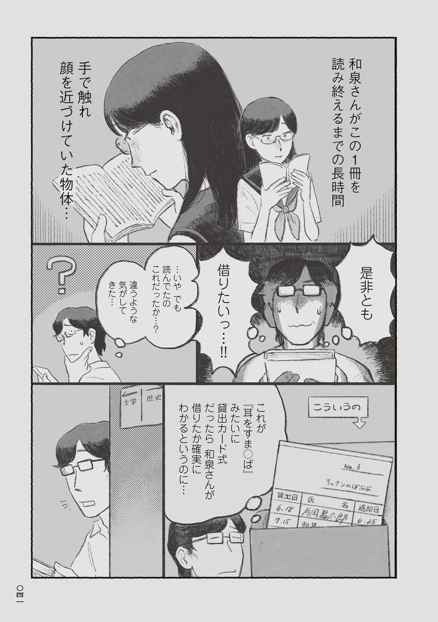 彼女が触れた本を借りたい! 図書室でバレないようにその本を狙い…成功なるか!?/嶋田と和泉⑥ マンガ 公開日:2026/1/15 この連載を最初から読む→ 本作品をAmazon(電子)で読む > 本作品をRenta!で読む > >> 次のページに続く « 1 2 3 > あわせて読みたい 【漫画】『嶋田と和泉』を第1回から読む 【漫画】『グランプリは私ですけど何か?~自己肯定モンスターのミスコン無双~』を読む 【漫画】『あの花が咲く丘で、君とまた出会えたら。』を読む 最新マンガと話題の書籍を無料で試し読み! 前の回 一覧 人気の連載 次の回 嶋田と和泉 (ビームコミックス) 試し読み *電子書籍ストアBOOK☆WALKERへ移動します