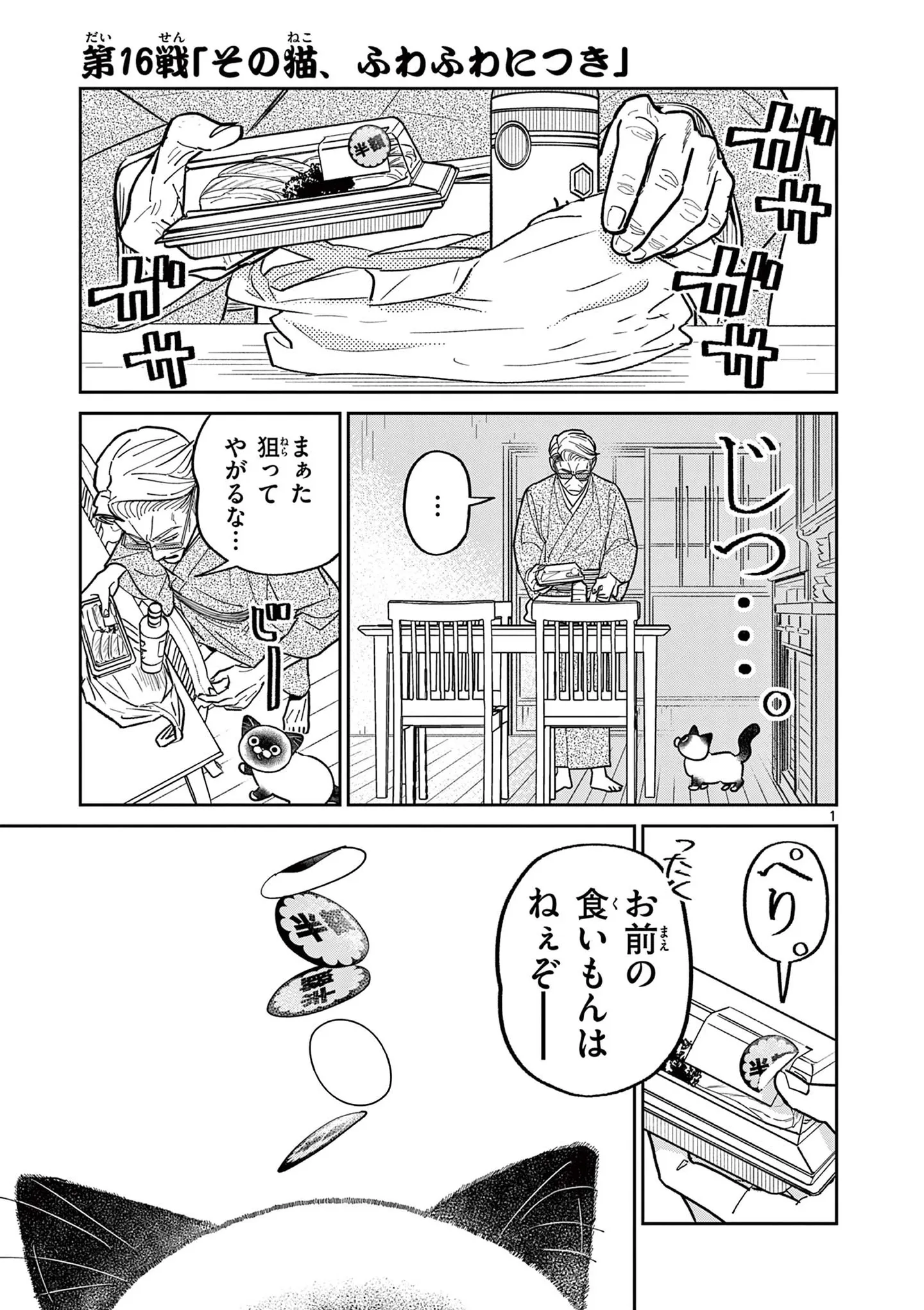 猫の額に半額シールが―取りたい男と避けたい猫、両者の攻防戦がはじまる/オヤジとにゃん吉⑯