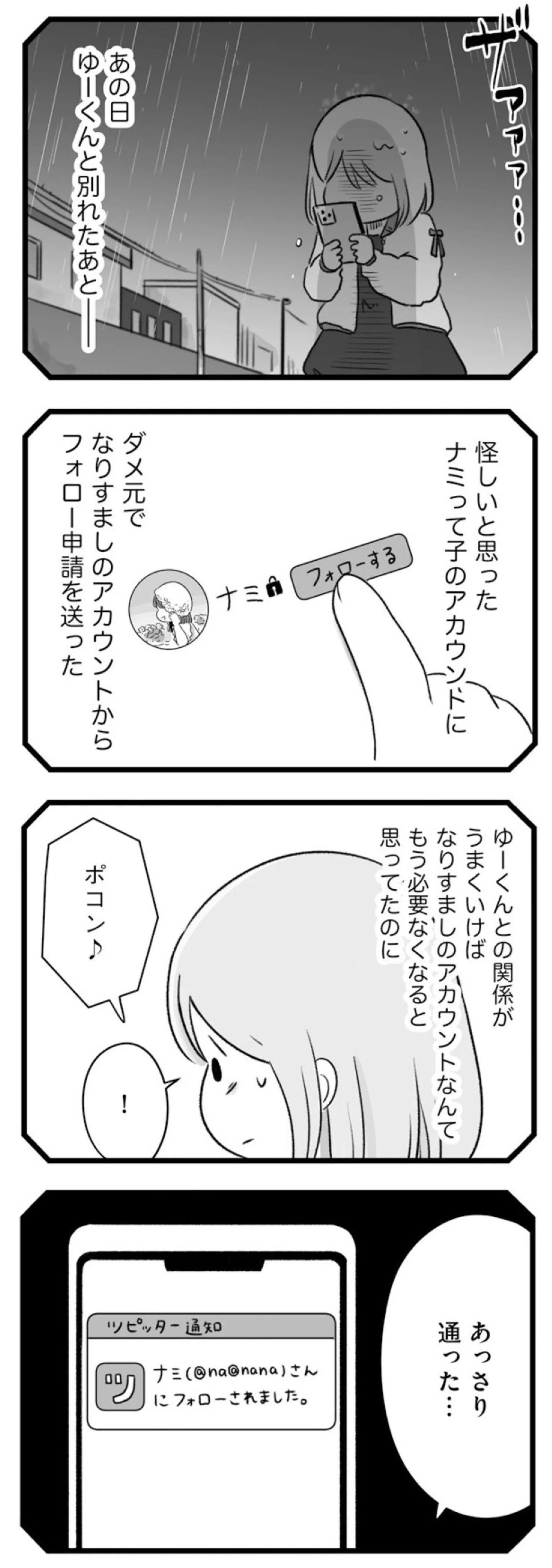 彼から突然別れを告げられ、裏アカ監視の毎日…。歪んでいく愛が執着へと変わっていく過程をリアルに描いたコミックエッセイ【書評】 252枚目/全269枚