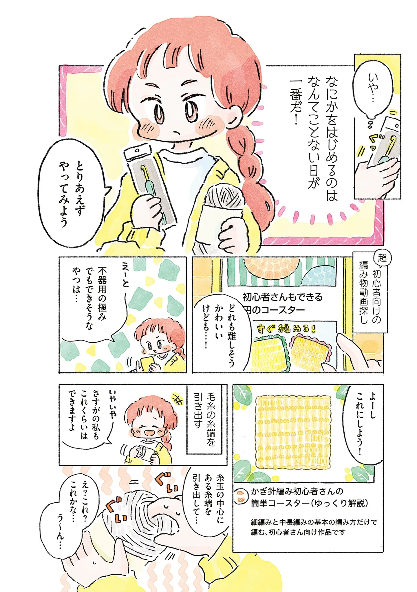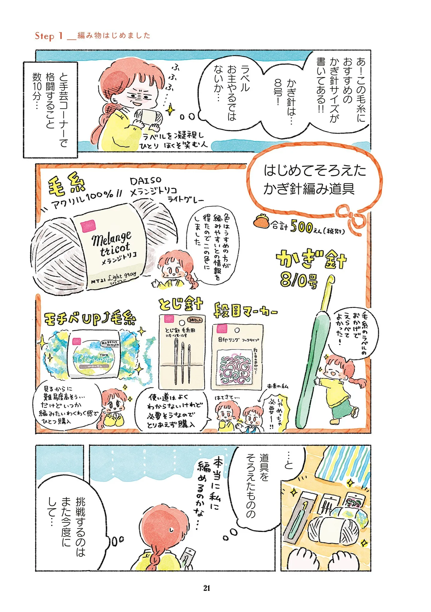 最初はアクリル毛糸がおすすめ! 編み物初心者が初めてそろえた、かぎ針編み道具/あめばあむほど好きになる マンガ 公開日:2026/1/22 この連載を最初から読む→ <第3回に続く> 本作品をAmazon(電子)で読む > 本作品をRenta!で読む > 本作品をebookjapanで読む > 本作品をBOOK☆WALKERで読む > « 1 2 あわせて読みたい 【漫画】『あめばあむほど好きになる かぎ針編みはじめました』を第1回から読む 【漫画】『マウンティングママ友が、全てを失った話』を読む 【漫画】『痔だと思ったら大腸がんステージ4でした 標準治療を旅と漫画で乗り越えてなんとか経過観察になるまで』を読む 【漫画】『策略女を許さない 職場のヤバイ女が自滅するまで』を読む 【漫画】『心曇る日は ご自愛ごはんを』を読む 最新マンガと話題の書籍を無料で試し読み! 前の回 一覧 人気の連載 次の回 あめばあむほど好きになる かぎ針編みはじめました (コミックエッセイ) 試し読み *電子書籍ストアBOOK☆WALKERへ移動します