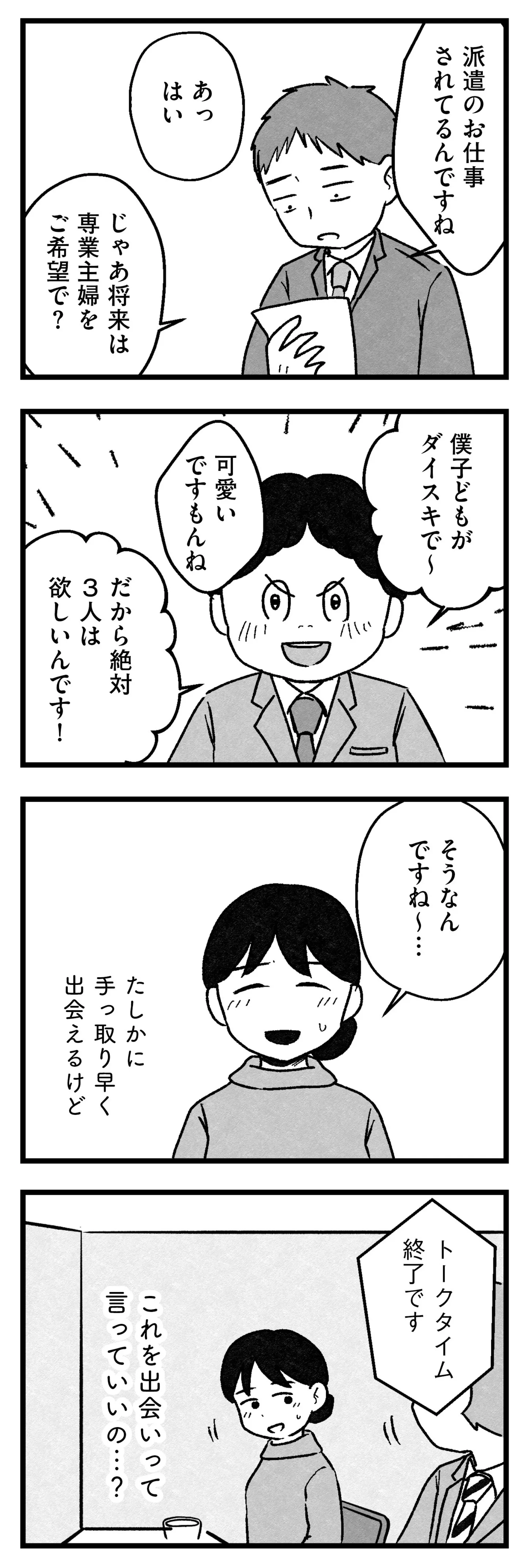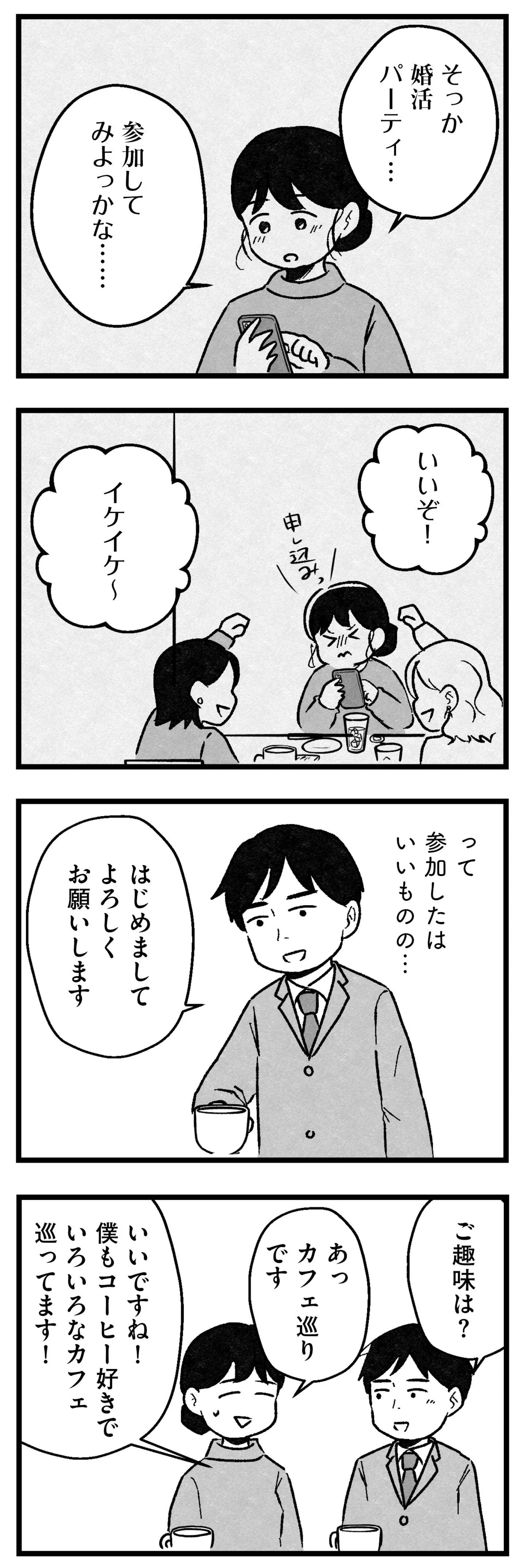 初めての婚活パーティー、5分だけの会話でどう選べば? 自分には合わないと落胆するが…/結婚さえできないわたし② マンガ 公開日:2026/1/21 この連載を最初から読む→ <第3回に続く> 本作品をAmazon(電子)で読む > 本作品をRenta!で読む > 本作品をebookjapanで読む > 本作品をBOOK☆WALKERで読む > « 1 2 3 あわせて読みたい 【漫画】『結婚さえできないわたし 29歳からの婚活地獄』を第1回から読む 【漫画】『痔だと思ったら大腸がんステージ4でした 標準治療を旅と漫画で乗り越えてなんとか経過観察になるまで』を読む 【漫画】『パパ、赤ちゃんが生まれないなら再婚してもいいよ』を読む 最新マンガと話題の書籍を無料で試し読み! 前の回 一覧 人気の連載 次の回 結婚さえできないわたし 29歳からの婚活地獄 (コミックエッセイ) 試し読み *電子書籍ストアBOOK☆WALKERへ移動します