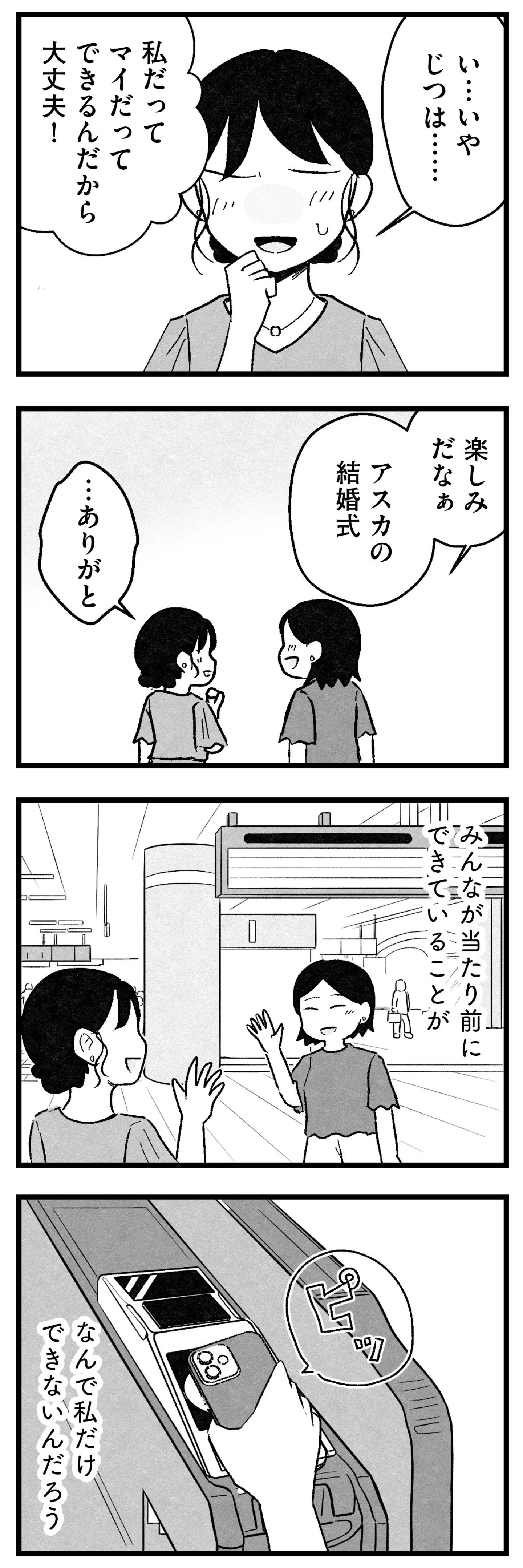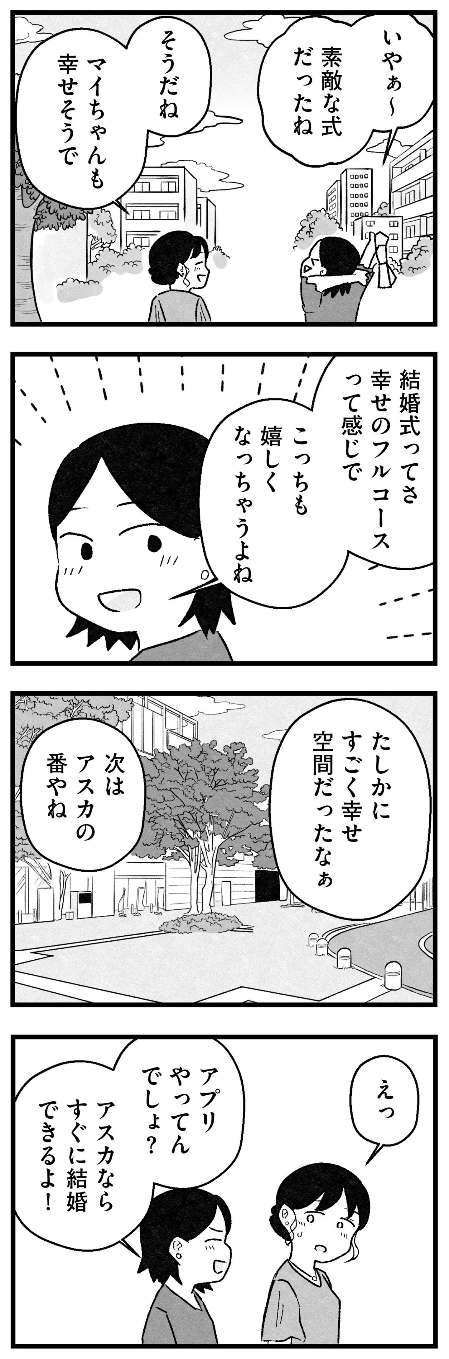 婚活はもうやめる。そう決めたのに…母や友人、周囲からの圧力に揺らぐ/結婚さえできないわたし⑥ マンガ 公開日:2026/1/25 この連載を最初から読む→ <第7回に続く> 本作品をAmazon(電子)で読む > 本作品をRenta!で読む > 本作品をebookjapanで読む > 本作品をBOOK☆WALKERで読む > « 1 2 3 あわせて読みたい 【漫画】『結婚さえできないわたし 29歳からの婚活地獄』を第1回から読む 【漫画】『グランプリは私ですけど何か?~自己肯定モンスターのミスコン無双~』を読む 【漫画】『マウンティングママ友が、全てを失った話』を読む 最新マンガと話題の書籍を無料で試し読み! 前の回 一覧 人気の連載 次の回 結婚さえできないわたし 29歳からの婚活地獄 (コミックエッセイ) 試し読み *電子書籍ストアBOOK☆WALKERへ移動します