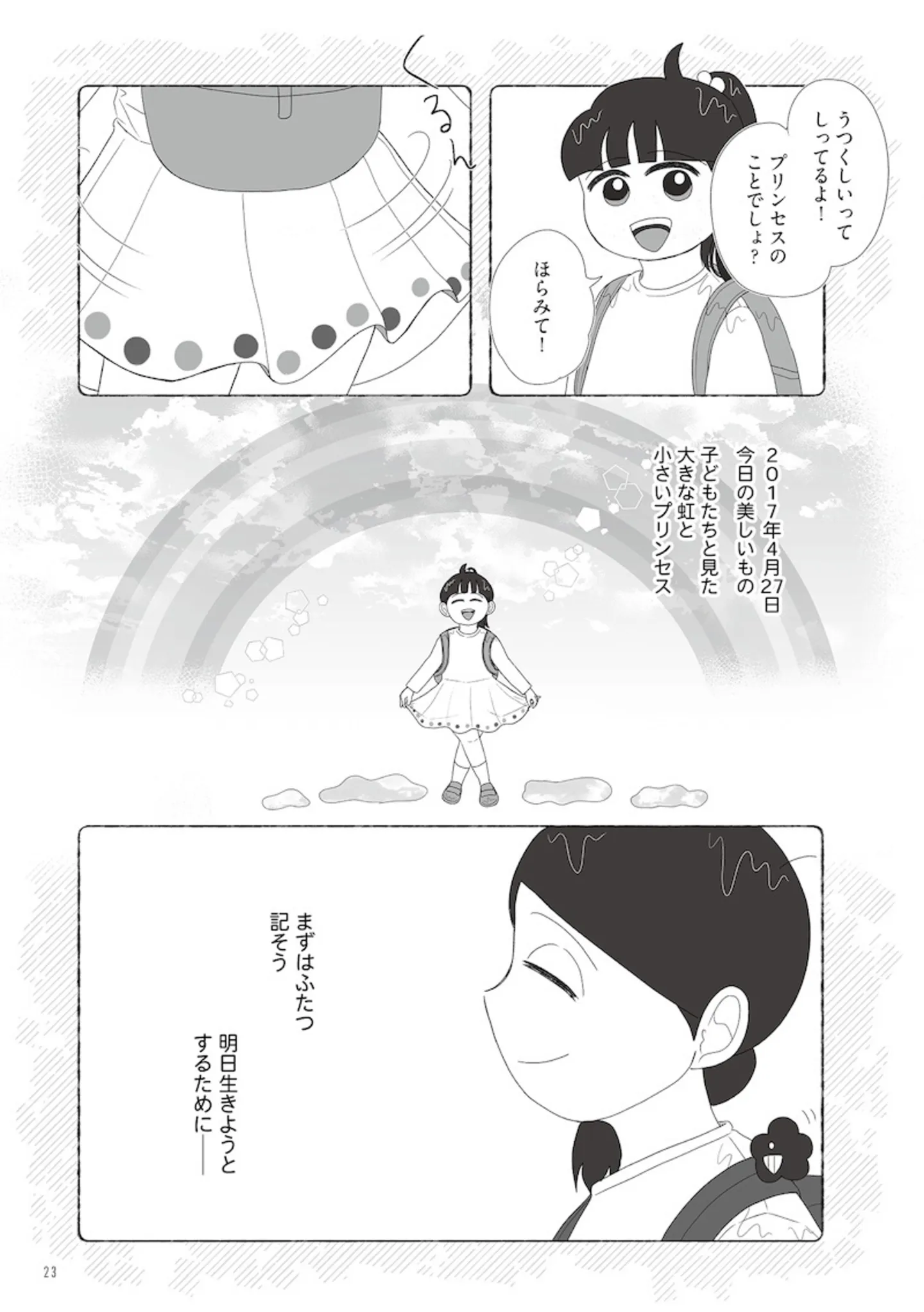 子どもと見た虹が明日への希望に。希死念慮を抱える漫画家が日記を始めた理由/死にたがりやさんの明日生きるため日記③ マンガ 公開日:2026/1/19 この連載を最初から読む→ <第4回に続く> 本作品をAmazon(電子)で読む > 本作品をebookjapanで読む > 本作品をブックライブで読む > 本作品をBOOK☆WALKERで読む > « 1 2 3 あわせて読みたい 【漫画】『死にたがりやさんの明日生きるため日記』を第1回から読む 【漫画】『消せない「私」~炎上しつづけるデジタルタトゥー~』を読む 【漫画】『妻が別れを告げる時』を読む 最新マンガと話題の書籍を無料で試し読み! 前の回 一覧 人気の連載 次の回 死にたがりやさんの明日生きるため日記【電子書籍限定版】 (はちみつコミックエッセイ) 試し読み *電子書籍ストアBOOK☆WALKERへ移動します