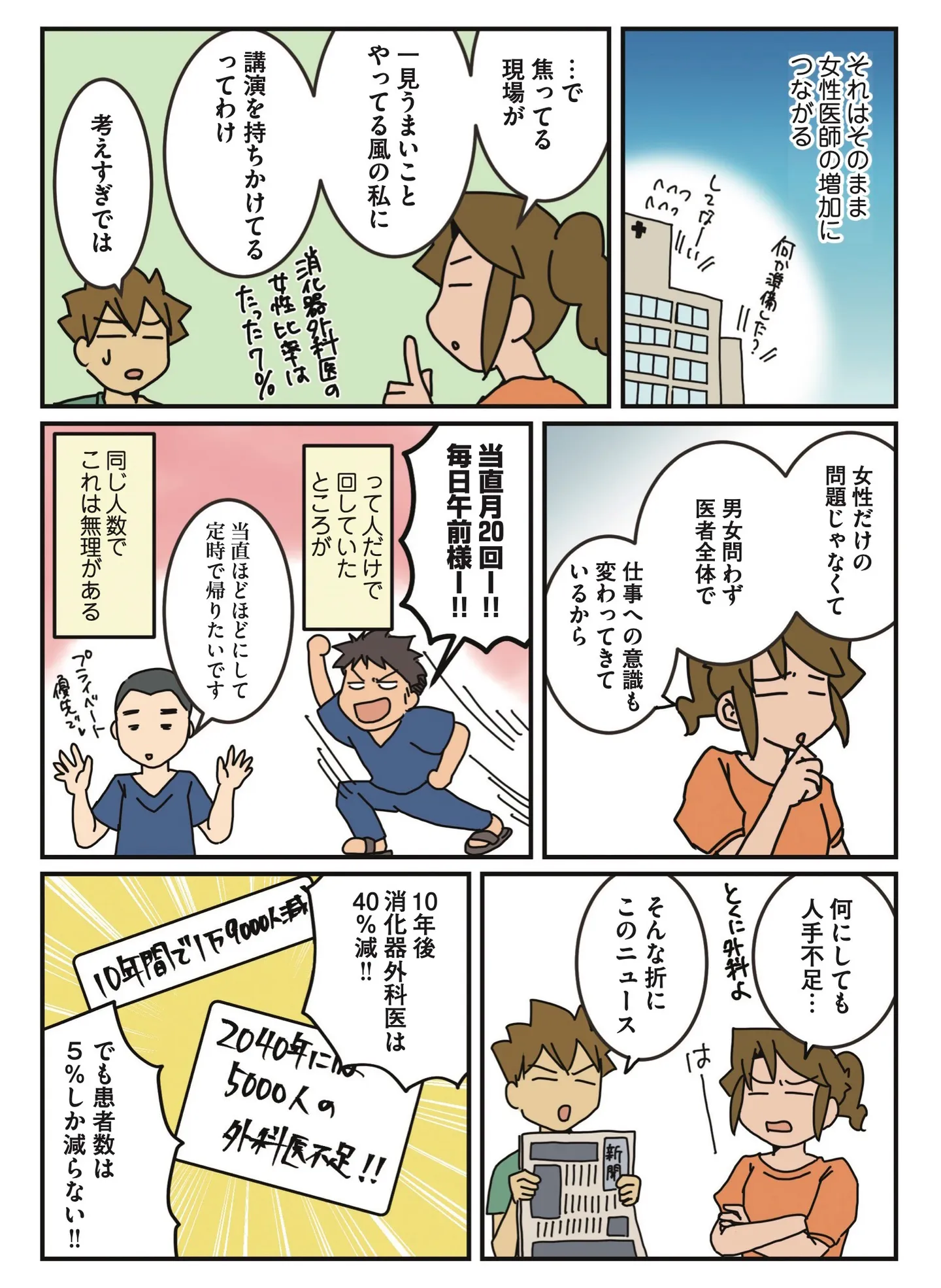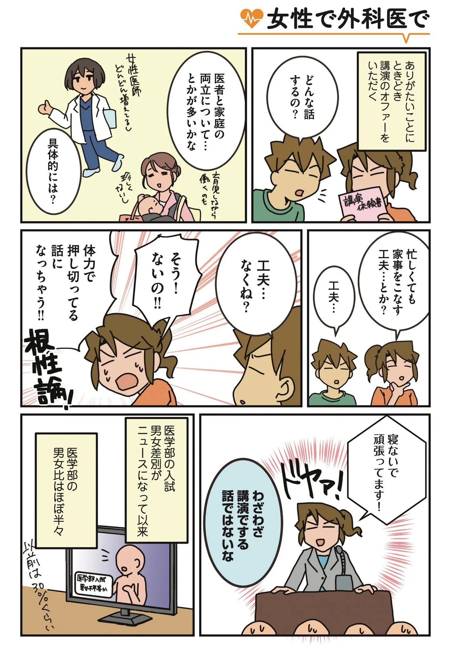 女性医師として講演。忙しくても家事をこなす工夫を語ろうとするが現実は?/腐女医の医者道! 外科医のプライド編 マンガ 公開日:2026/1/25 この連載を最初から読む→ <第4回に続く> 本作品をAmazon(電子)で読む > 本作品をブックライブで読む > 本作品をコミックシーモアで読む > 本作品をBOOK☆WALKERで読む > « 1 2 3 あわせて読みたい 【漫画】『腐女医の医者道! 外科医のプライド編』を第1回から読む 【漫画】『腐女医の医者道! アフターコロナ編』を読む 【漫画】『腐女医の医者メシ!』を読む 【漫画】『コウノトリのお手伝い』を読む 【漫画】『まどか26歳、研修医やってます! 』を読む 最新マンガと話題の書籍を無料で試し読み! 前の回 一覧 人気の連載 次の回 腐女医の医者道! 外科医のプライド編 (コミックエッセイ) 試し読み *電子書籍ストアBOOK☆WALKERへ移動します 腐女医の医者道! (コミックエッセイ) 試し読み *電子書籍ストアBOOK☆WALKERへ移動します