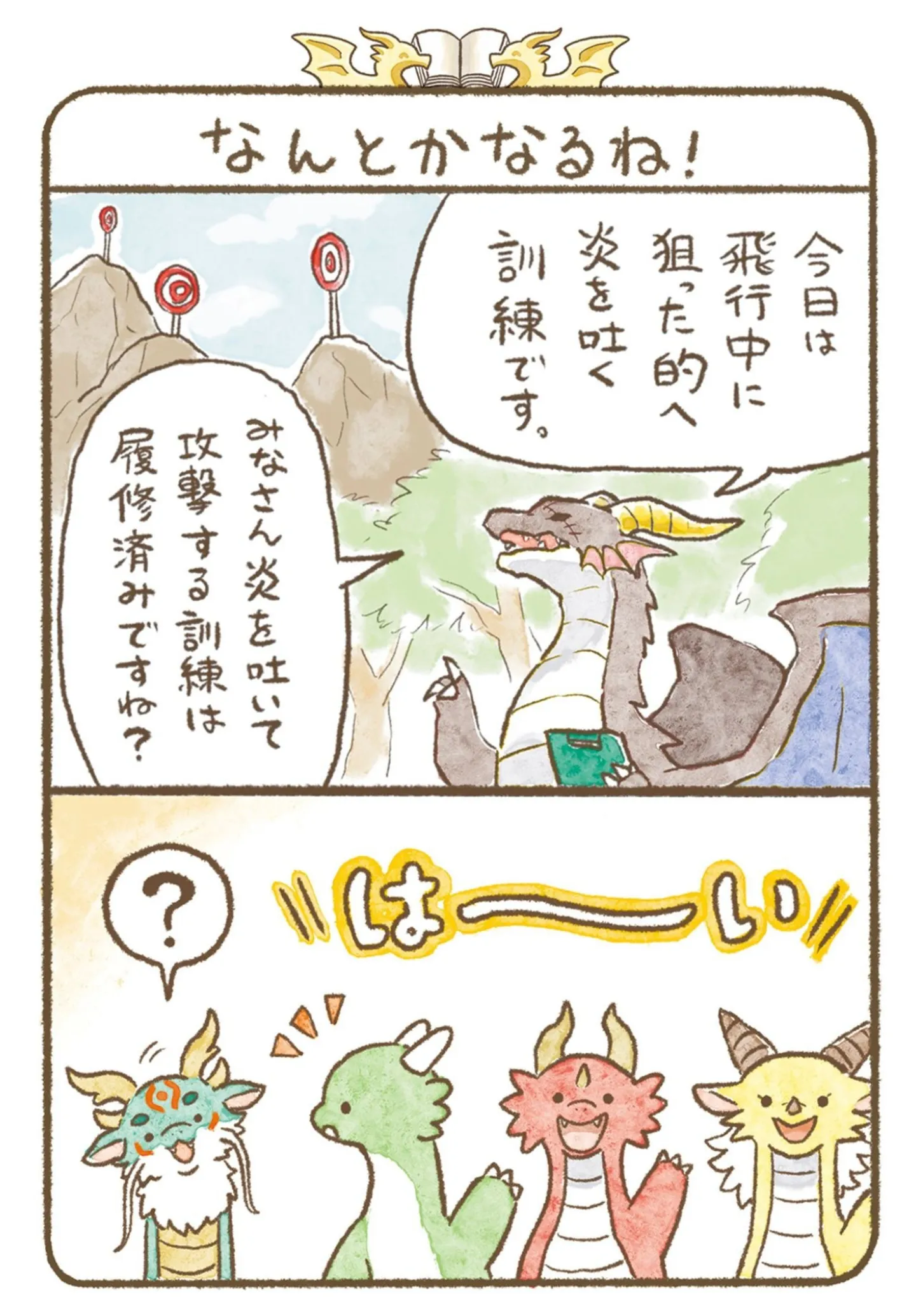 炎を吐けない留学生の竜。的を狙う訓練で、代わりに出したものは?/竜騎士専門学校1④ マンガ 公開日:2026/1/26 この連載を最初から読む→ 『竜騎士専門学校1』(ほたてぃーの/KADOKAWA)第4回【全13回】 ここは、とある西の国の森の奥に新設された竜騎士専門学校。立派な竜騎士となるため、人間と竜がともに学び絆を深めている。座学や実践授業はもちろん、学園祭といったイベントやテストも。東洋からの留学生くんや、恋する乙女ドラゴンなど個性豊かなキャラクターが織りなす青春満載の学園ライフ。人間と竜が仲良く暮らすほのぼのファンタジー『竜騎士専門学校』の再連載に、2巻から新エピソードを追加してお届けいたします。 【30日間無料】Amazonの読み放題をチェック > 本作品をAmazon(電子)で読む > 本作品をRenta!で読む > >> 次のページに続く 1 2 > あわせて読みたい 【漫画】『竜騎士専門学校(1~2巻)』を第1回から読む 【漫画】『ラ・マキユーズ~ヴェルサイユの化粧師~ La maquilleuse』を読む 【漫画】『娘を妊娠させたのは誰ですか?』を読む 最新マンガと話題の書籍を無料で試し読み! 前の回 一覧 人気の連載 次の回 竜騎士専門学校 (コミックエッセイ) 試し読み *電子書籍ストアBOOK☆WALKERへ移動します 竜騎士専門学校2 (コミックエッセイ) 試し読み *電子書籍ストアBOOK☆WALKERへ移動します