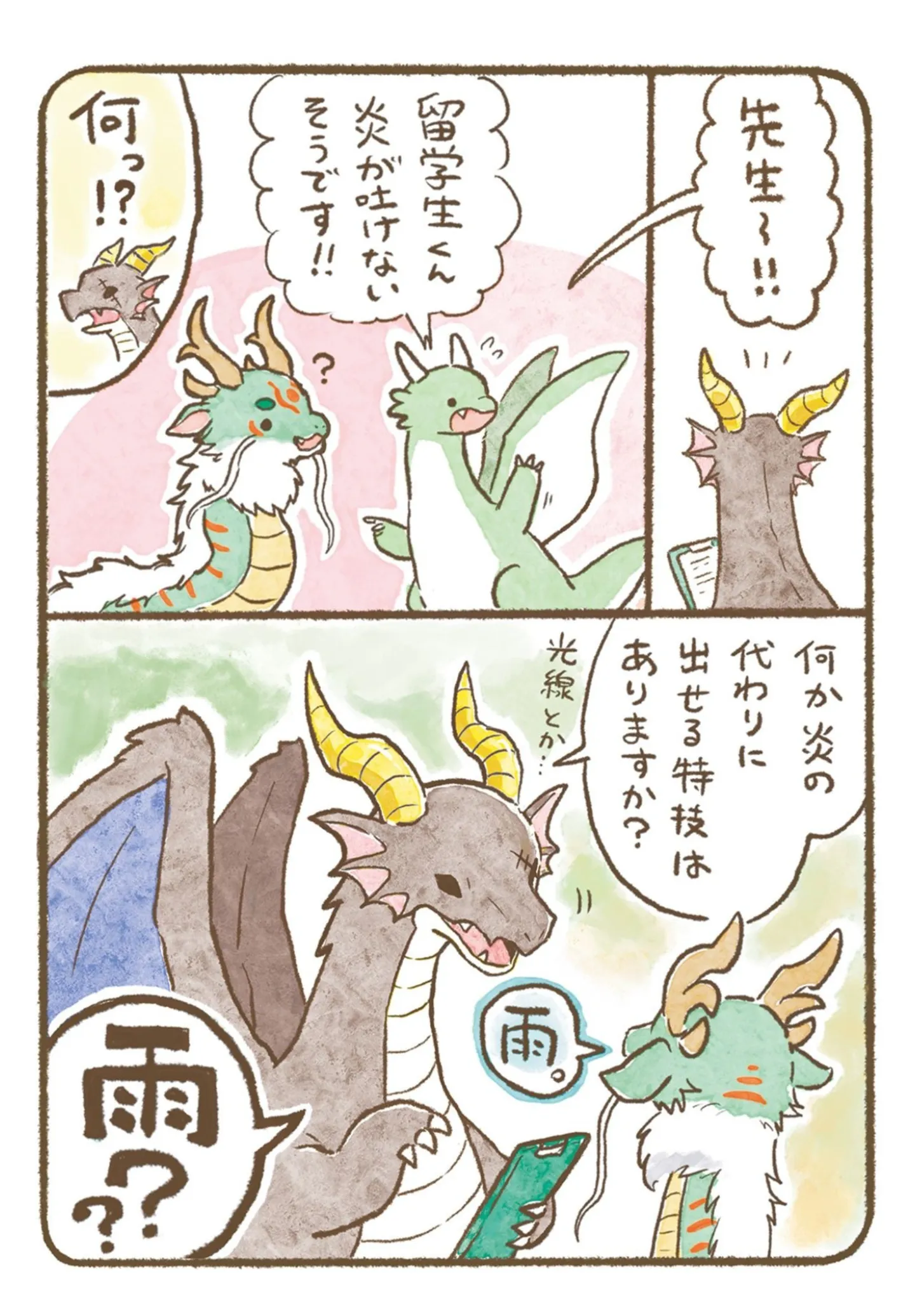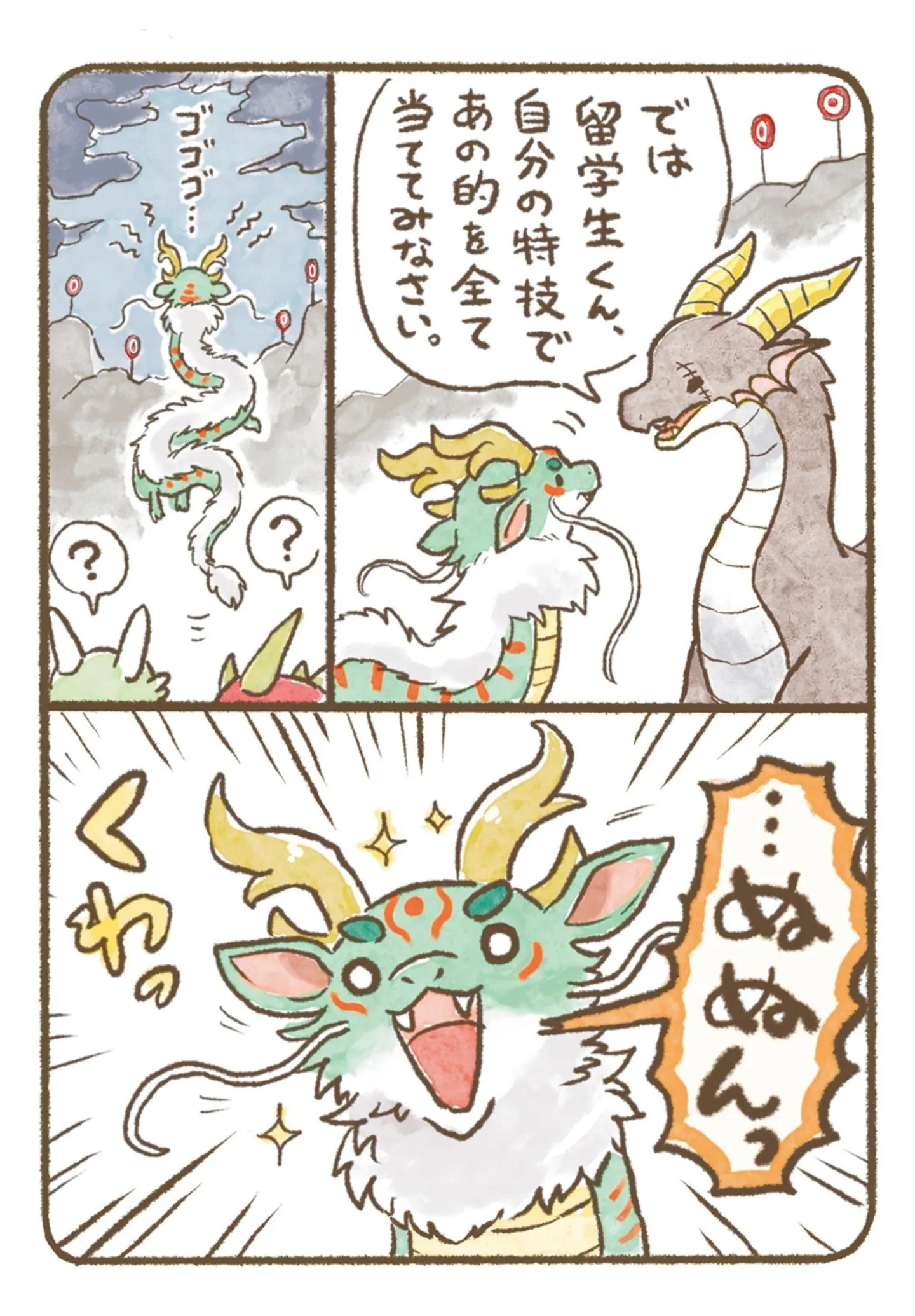 炎を吐けない留学生の竜。的を狙う訓練で、代わりに出したものは?/竜騎士専門学校1④ マンガ 公開日:2026/1/26 この連載を最初から読む→ <第5回に続く> 本作品をAmazon(電子)で読む > 本作品をRenta!で読む > 本作品をebookjapanで読む > 本作品をBOOK☆WALKERで読む > « 1 2 あわせて読みたい 【漫画】『竜騎士専門学校(1~2巻)』を第1回から読む 【漫画】『ラ・マキユーズ~ヴェルサイユの化粧師~ La maquilleuse』を読む 【漫画】『娘を妊娠させたのは誰ですか?』を読む 最新マンガと話題の書籍を無料で試し読み! 前の回 一覧 人気の連載 次の回 竜騎士専門学校 (コミックエッセイ) 試し読み *電子書籍ストアBOOK☆WALKERへ移動します 竜騎士専門学校2 (コミックエッセイ) 試し読み *電子書籍ストアBOOK☆WALKERへ移動します