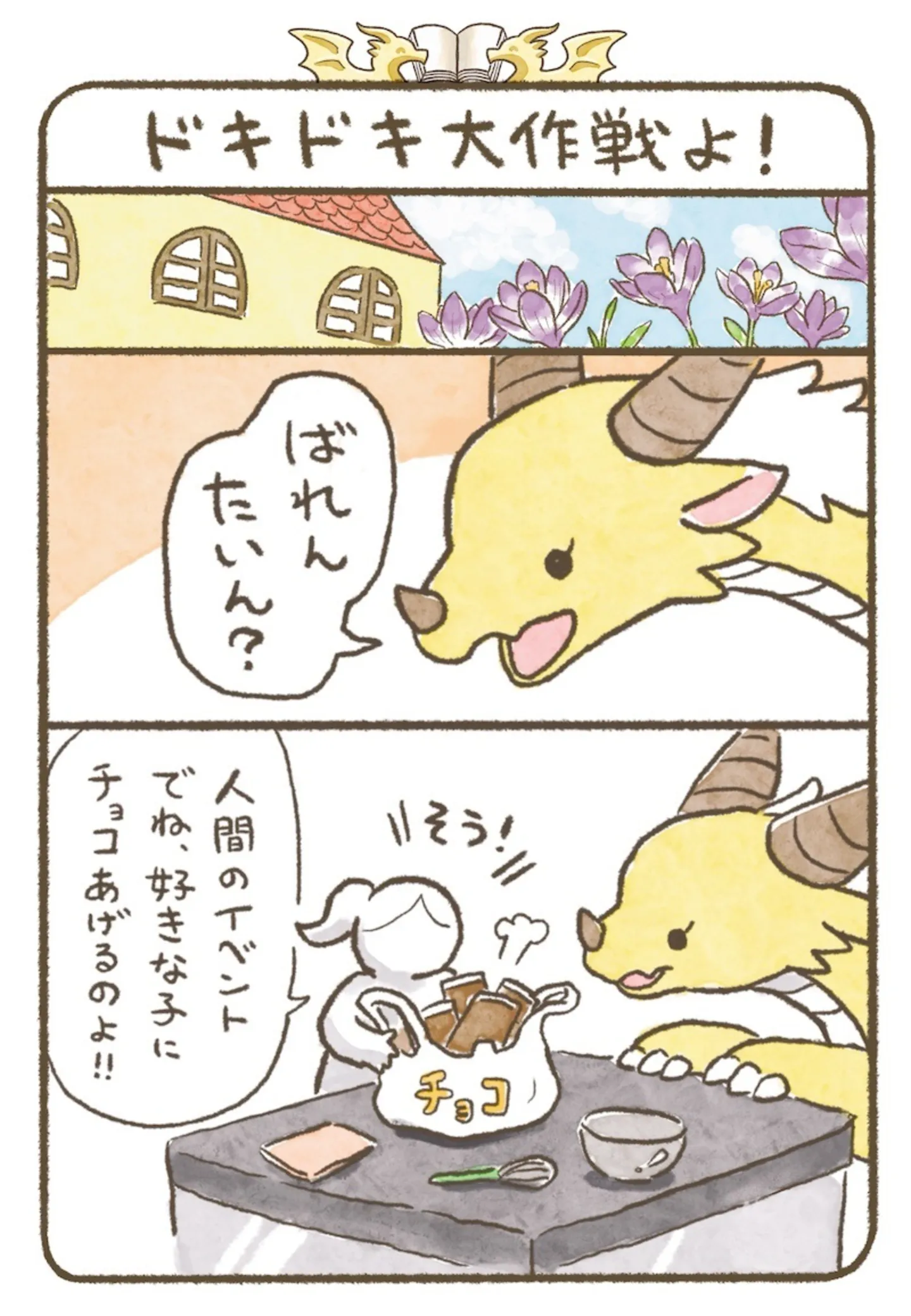 人間のバレンタインに竜も参加。気持ちを込めた炎でチョコを溶かしたら…/竜騎士専門学校2⑬ マンガ 公開日:2026/2/4 この連載を最初から読む→ 『竜騎士専門学校2』(ほたてぃーの/KADOKAWA)第13回【全13回】 ここは、とある西の国の森の奥に新設された竜騎士専門学校。立派な竜騎士となるため、人間と竜がともに学び絆を深めている。座学や実践授業はもちろん、学園祭といったイベントやテストも。東洋からの留学生くんや、恋する乙女ドラゴンなど個性豊かなキャラクターが織りなす青春満載の学園ライフ。人間と竜が仲良く暮らすほのぼのファンタジー『竜騎士専門学校』の再連載に、2巻から新エピソードを追加してお届けいたします。 【30日間無料】Amazonの読み放題をチェック > 本作品をAmazon(電子)で読む > 本作品をRenta!で読む > >> 次のページに続く 1 2 3 > あわせて読みたい 【漫画】『竜騎士専門学校(1~2巻)』を第1回から読む 【漫画】『ふつつかな悪女ではございますが』を読む 【漫画】『サレた私は夫の墓へ』を読む 最新マンガと話題の書籍を無料で試し読み! 前の回 一覧 人気の連載 次の回 竜騎士専門学校 (コミックエッセイ) 試し読み *電子書籍ストアBOOK☆WALKERへ移動します 竜騎士専門学校2 (コミックエッセイ) 試し読み *電子書籍ストアBOOK☆WALKERへ移動します