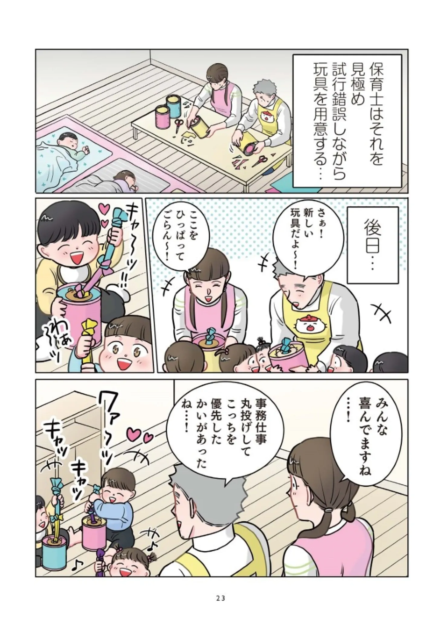 棚や引き出しのものを片っ端から出していく子ども。興味にあわせて新しいおもちゃを手作りすると…? 笑って泣ける、でこ先生と園児たちの“ドタバタ愛おしい日常”【書評】 117枚目/全211枚 マンガ 公開日:2026/2/4