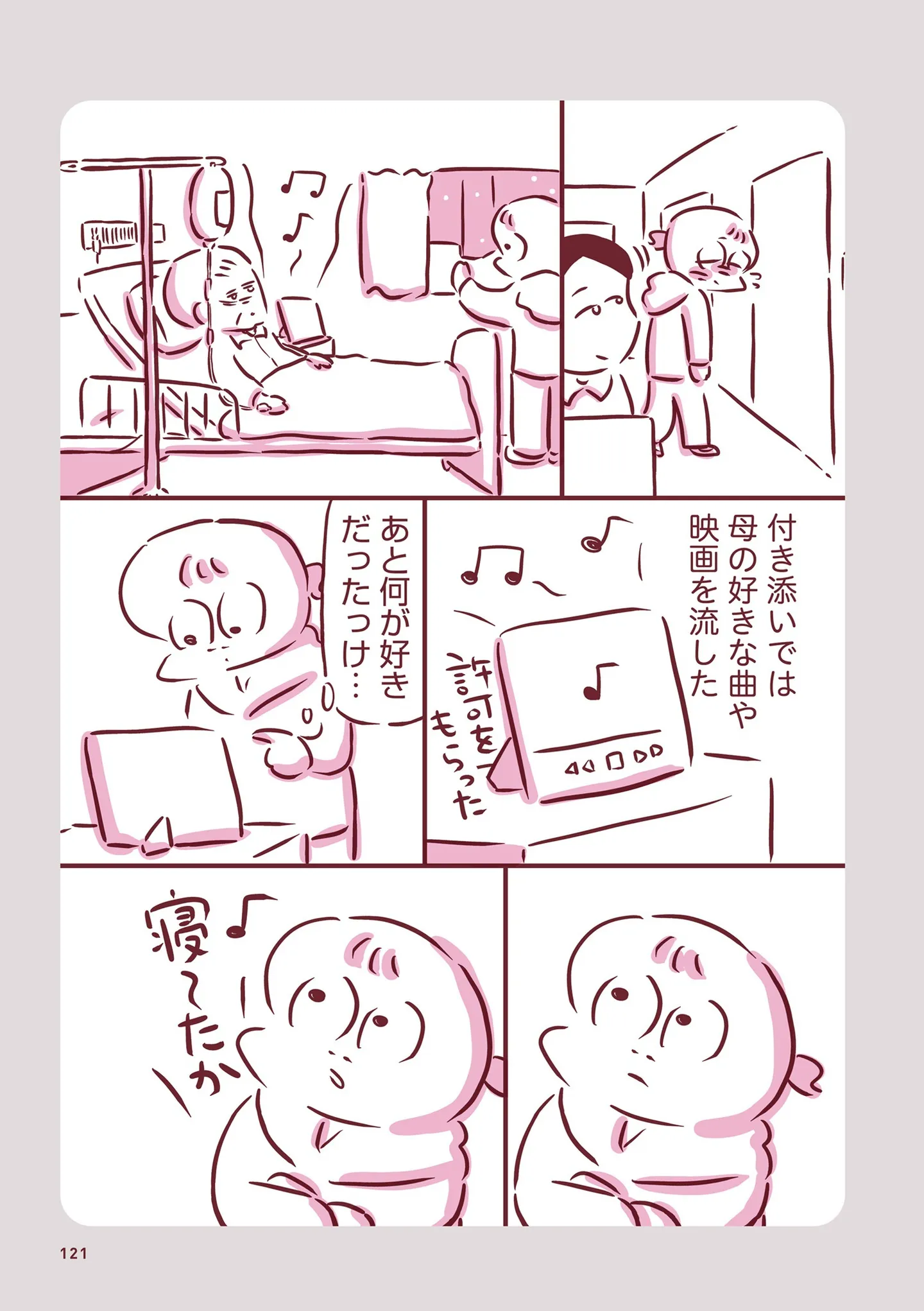 最期が近い母に夜間の付き添い。幼いころ歌ってくれた子守唄を、今度は娘が歌う/今日もまだお母さんに会いたい⑫ マンガ 公開日:2026/2/10 この連載を最初から読む→ 本作品をAmazon(電子)で読む > 本作品をRenta!で読む > >> 次のページに続く « 1 2 3 > あわせて読みたい 【漫画】『今日もまだお母さんに会いたい』を第1回から読む 【漫画】『母の勘を信じて 次男が入院するまでの記録』を読む 【漫画】『家族、辞めてもいいですか?』を読む 最新マンガと話題の書籍を無料で試し読み! 前の回 一覧 人気の連載 次の回 今日もまだお母さんに会いたい【電子特典付き】 試し読み *電子書籍ストアBOOK☆WALKERへ移動します